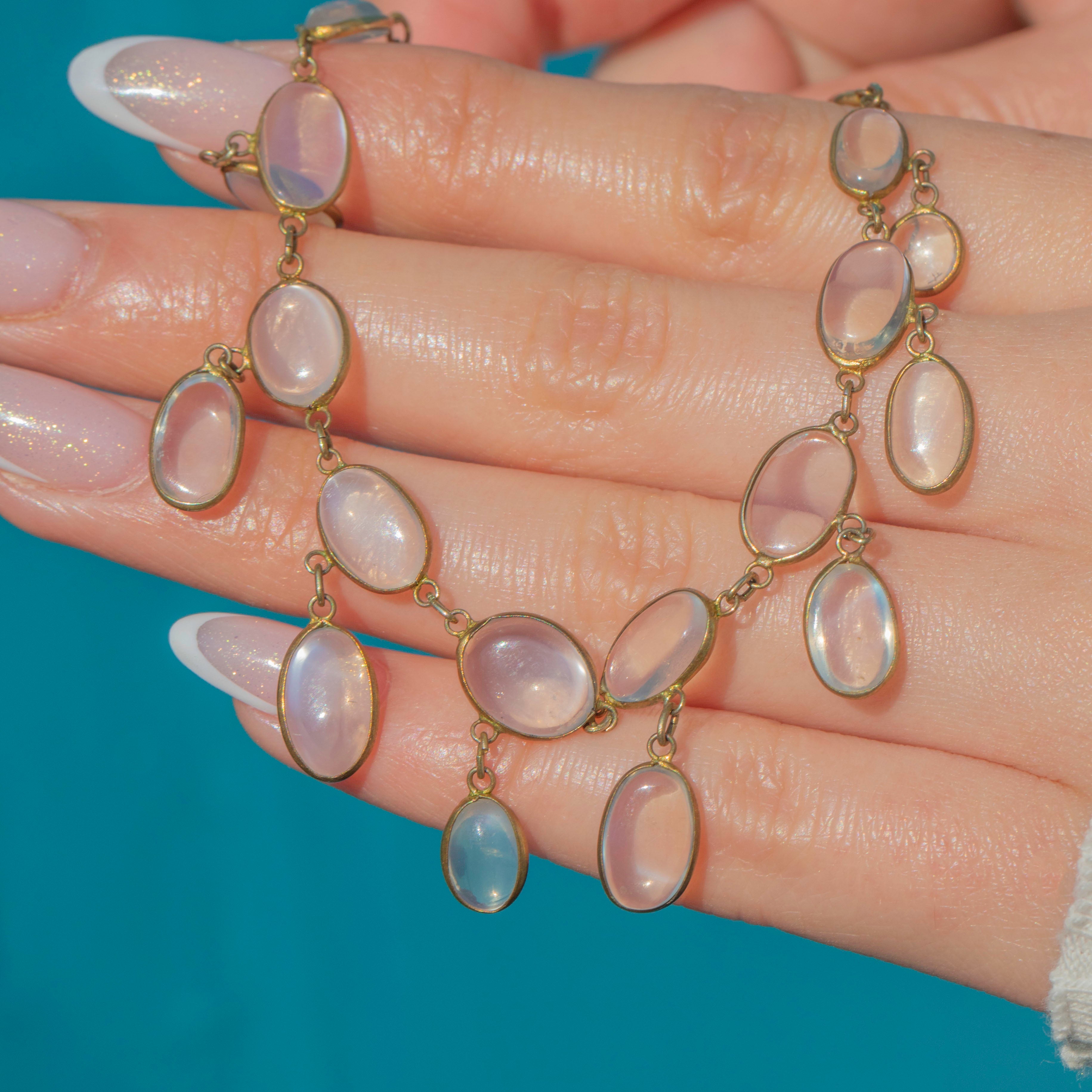 This antique 9ct Gold Moonstone fringe necklace is full of mystical delight!