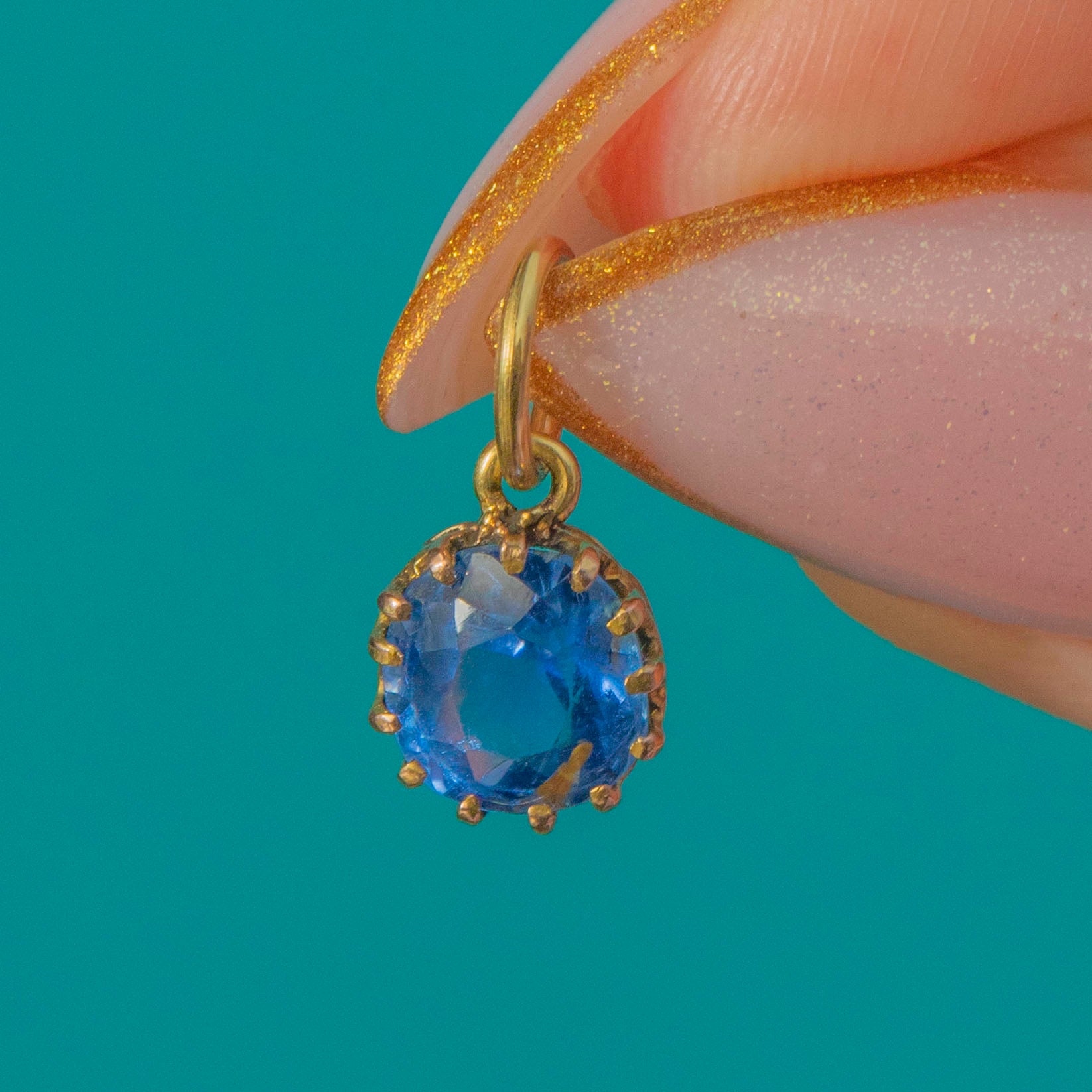 EXCELLENT: The Sapphire is in excellent condition with a bright Cornflower blue colour and no noticeable chips, abrasions or facet wear. The claw settings are secure and well-formed, holding the stone safely in place. The Gold surfaces show only minimal light wear consistent with age, suggesting this Victorian charm has been very well cared for.
