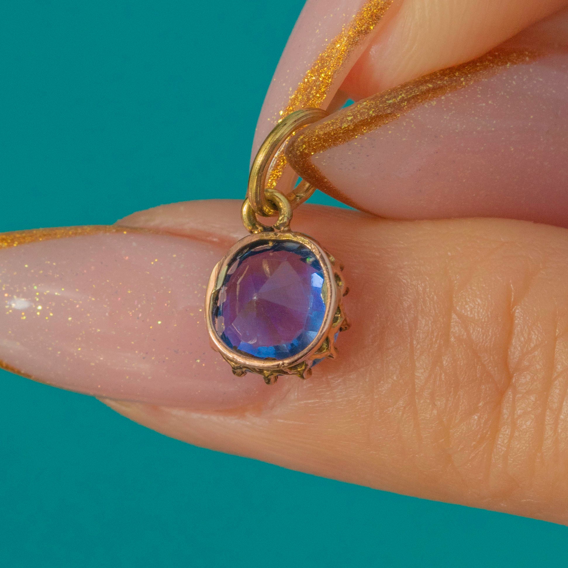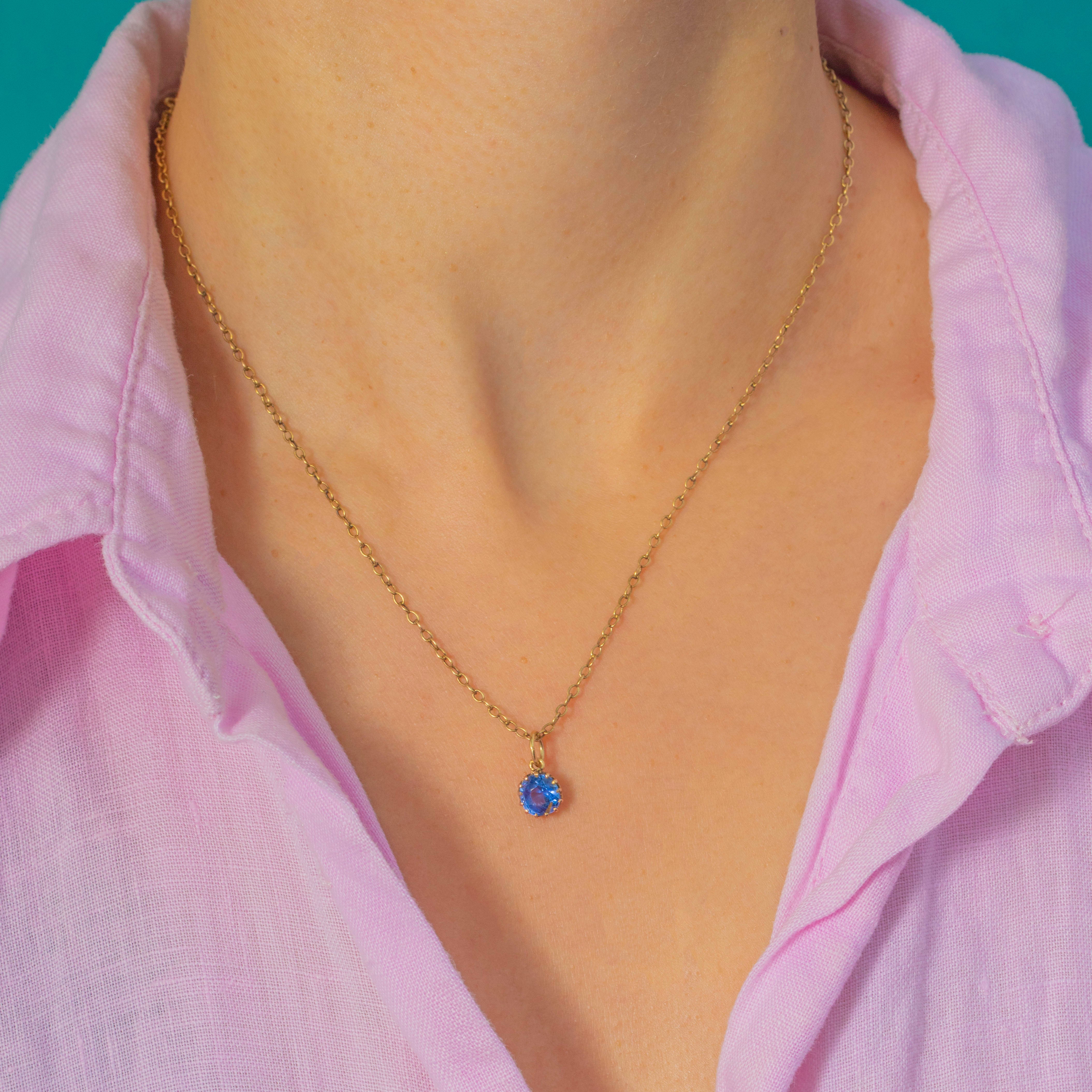 Crafted in 9ct Gold, the warm glow contrasts perfectly with the vibrant Cornflower Blue Sapphire. It’s a wonderfully versatile little charm – ideal to wear alone on a fine Gold chain, or layered with other antique pendants for a curated, personal look.