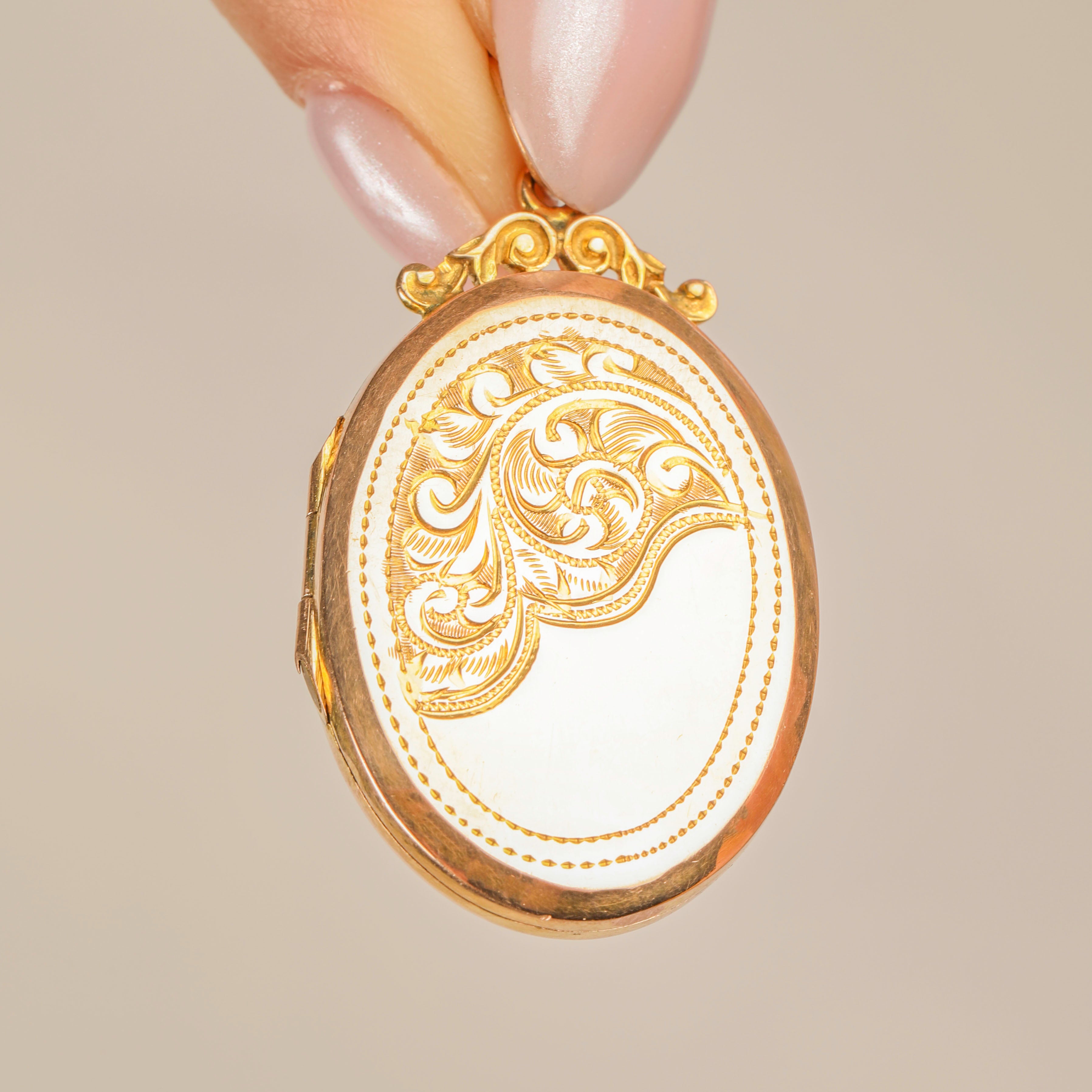 Antique 9ct Gold Oval Engraved Locket