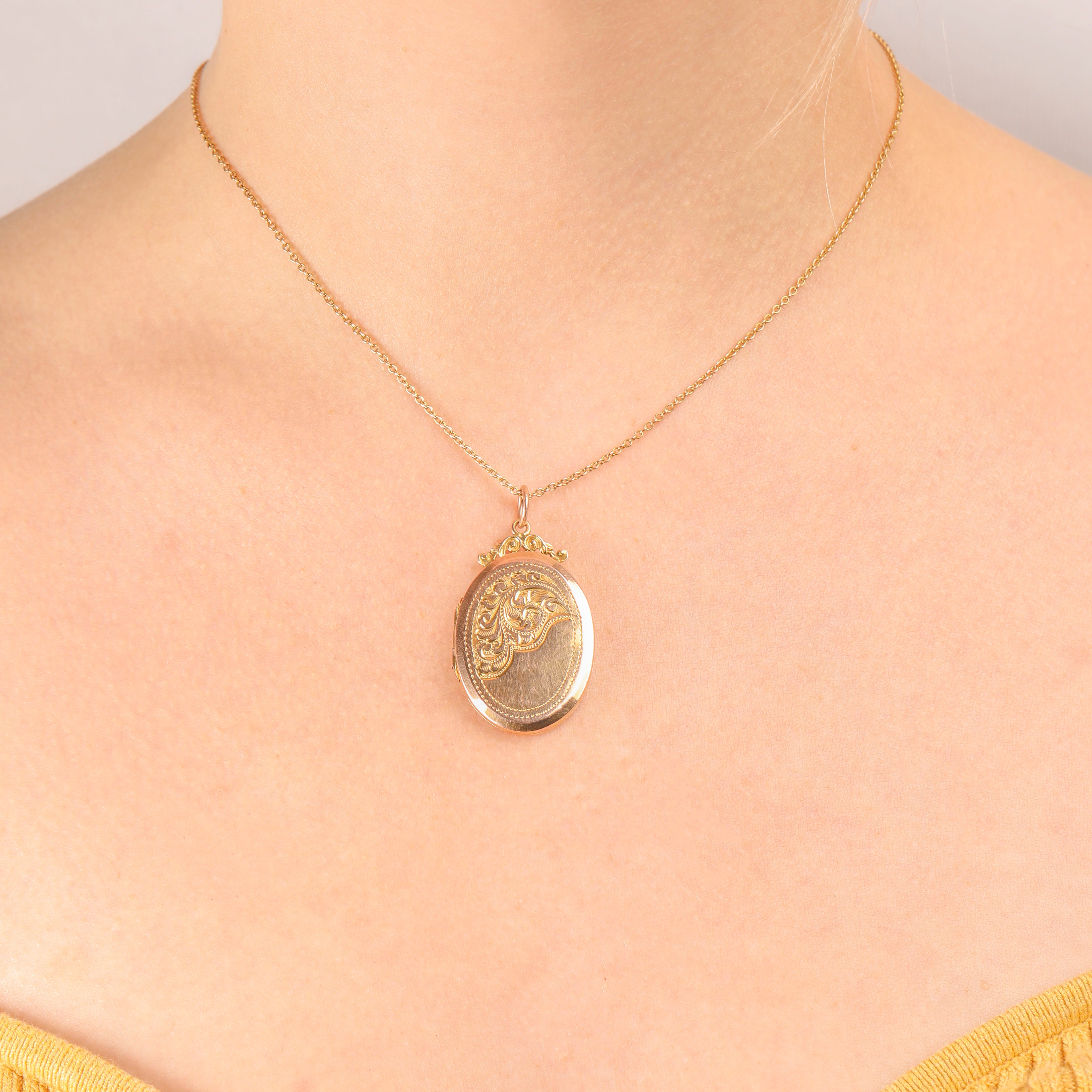 Whether a treat to yourself or a sentimental gift for a loved one, this antique 9ct Gold oval engraved locket will be forever cherished! This Victorian locket offers the opportunity to carry a snippet of your past close to your heart with two frames to secure photographs inside.