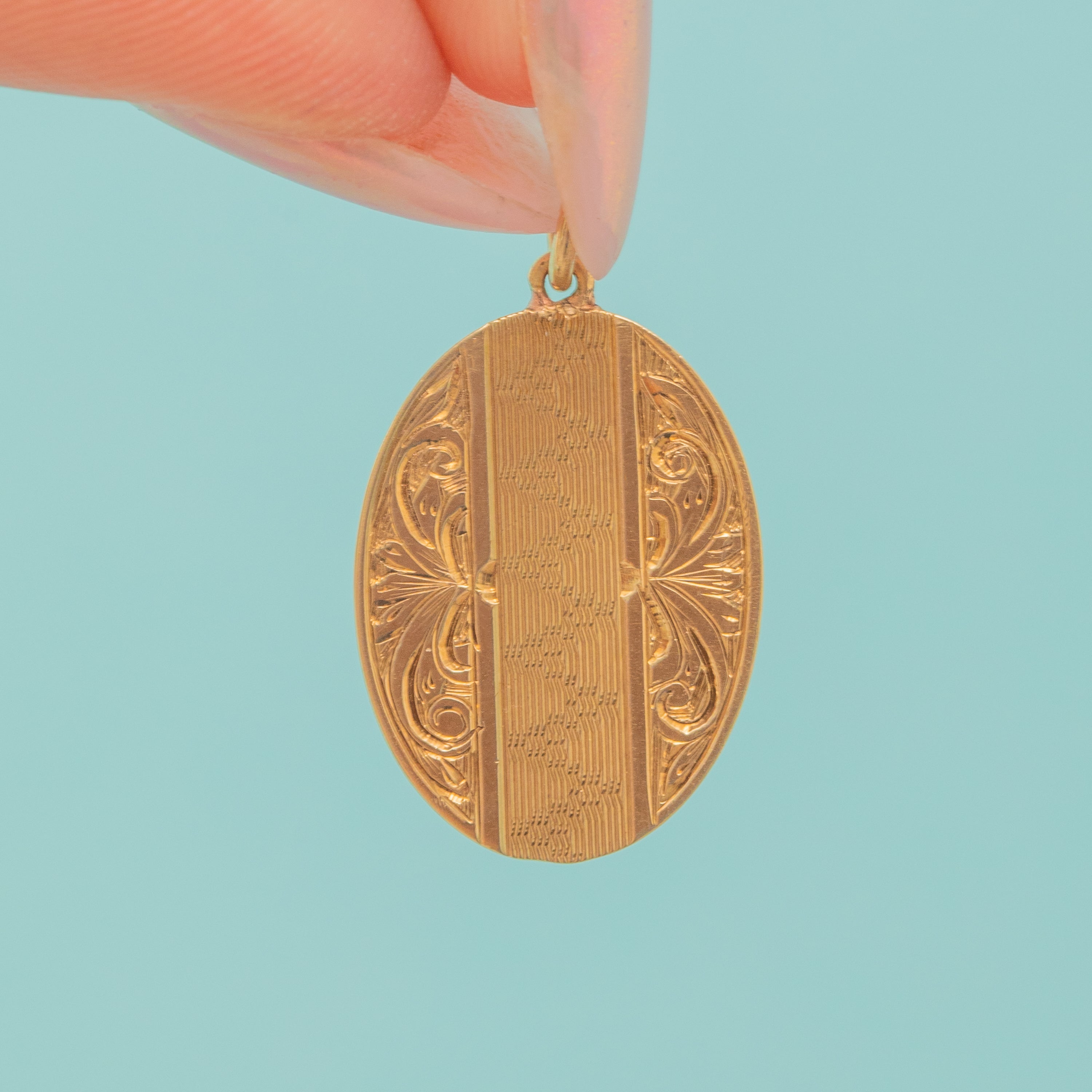 Antique 9ct Gold Oval Engraved Pendant
