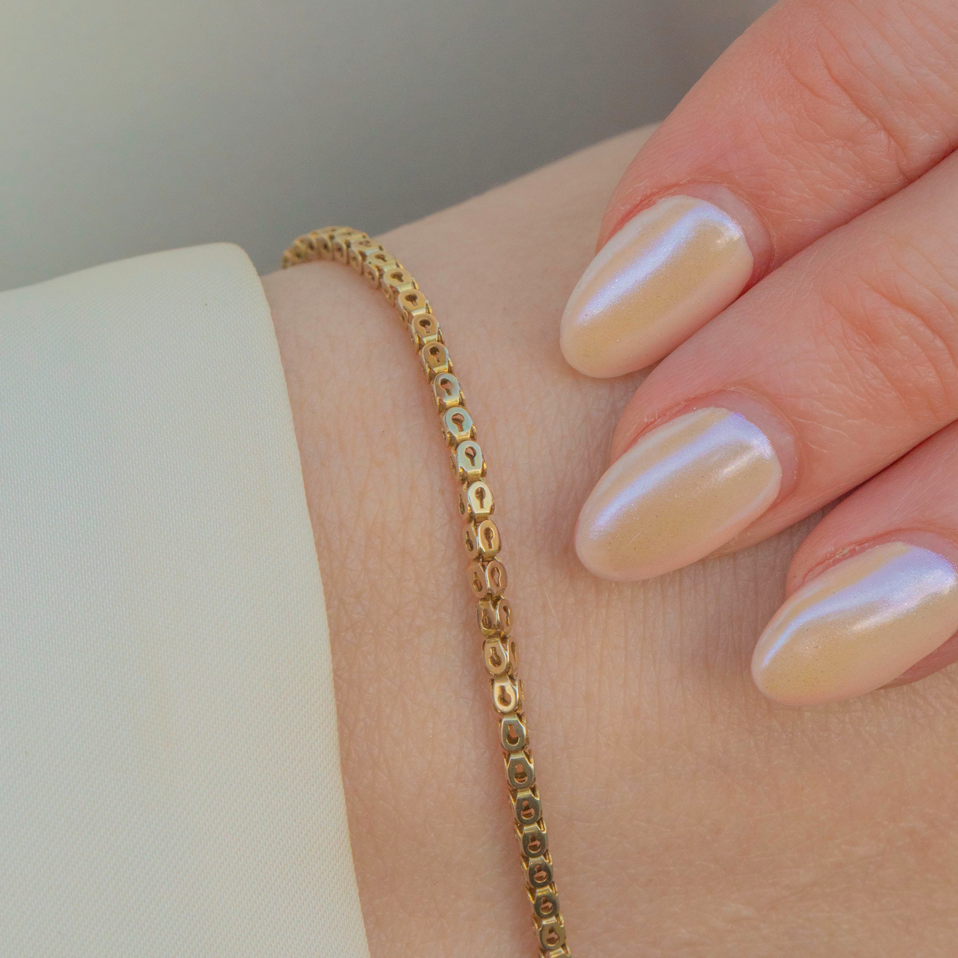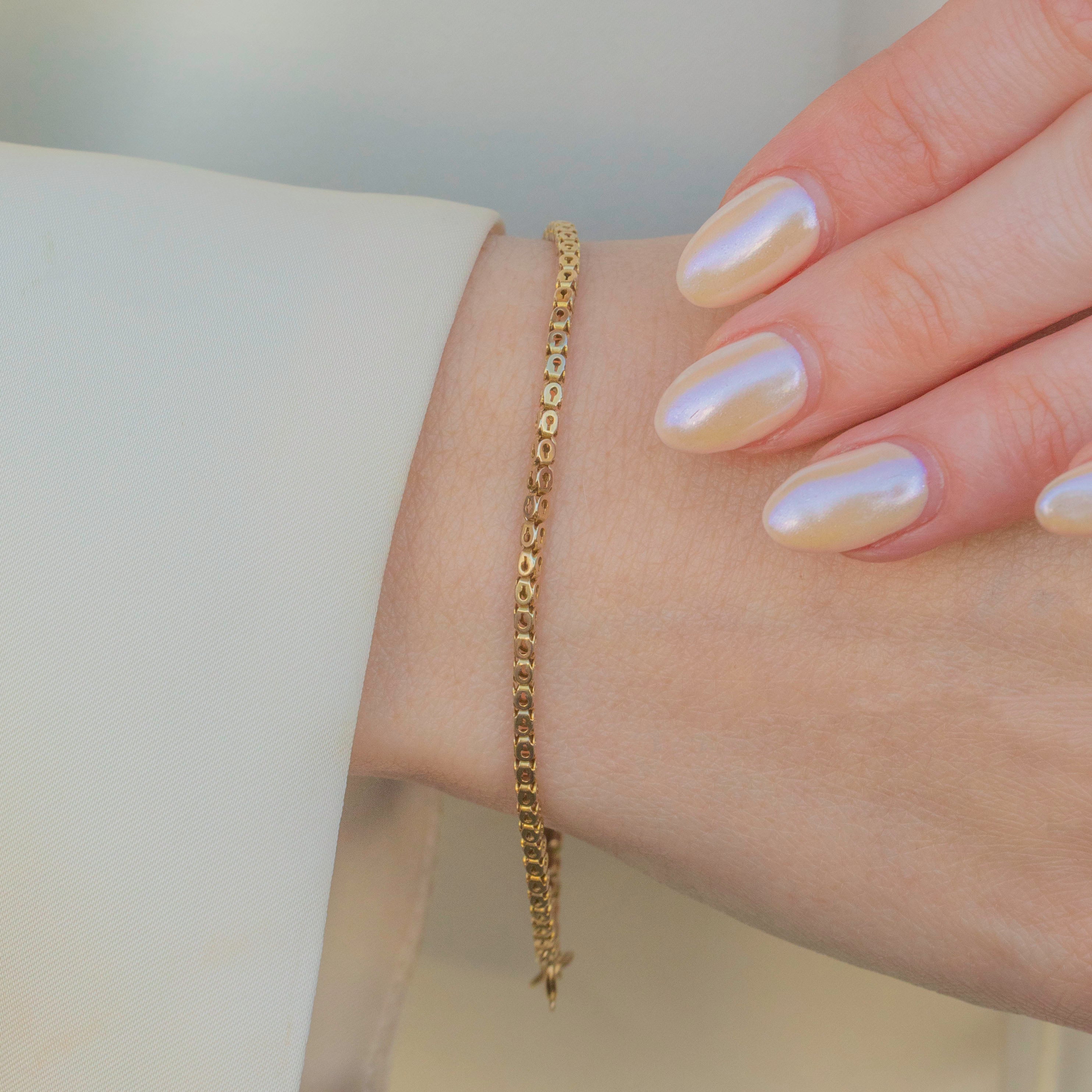 This antique Gold bracelet will be the perfect elegant splash of Gold to your outfit and is perfect for everyday wear. A Gold chain bracelet will never lose its value, making it. a fine investment piece, and can be worn and adored for a lifetime!