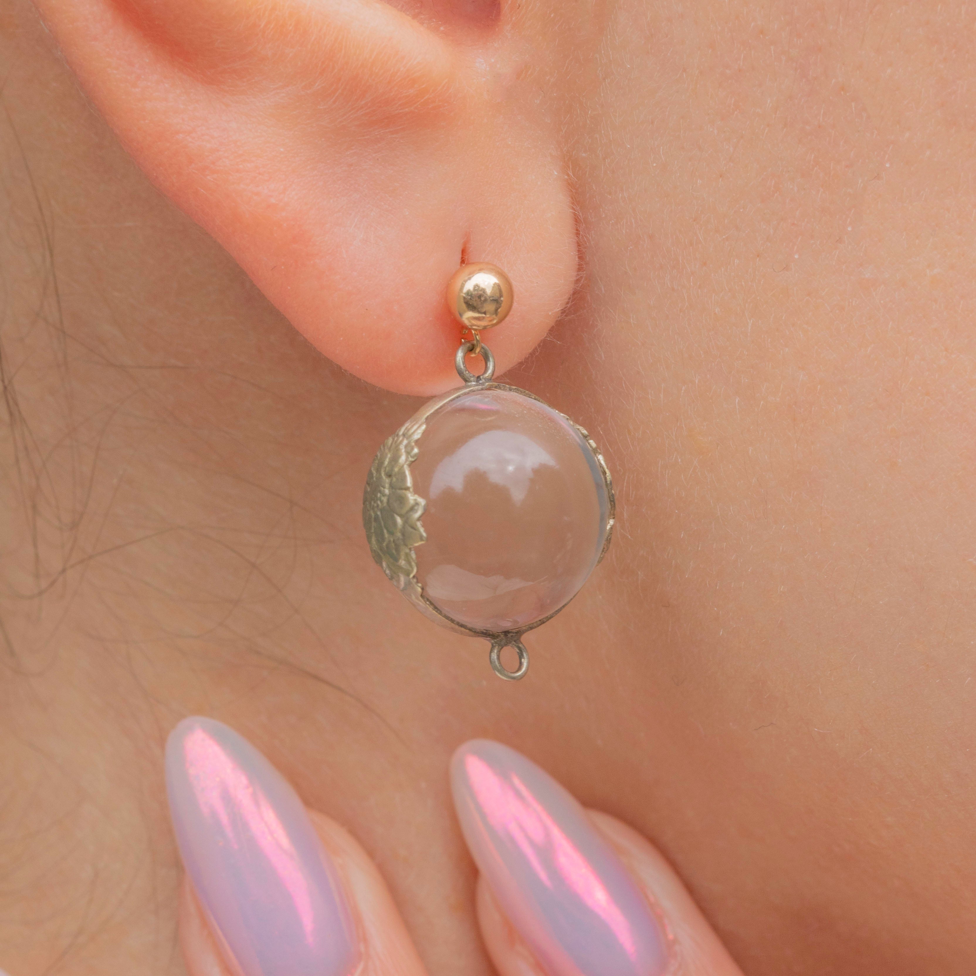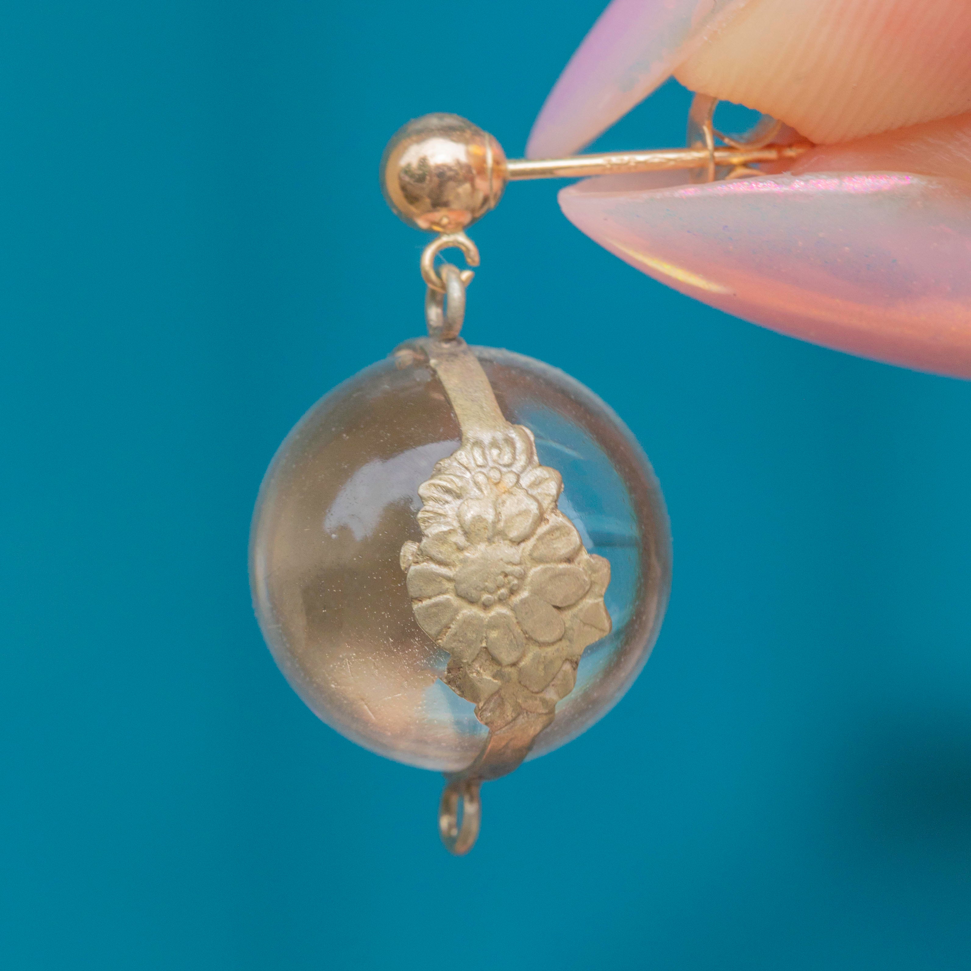 Antique 9ct Gold Pools of Light Rock Crystal Earrings, Floral Settings