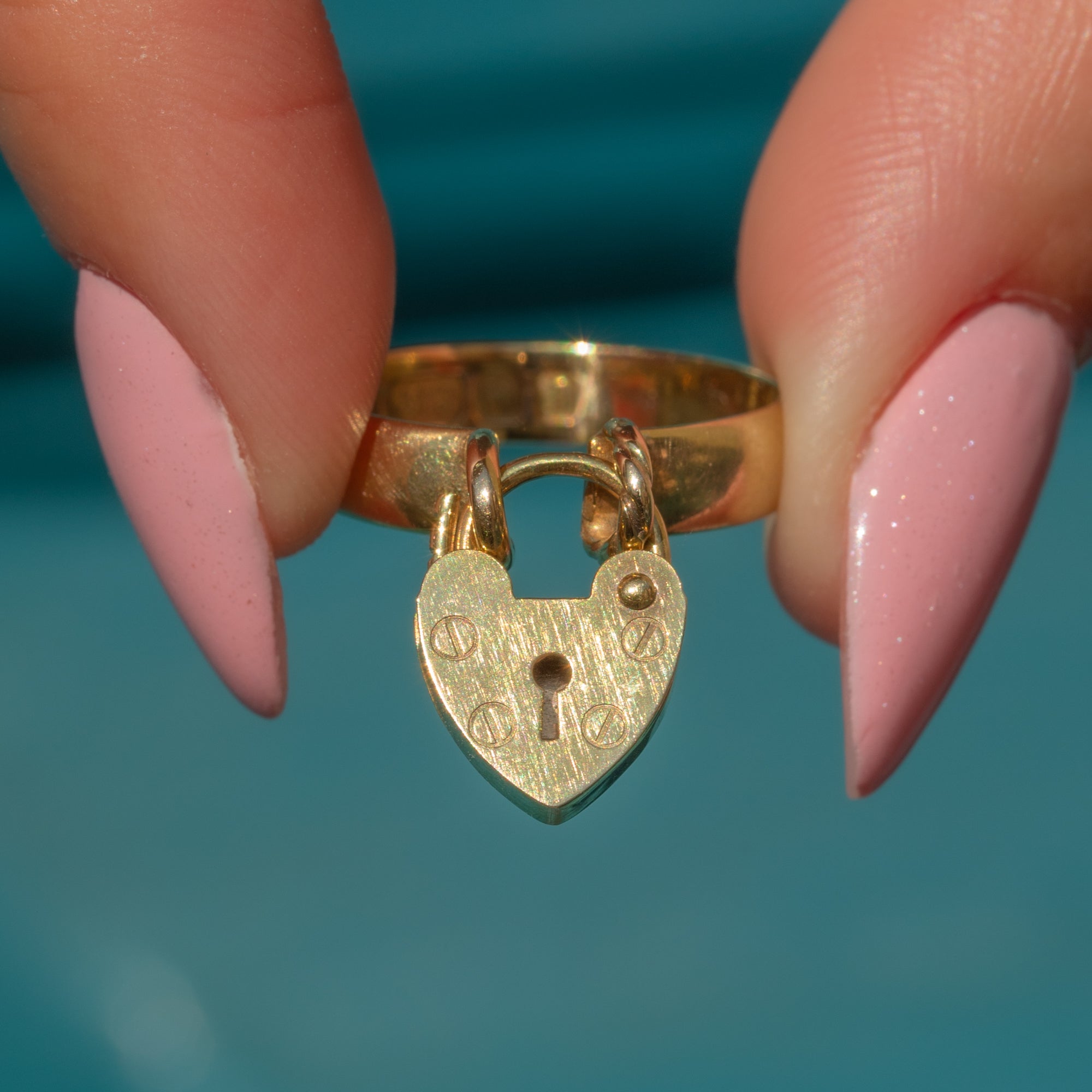 Antique 9ct Gold Ring with Heart Padlock, c.1916