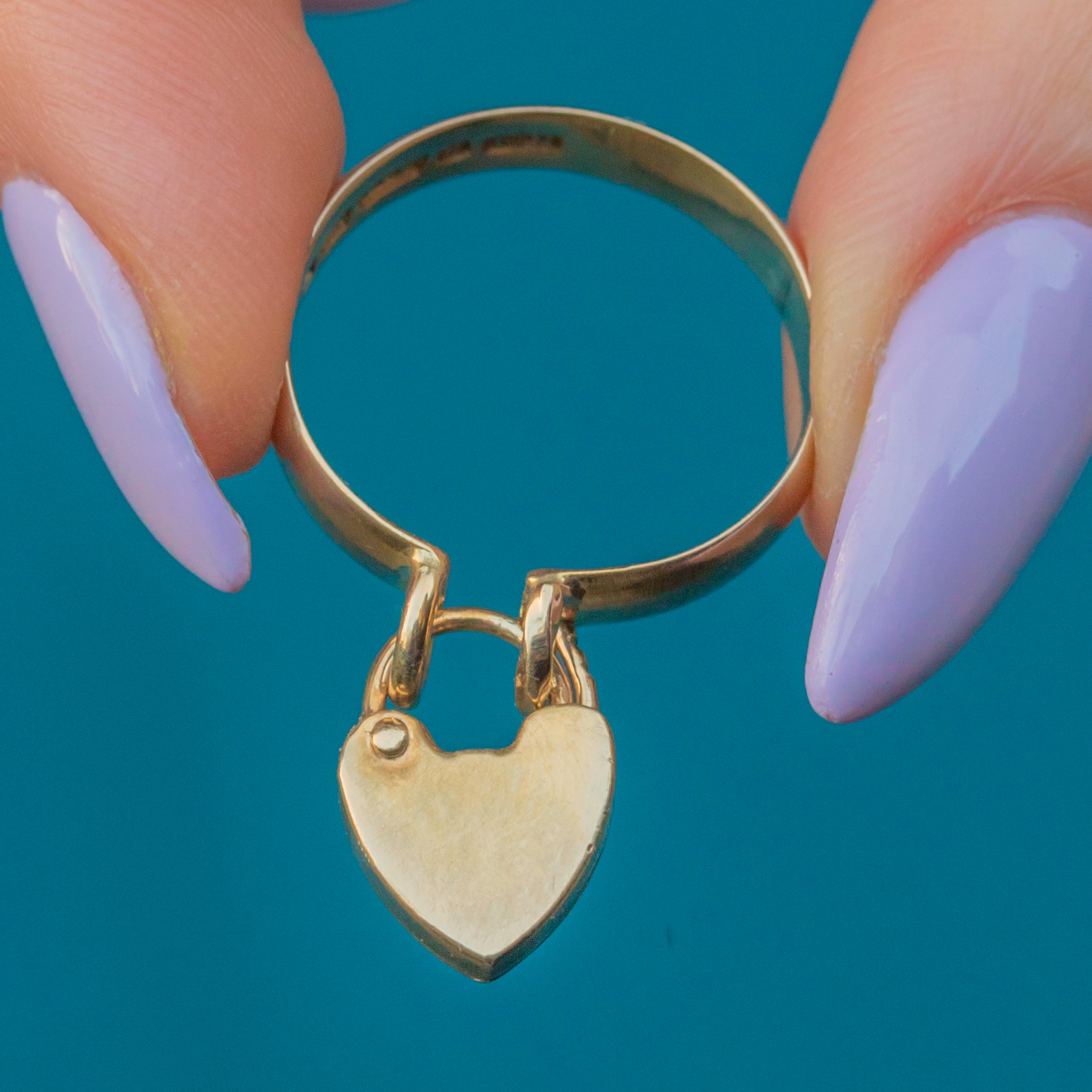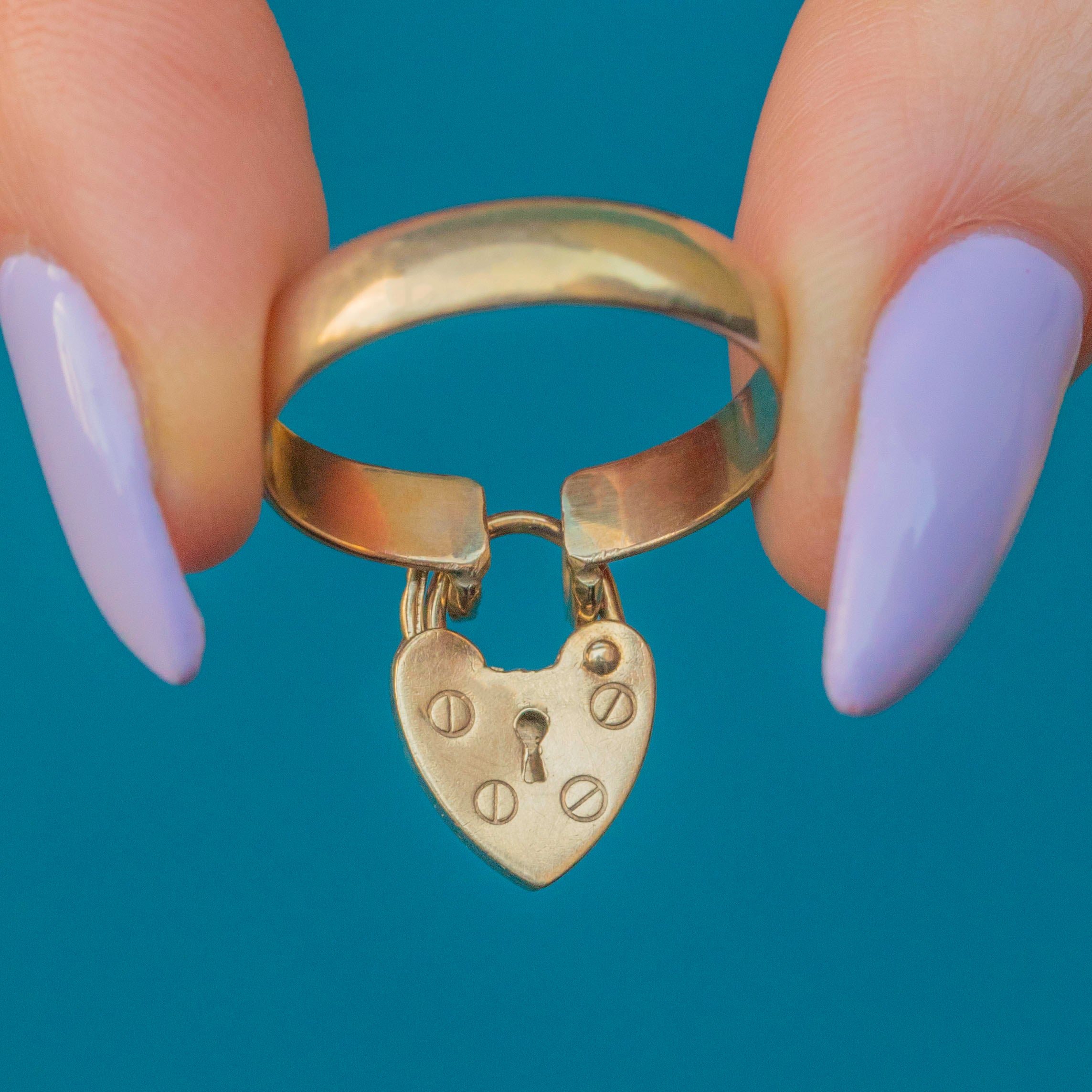 This antique 9ct Gold ring is oh-so-romantic! Featuring a heart padlock drop in the centre, this Victorian ring will make an adorable and sentimental piece to add to your collection.