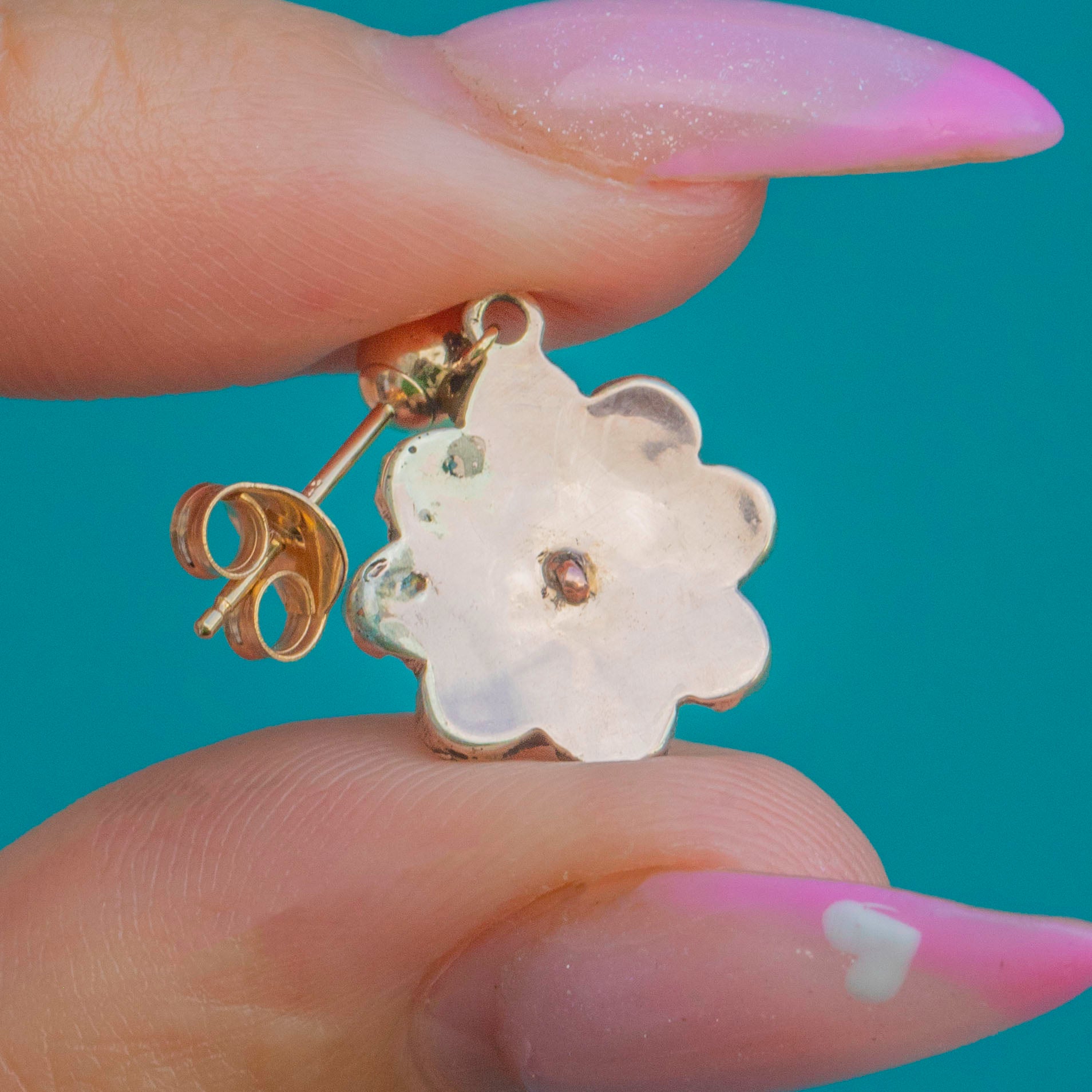 Antique Rose-Cut Garnet Flower Earrings, 9ct Gold Studs