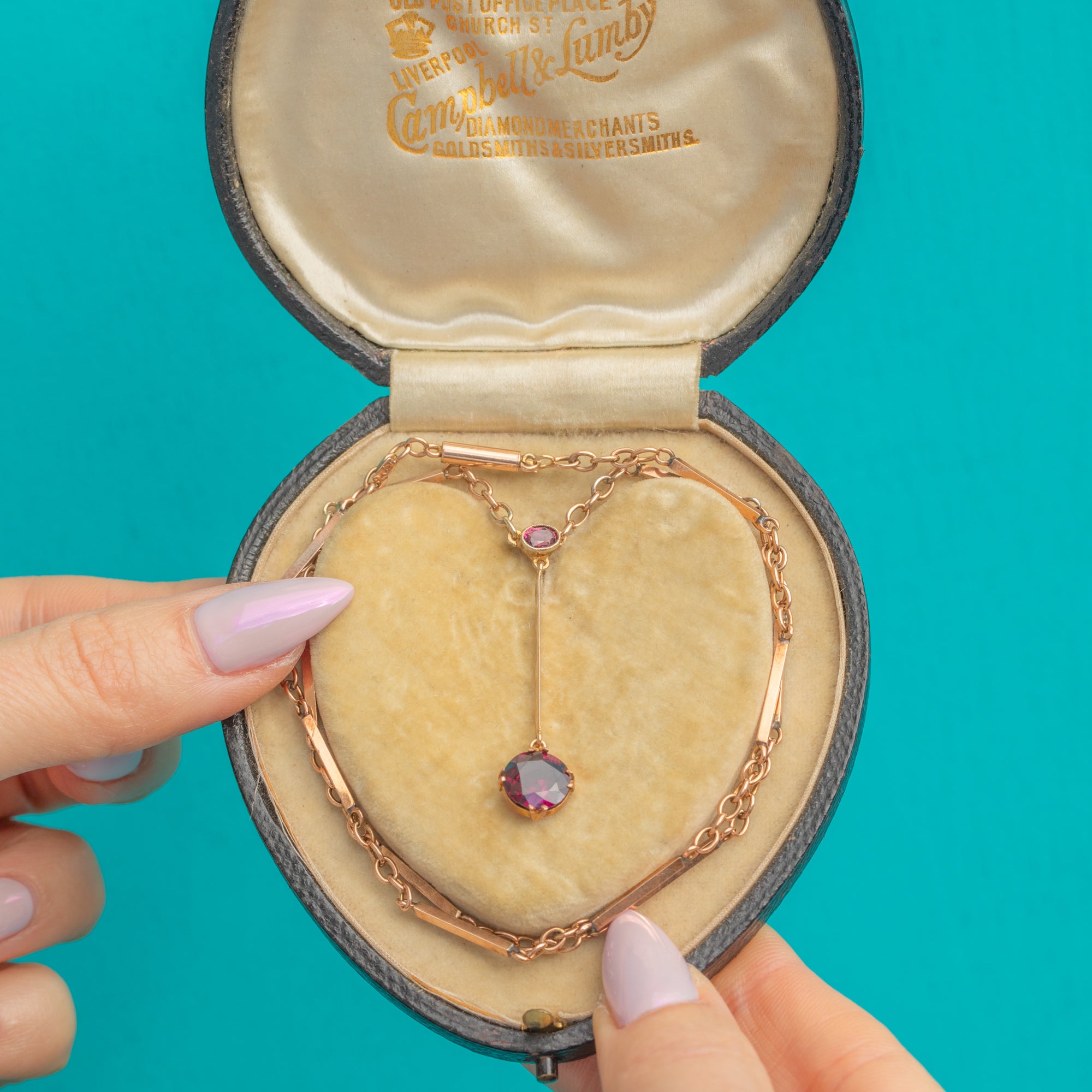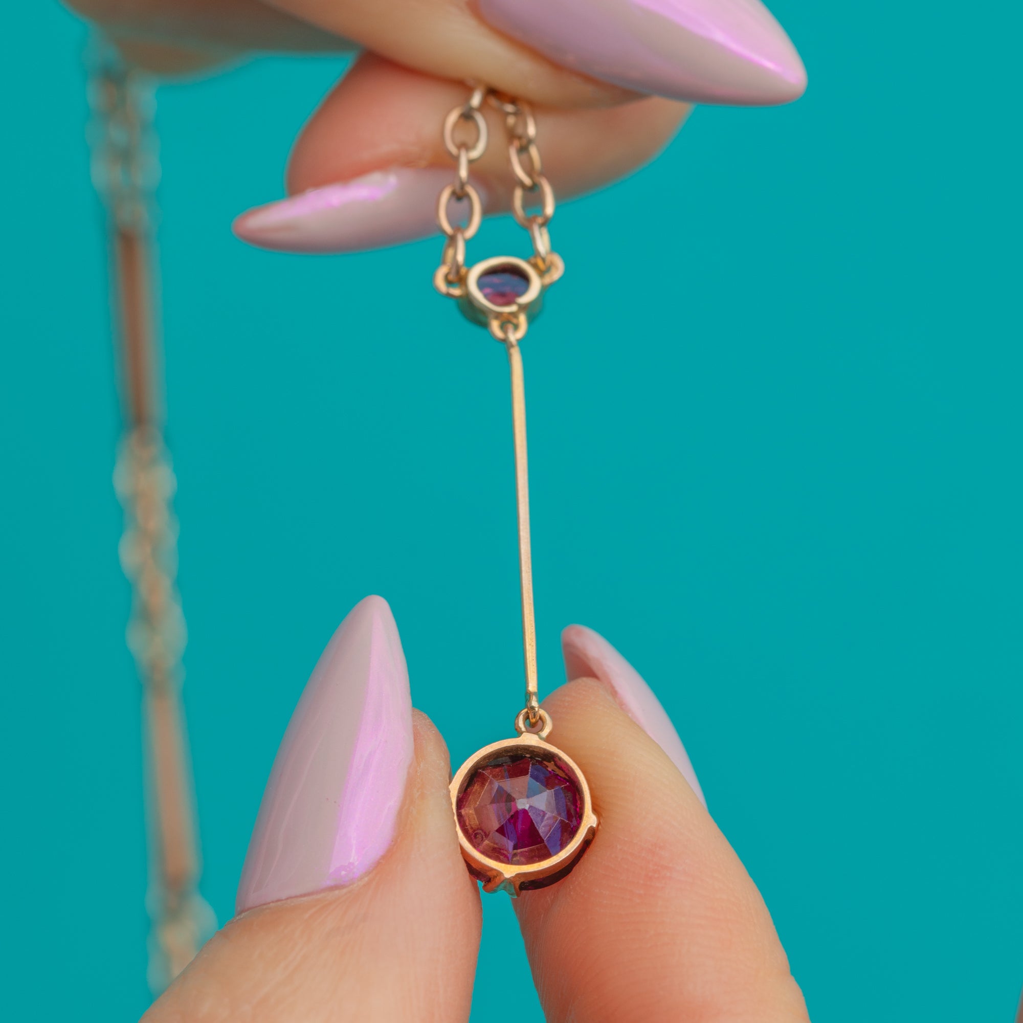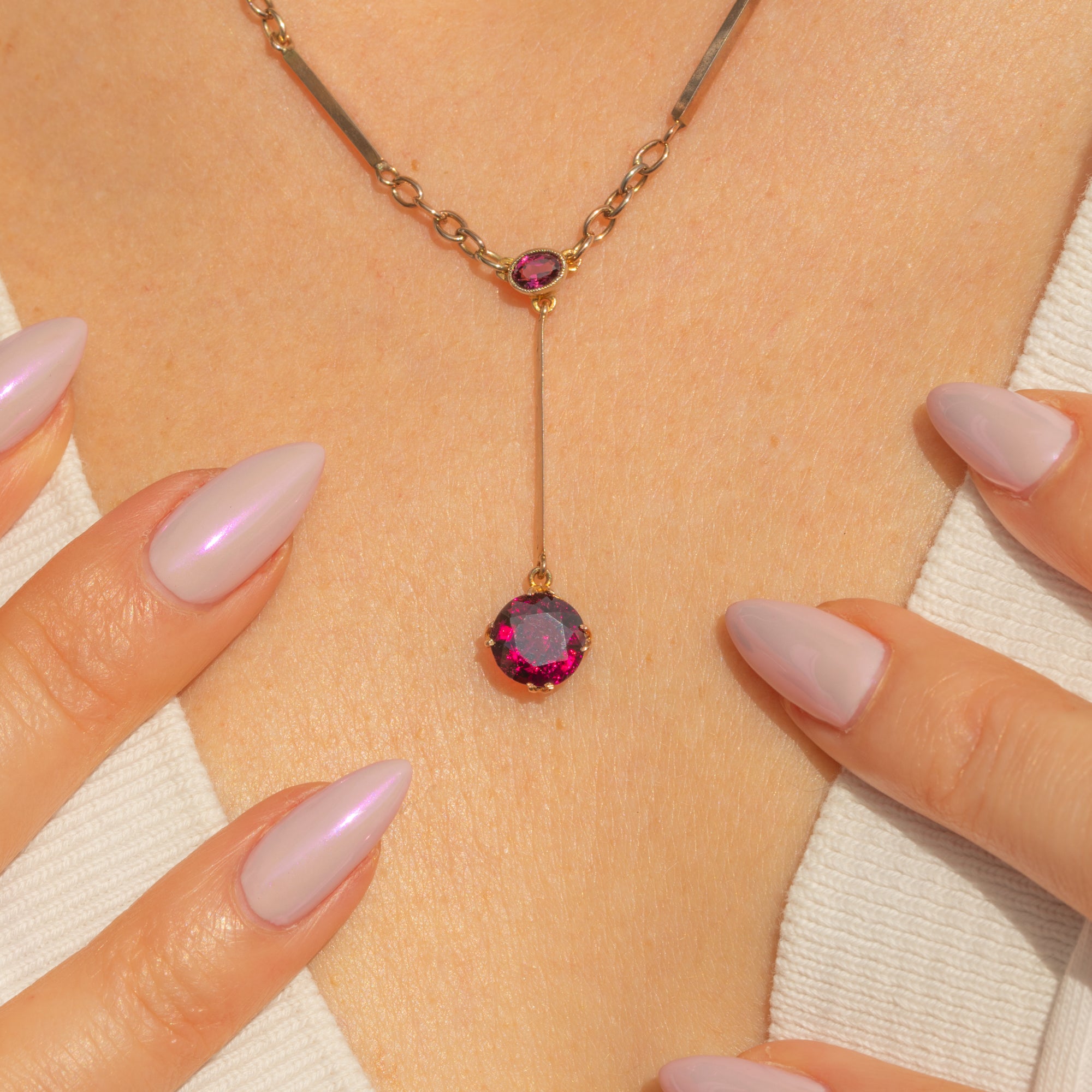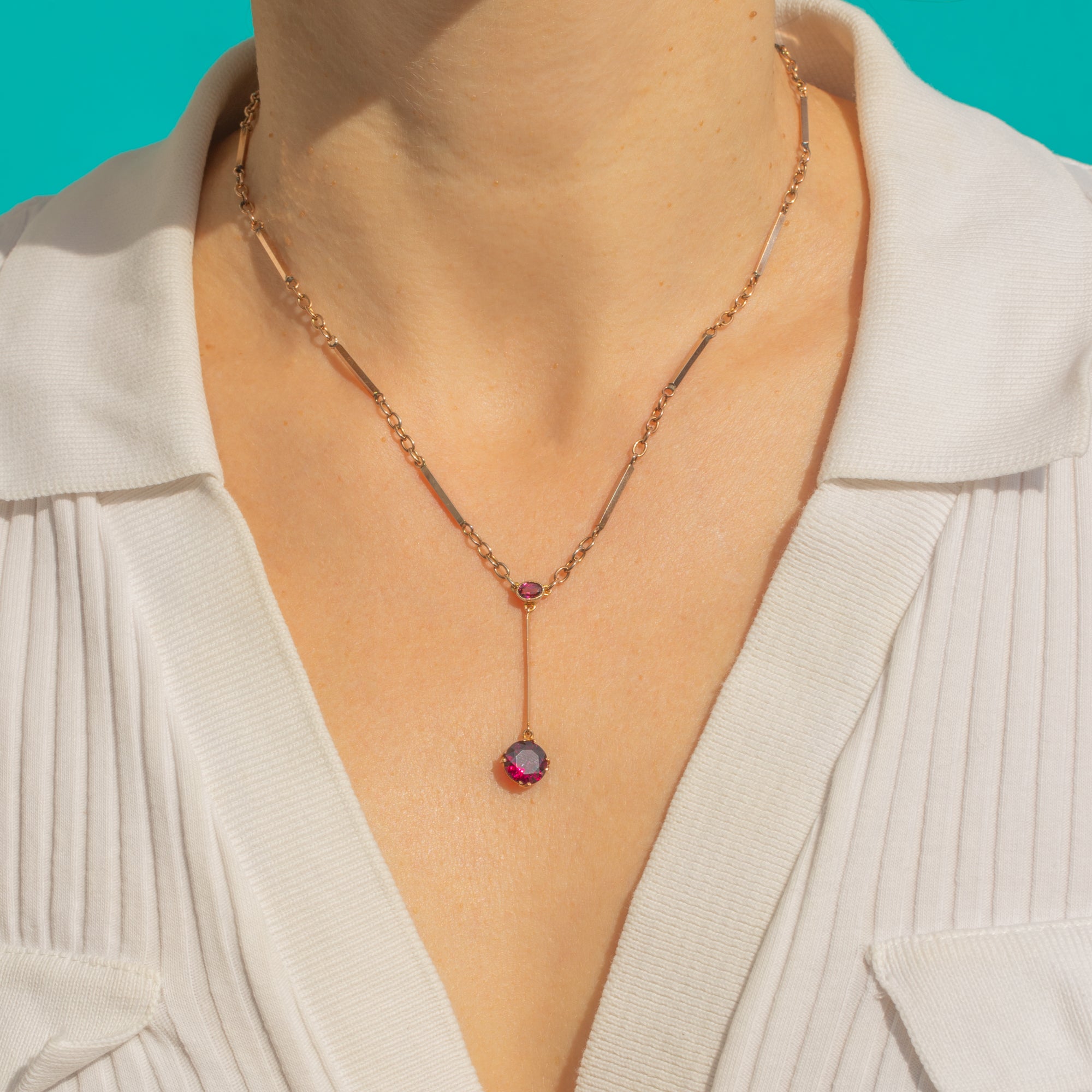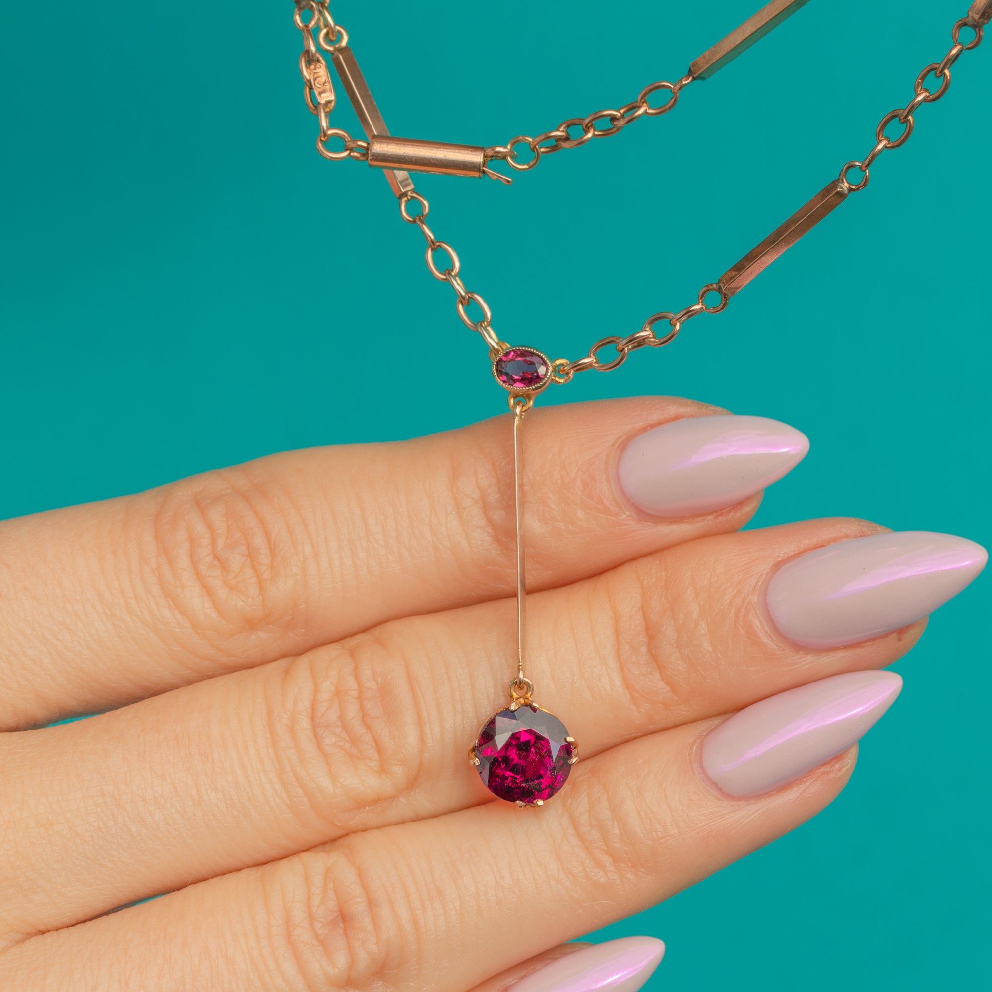 Antique 9ct Gold Rubellite Tourmaline Negligee Necklace