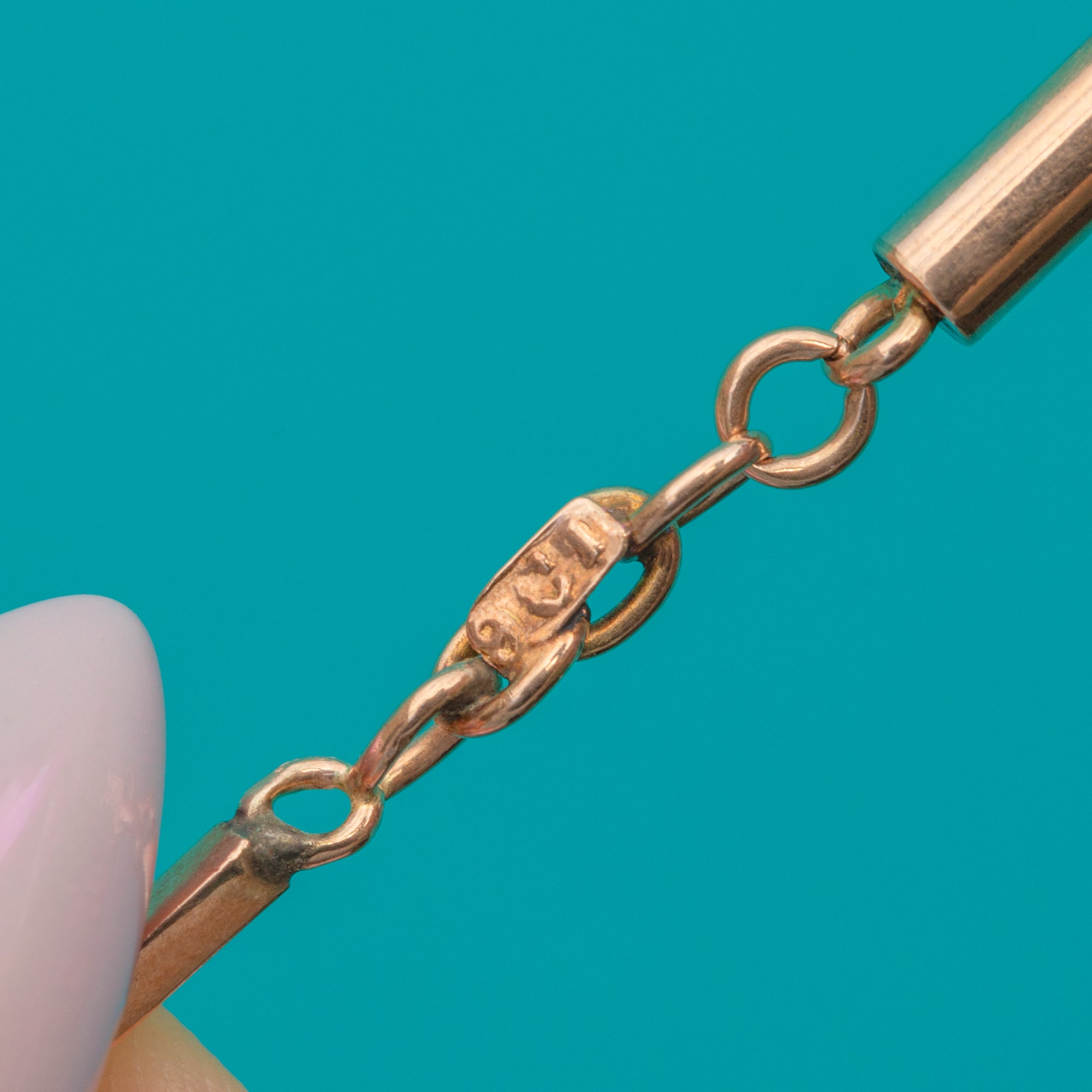 STAMPS: Worn 9CT tag near clasp.