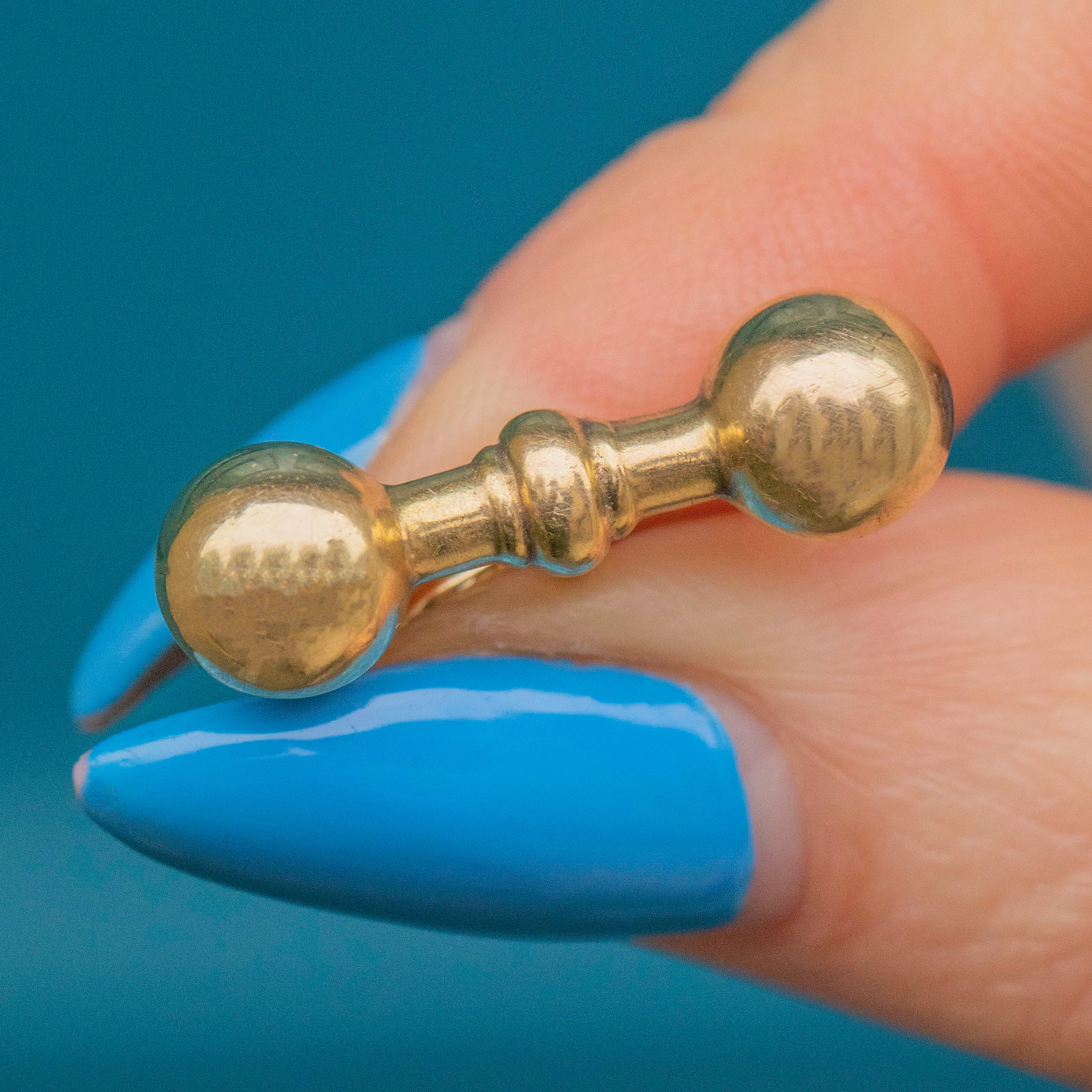 Is any Edwardian collection complete without an antique 9ct Gold t-bar pendant?! Crafted from buttery, solid 9ct Gold, this antique t-bar is perfect for adding a splash of splendour to any attire- this one is accented with two golden orbs either side!