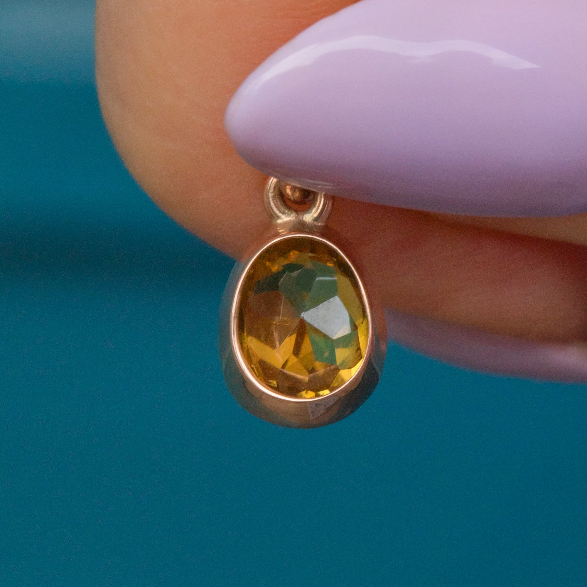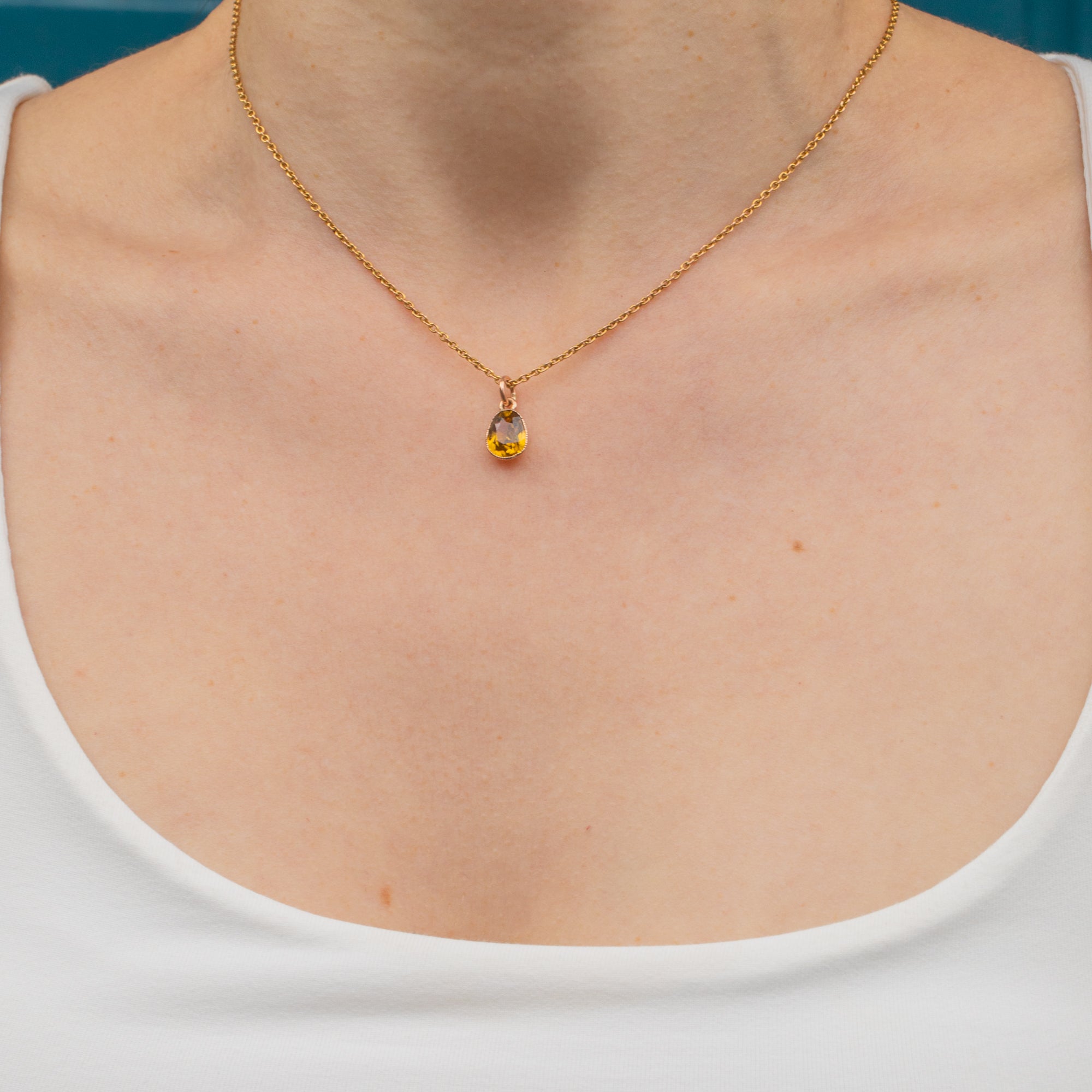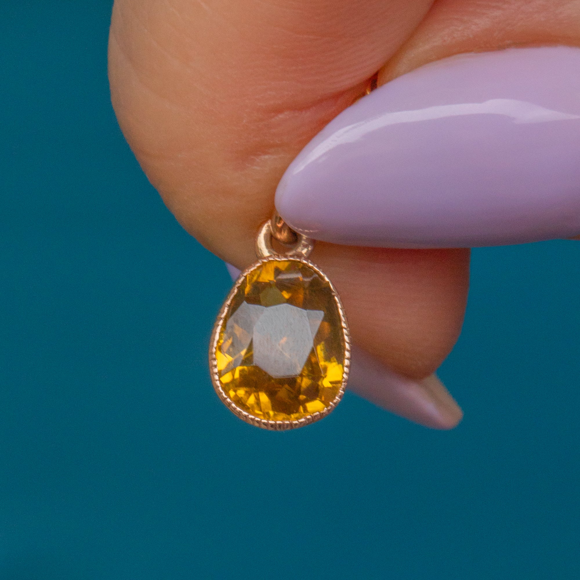 Set in a 9ct Gold bezel, the yellow Paste gemstone has a delicious syrupy hue with crisp facets that shimmer under the light. This Victorian charm is the perfect summer adornment!