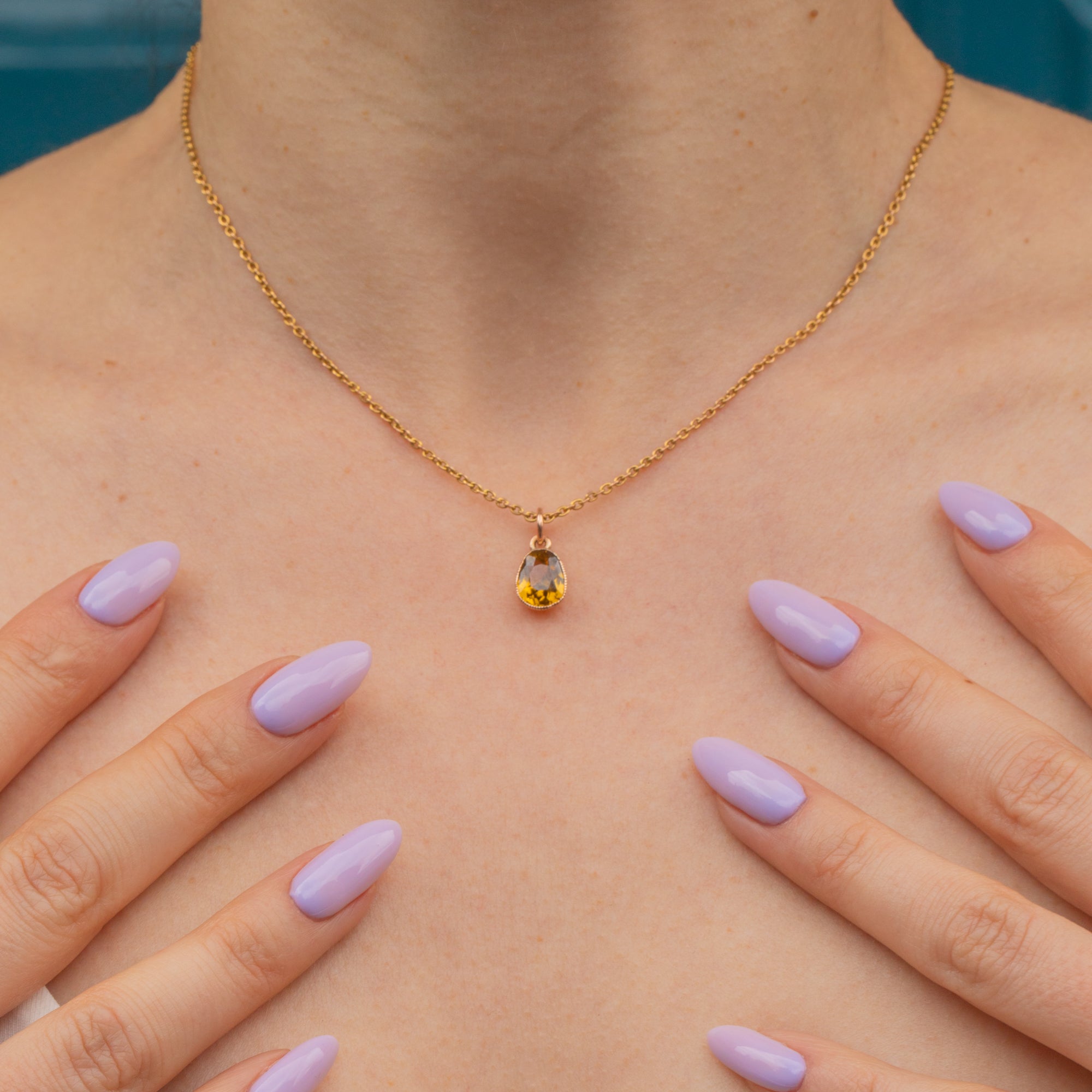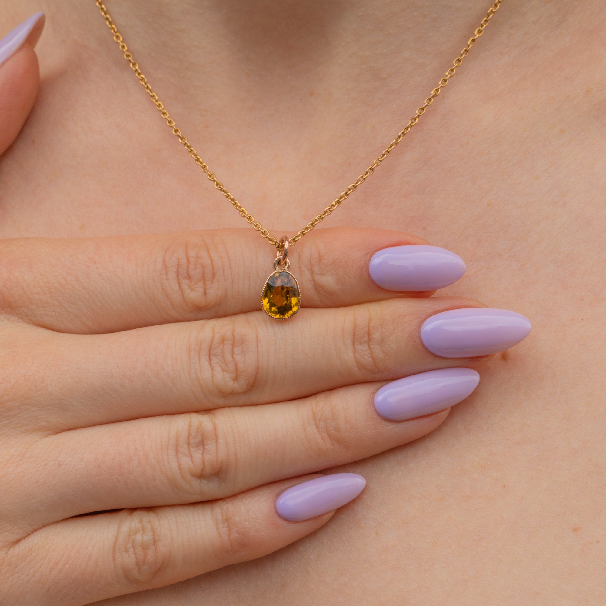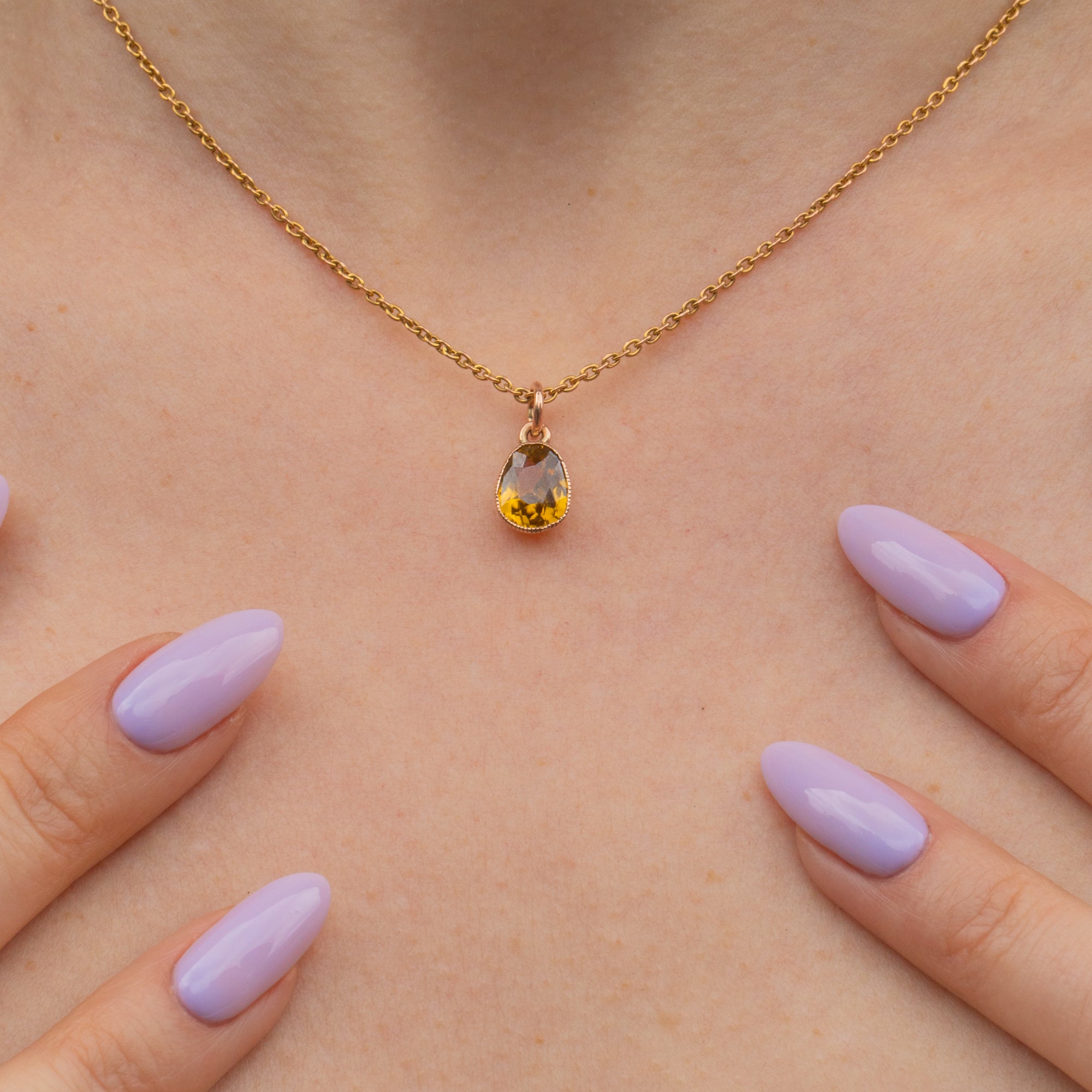 Set in a 9ct Gold bezel, the yellow Paste gemstone has a delicious syrupy hue with crisp facets that shimmer under the light. This Victorian charm is the perfect summer adornment!