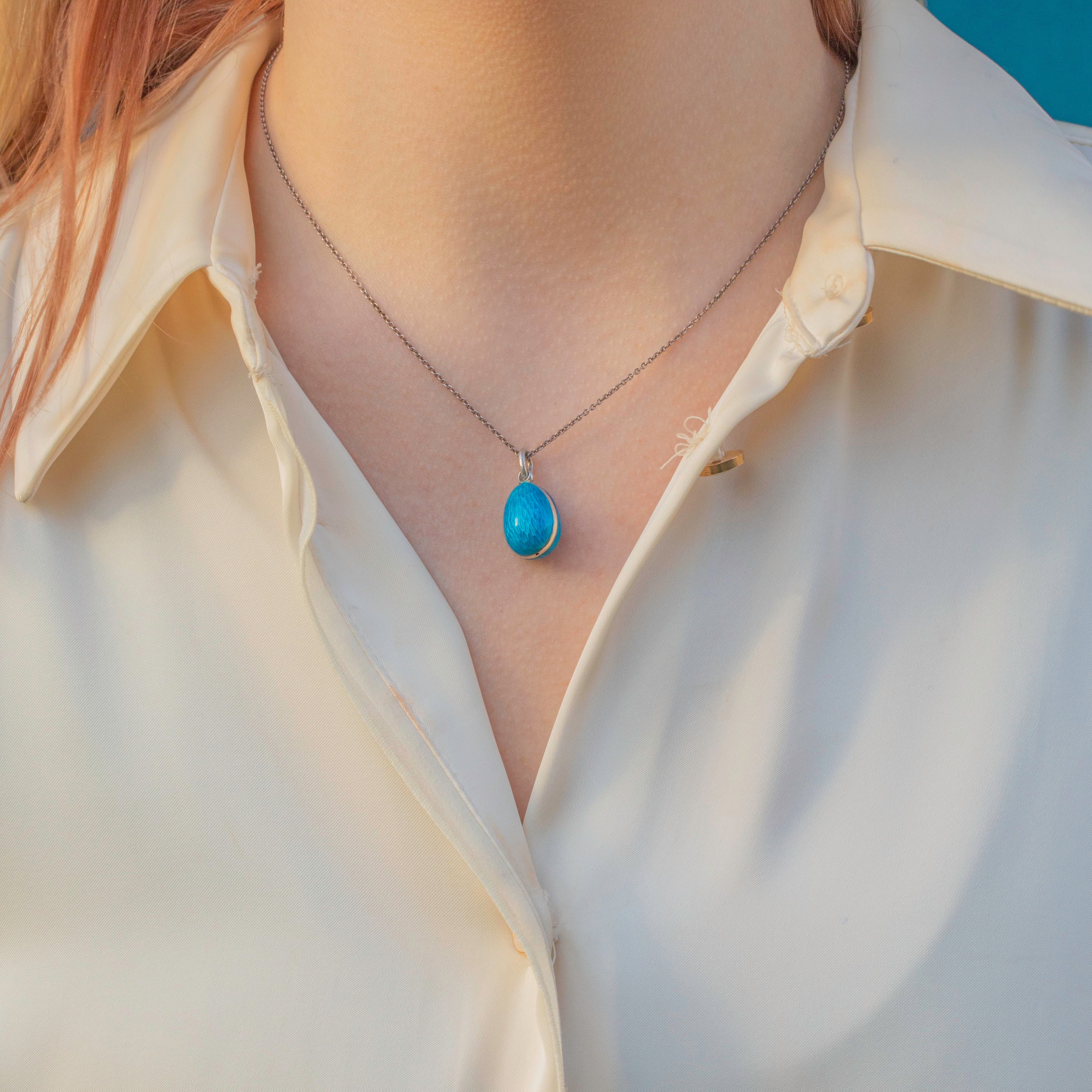 A gorgeous antique blue Enamel egg pendant to add to your neck stack! Crafted from Sterling Silver and inliad with wonderfully vibrant Blue Enamel, this faberge-style egg pendant is sure to add a pop of colour and allure to your collection.