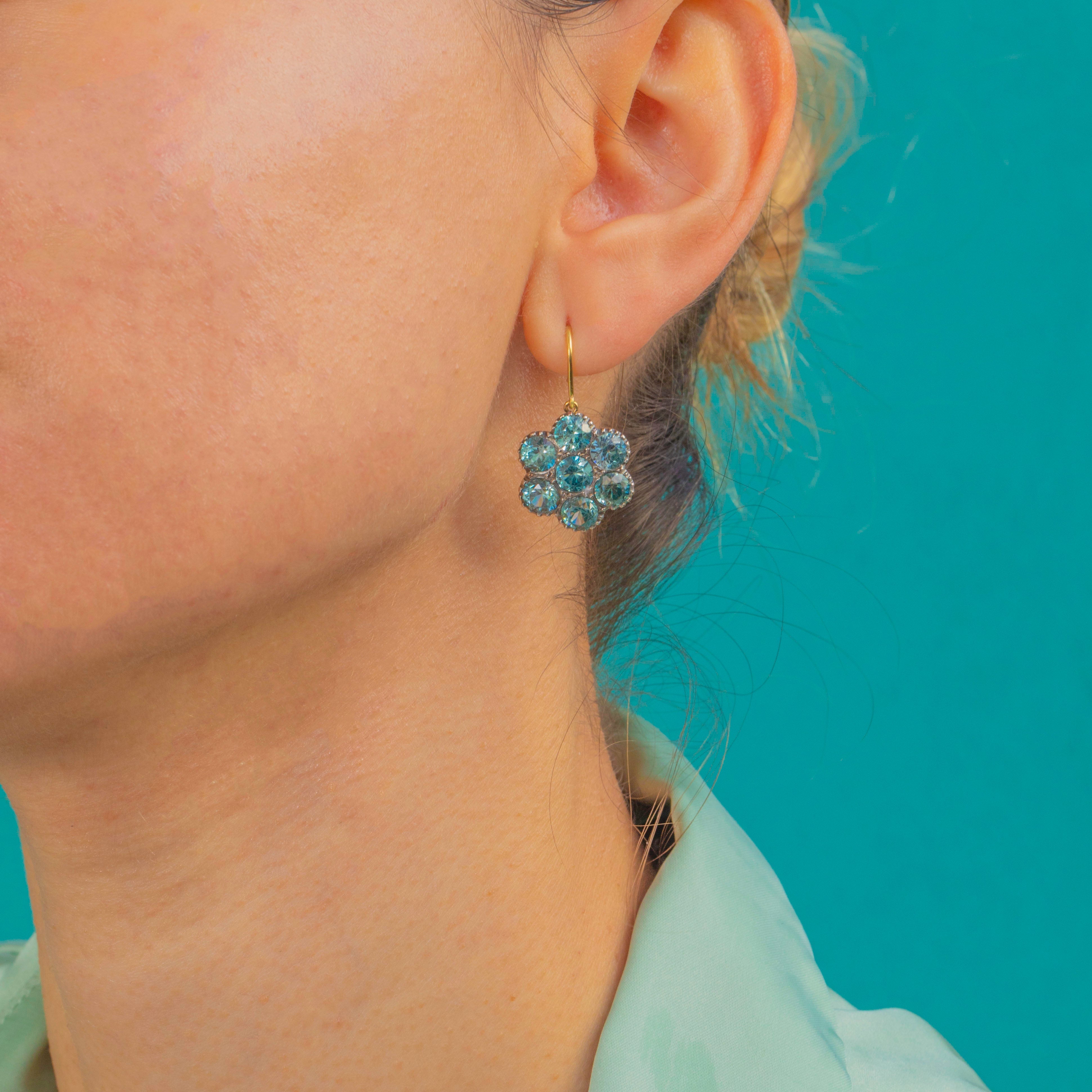 Antique Blue Zircon Cluster Earrings – 18ct Gold Hooks