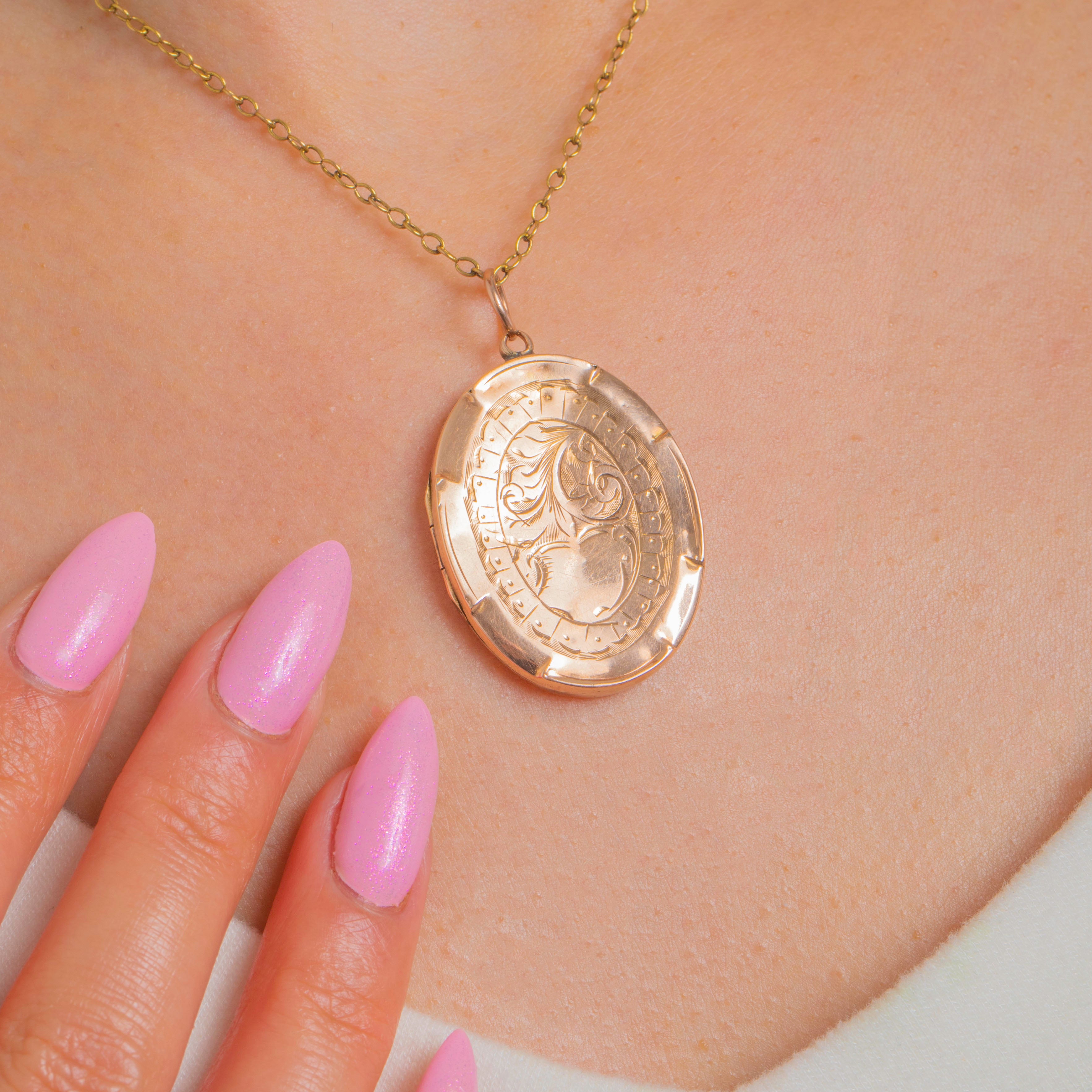 Antique Edwardian 9ct Rosy Gold Engraved Oval Locket