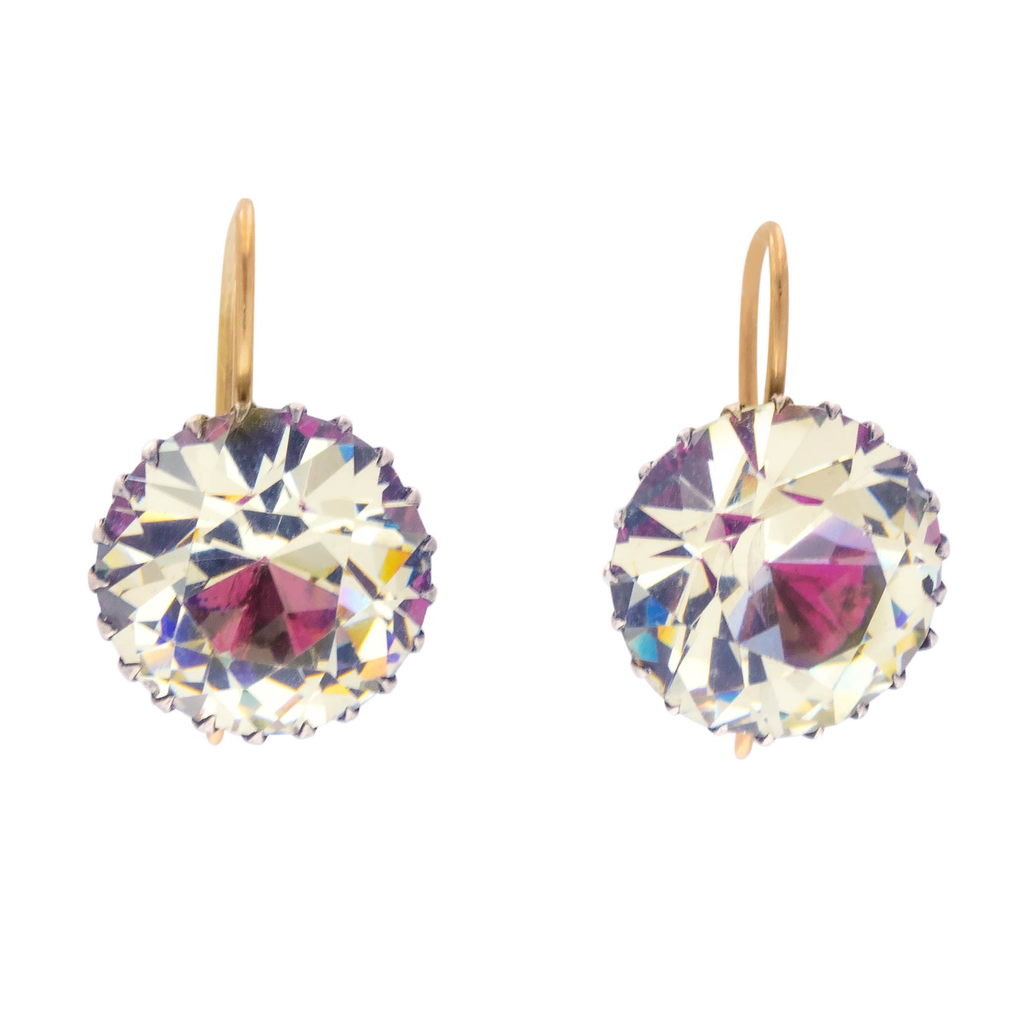 These Victorian earrings are impressive in size and their modest drop makes them the perfect pair to see you from day until night with ease. Antique foiled Paste in this condition is a rare find, so don't wait around to make these delightful earrings yours!