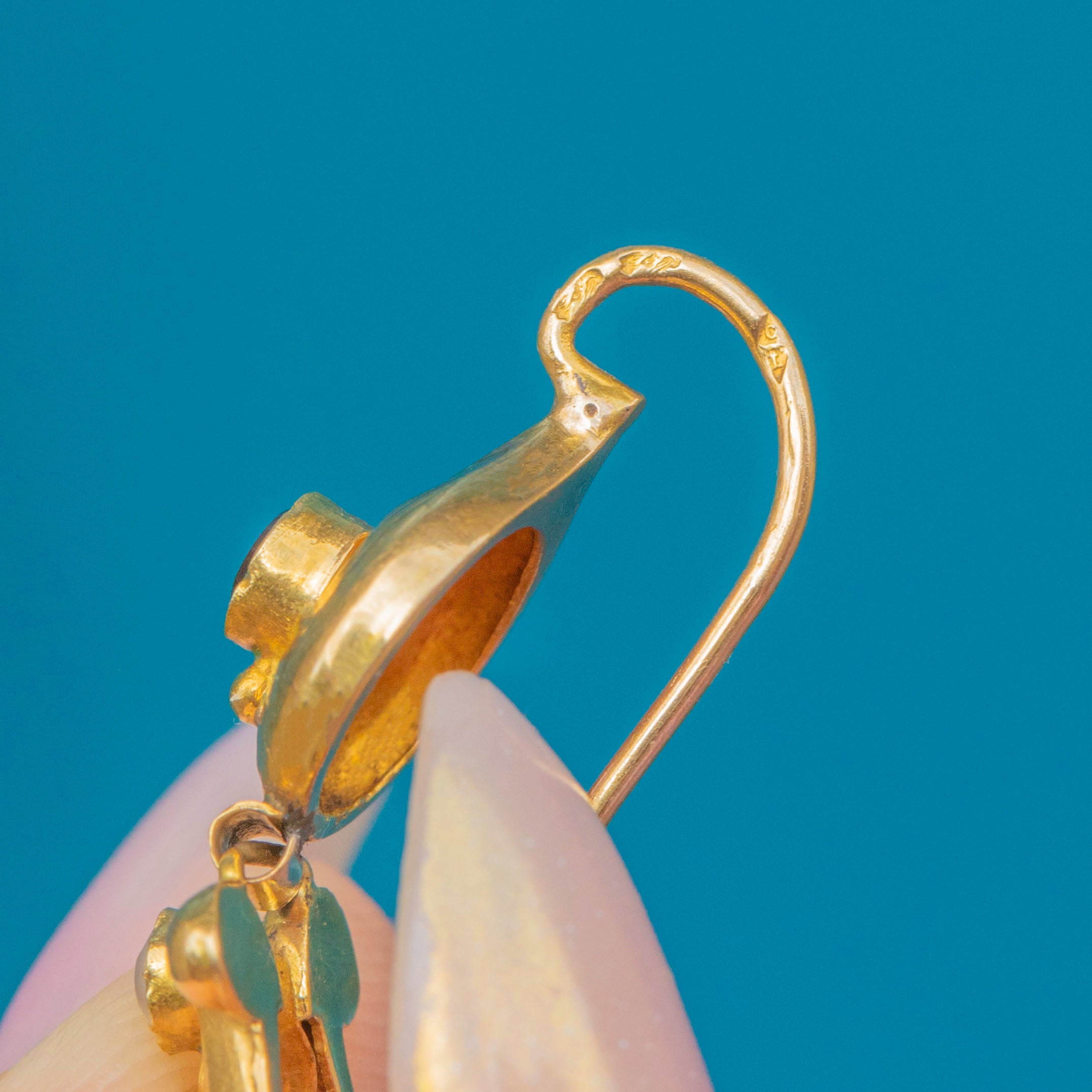 The graceful lines and delicate movement capture the refined aesthetic of late 19th-century French jewellery, making these earrings a rare and collectible example of period craftsmanship.