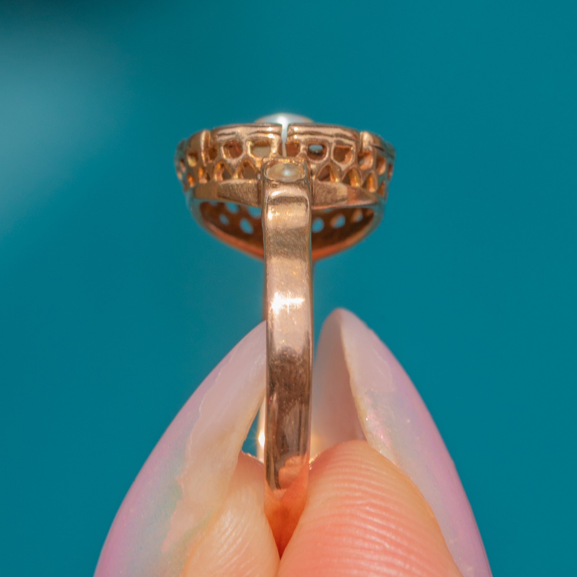 Antique French 18ct Gold Pearl Diamond Flower Cluster Ring