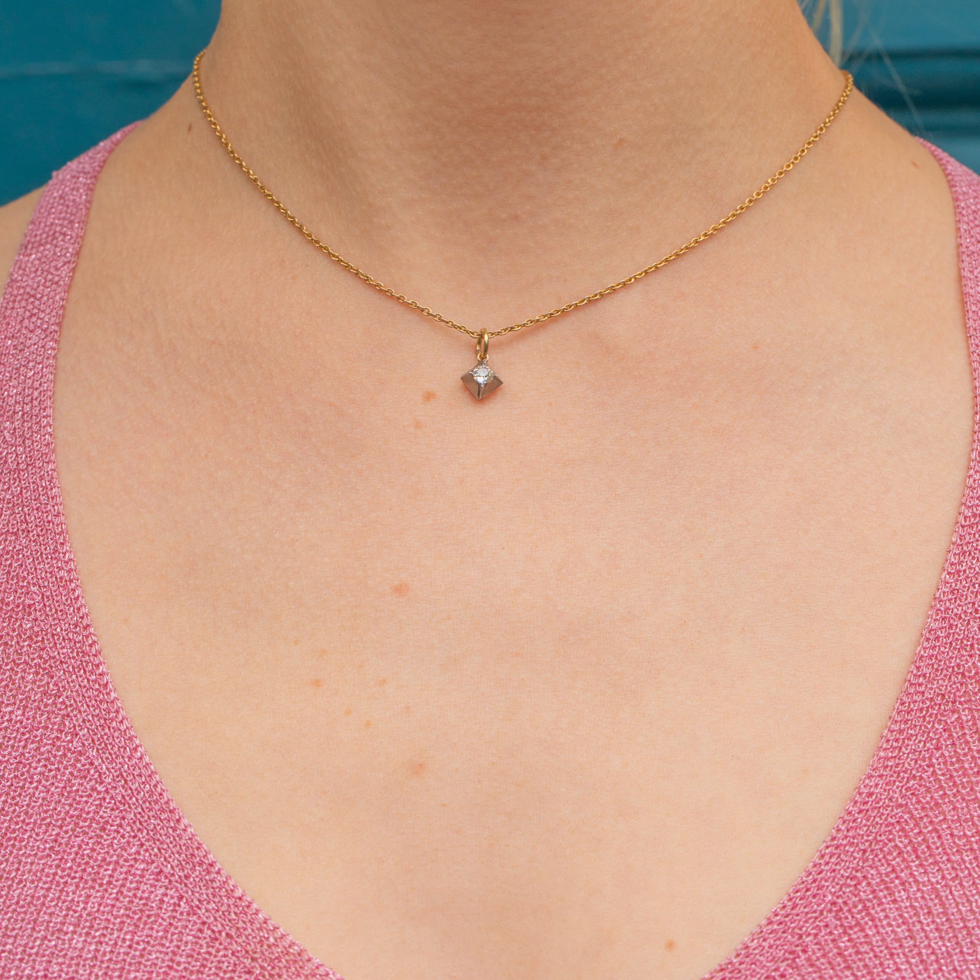 This resplendent antique Old-Mine Cut Diamond square charm will make a timeless addition to your collection! The fiery 0.15ct Diamond will instantly enchant you, with her crisp scintillation creating a bold contrast against the moody Silver setting.