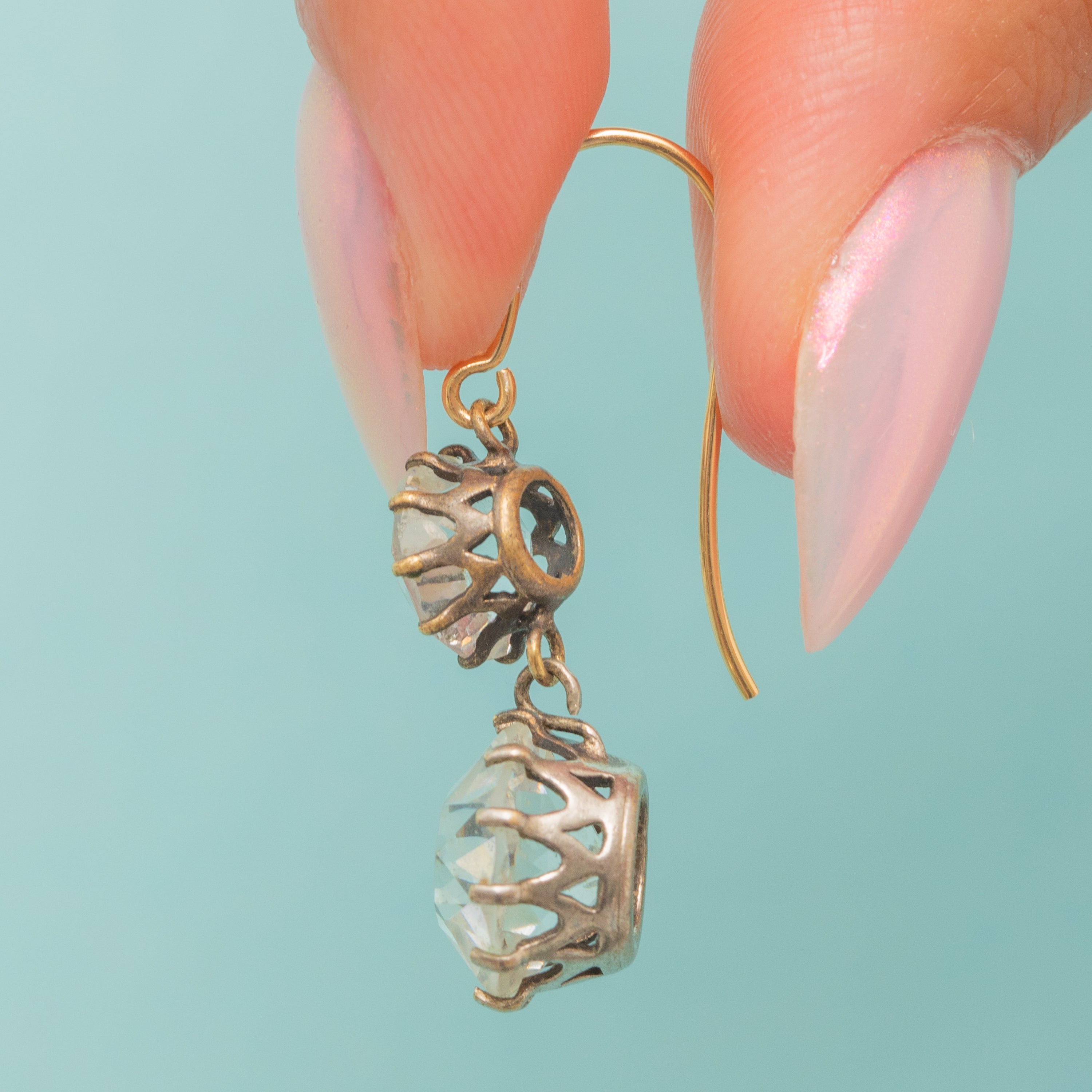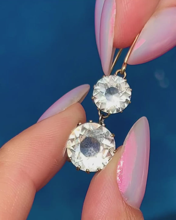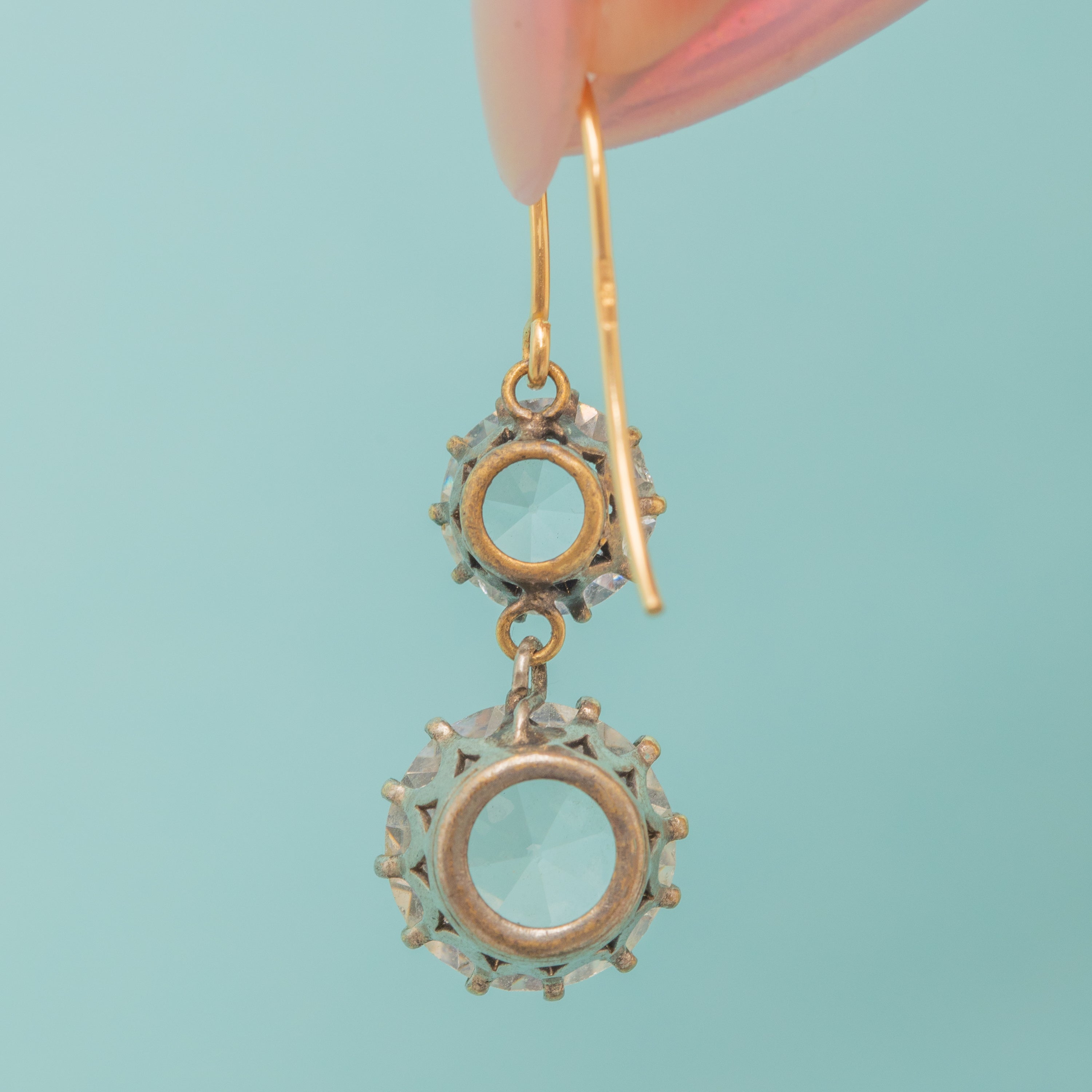 Each antique earring suspends two graduating Paste stones, each one faceted gorgeously and presenting a dazzling radiance as it catches the light. Complete with buttery 9ct Gold hooks, these Victorian earrings dance with movement as they perch beneath your lobes and are perfect for adding a touch of glamour to any attire!