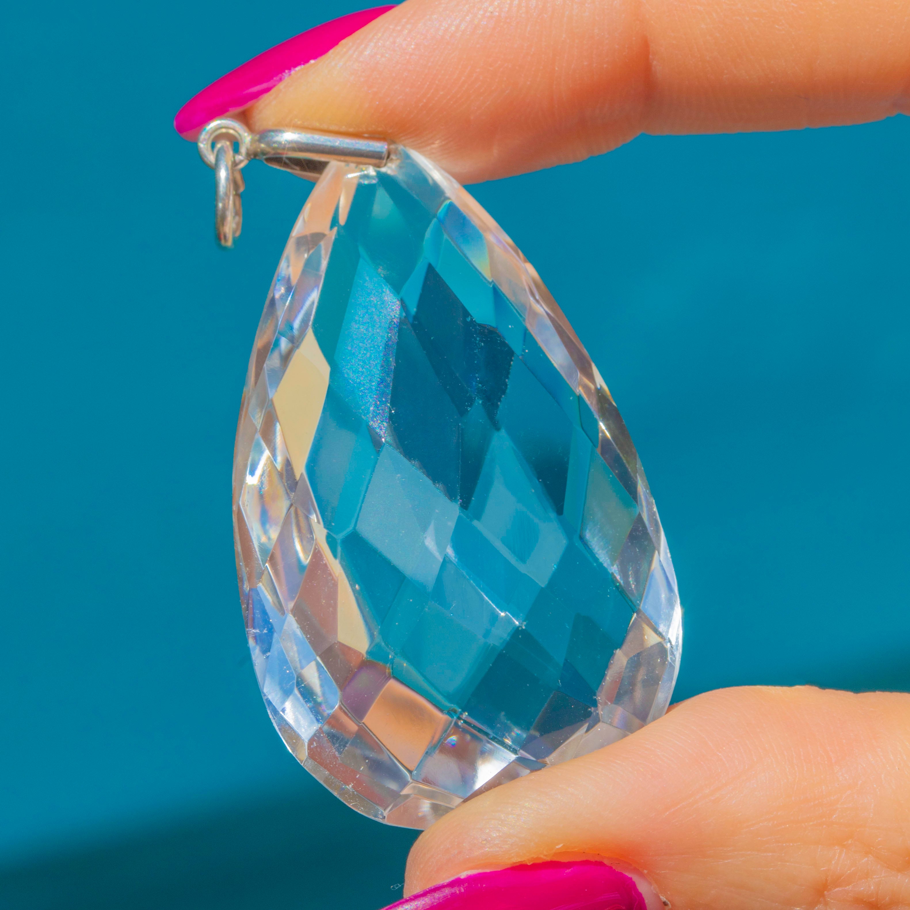Antique Silver Faceted Rock Crystal Pear Pendant, 61.90ct Item added