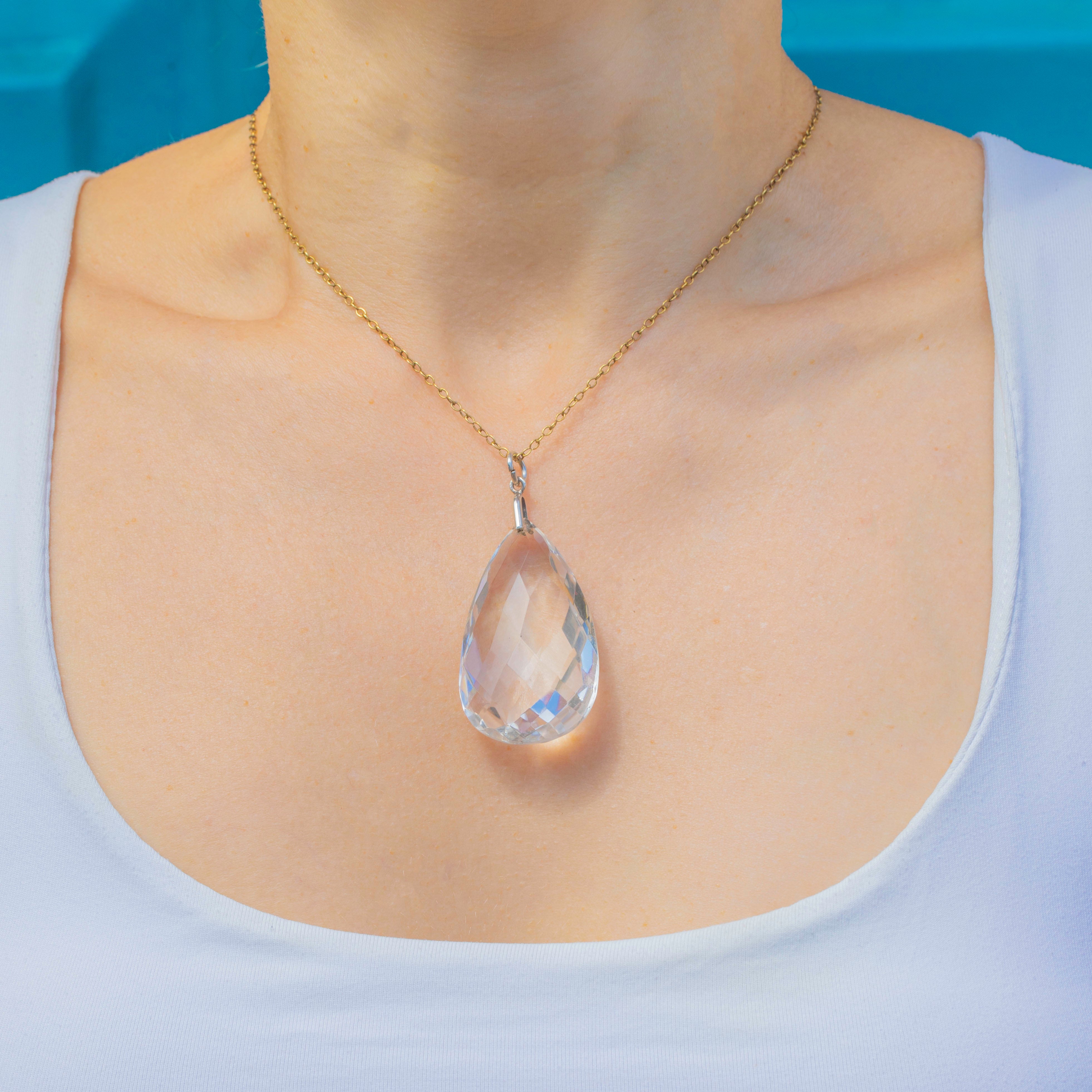 This Art Deco Rock Crystal pendant will add a bold, glimmering accent to your décolletage! The 61.90ct pear-cut Rock Crystal creates a wonderful display as its large, geometric facets catch the light.