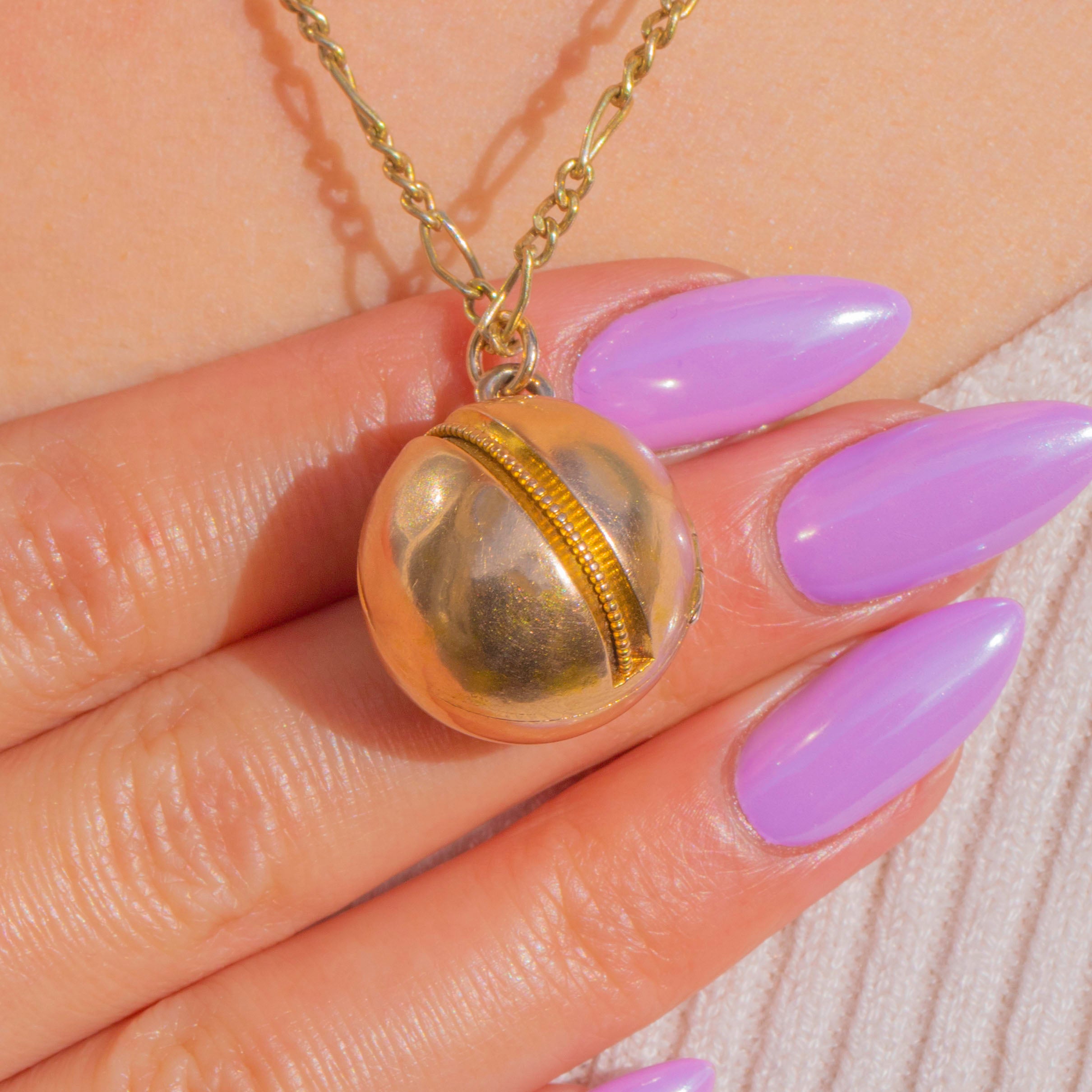 The pendant opens at the equator via a neat hinge and opposing catch, revealing a bright, reflective interior. A small jump ring completes the silhouette, ready to style on your favourite chain. Understated yet luxurious, it’s a beautiful nod to Victorian design in a clean, contemporary-feeling form.