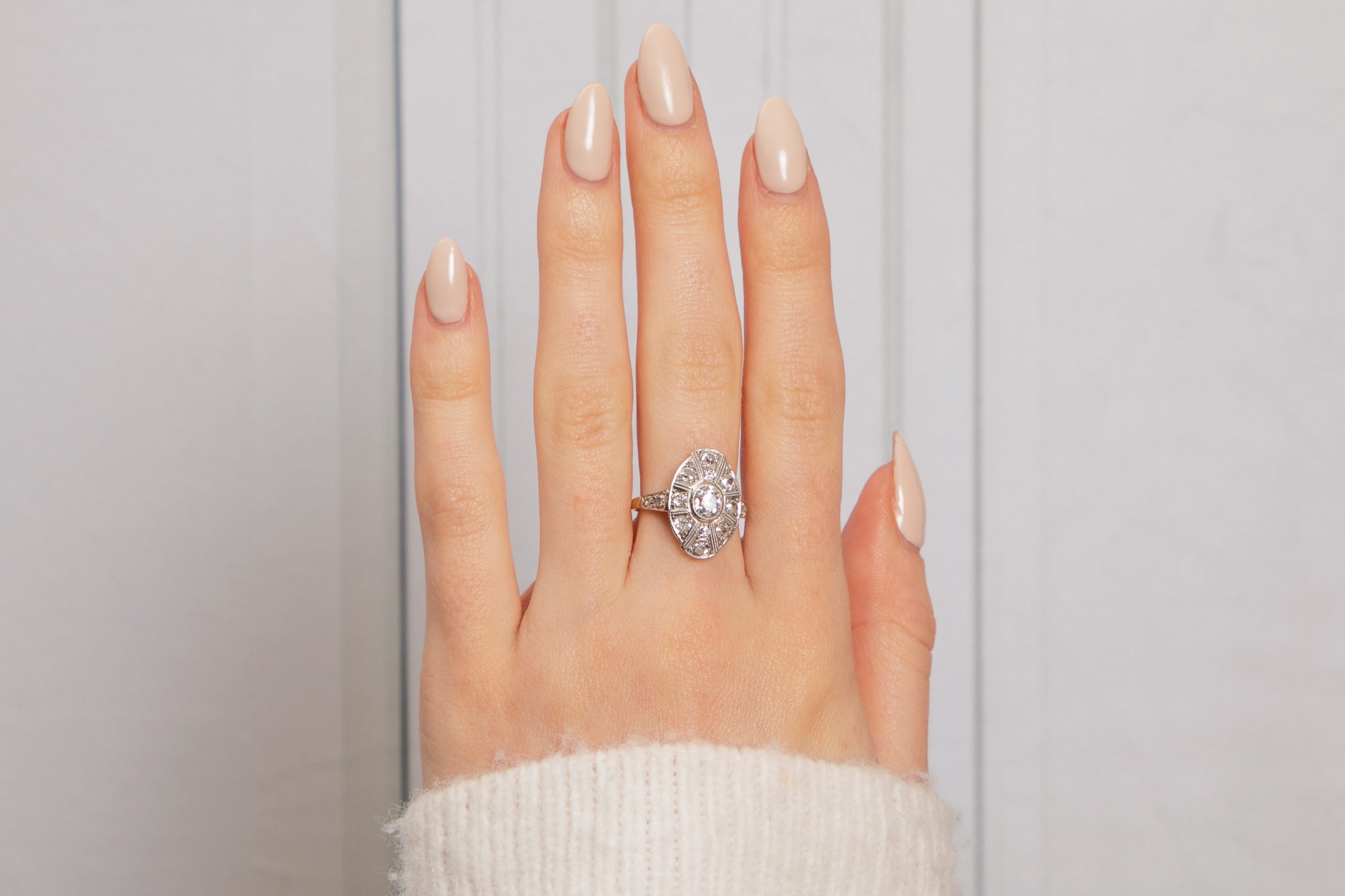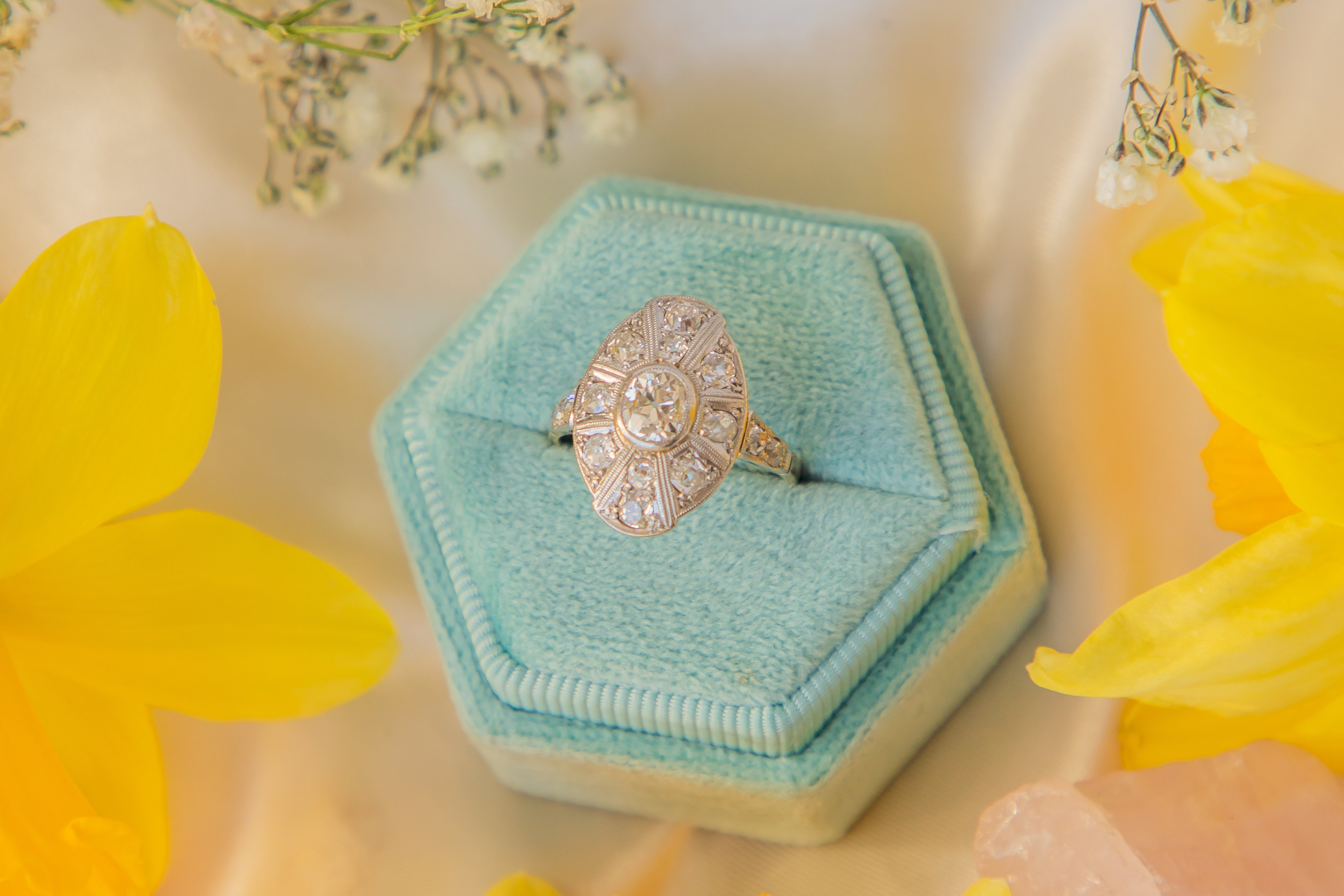 Just look at this Art Deco 18ct Gold Diamond cluster ring! With little need for introduction, this ring sparkles and flashes like nothing we've seen before, in her pure and beautiful Art Deco form.