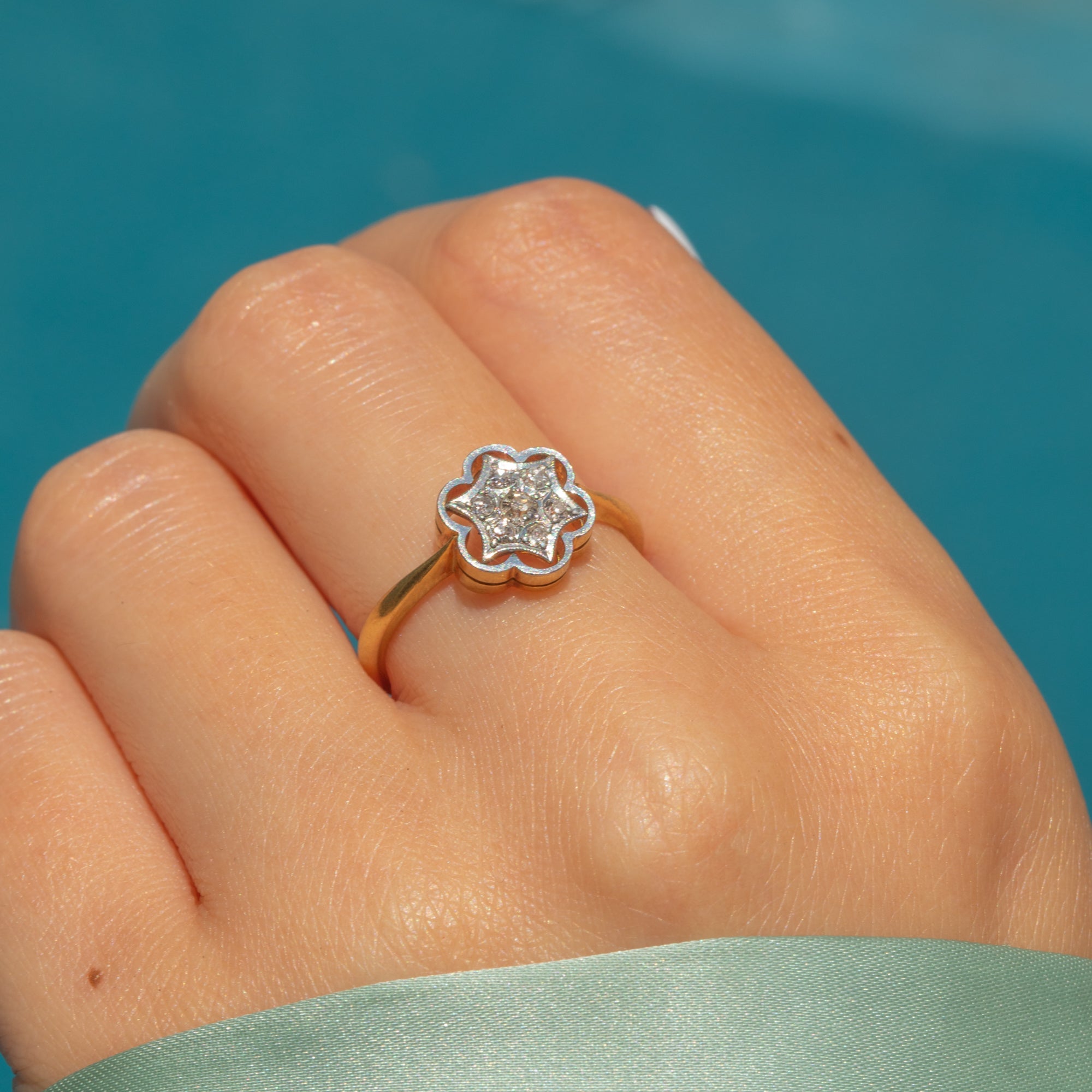 Art Deco 18ct Gold Diamond Star Flower Cluster Ring Item added