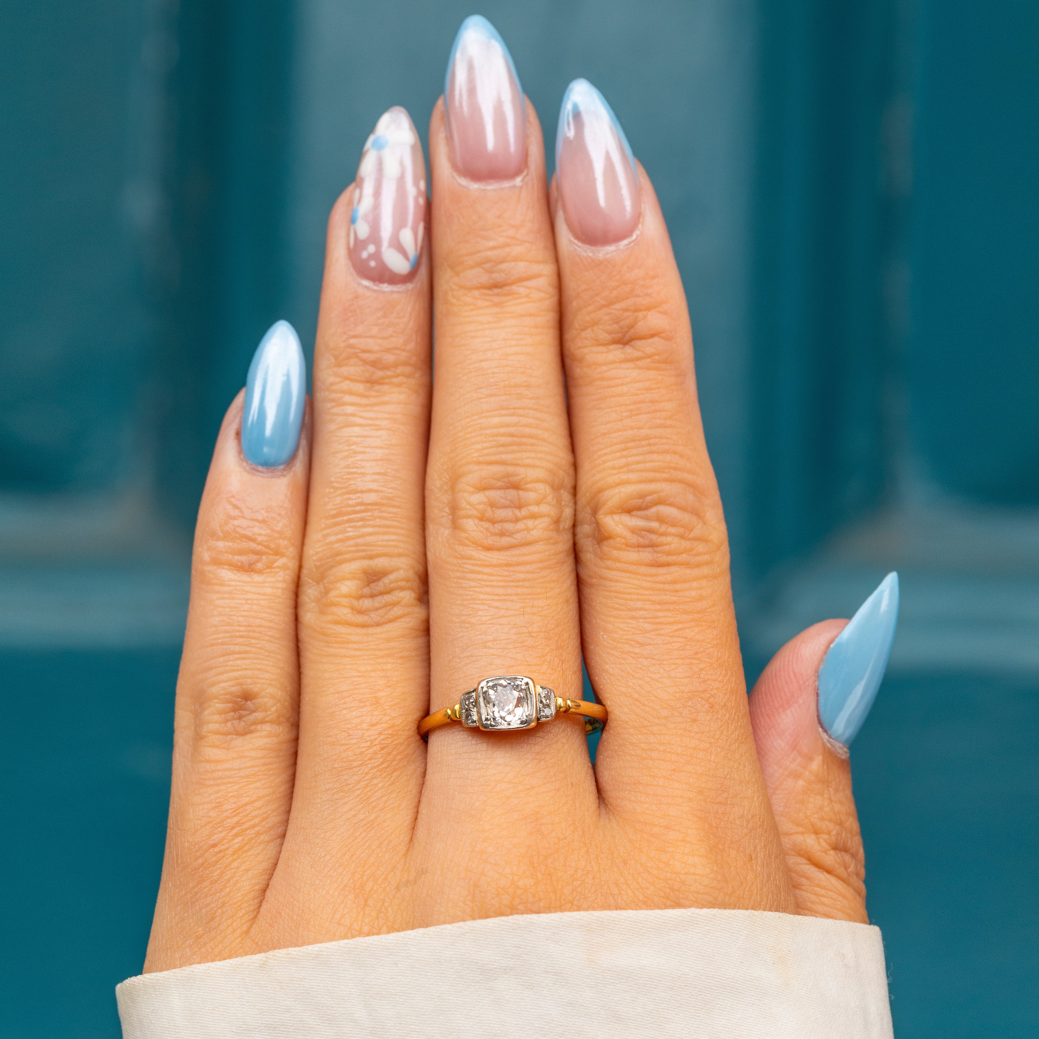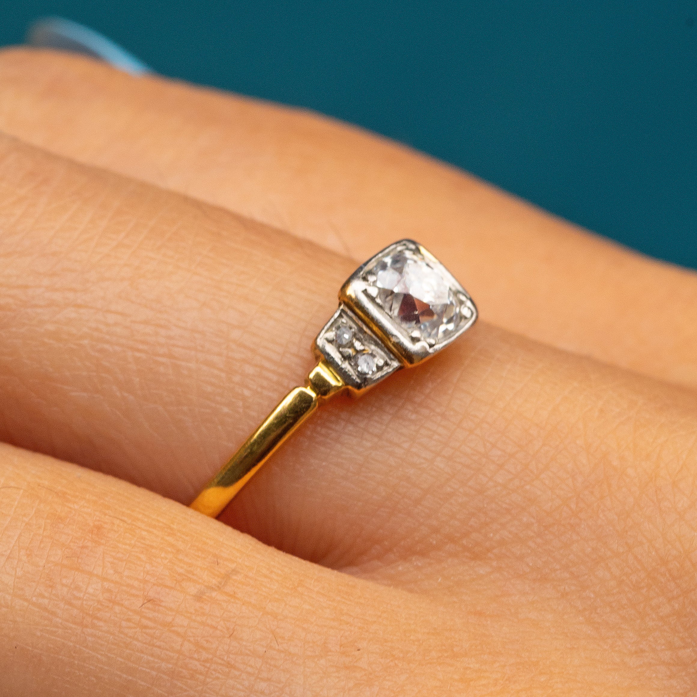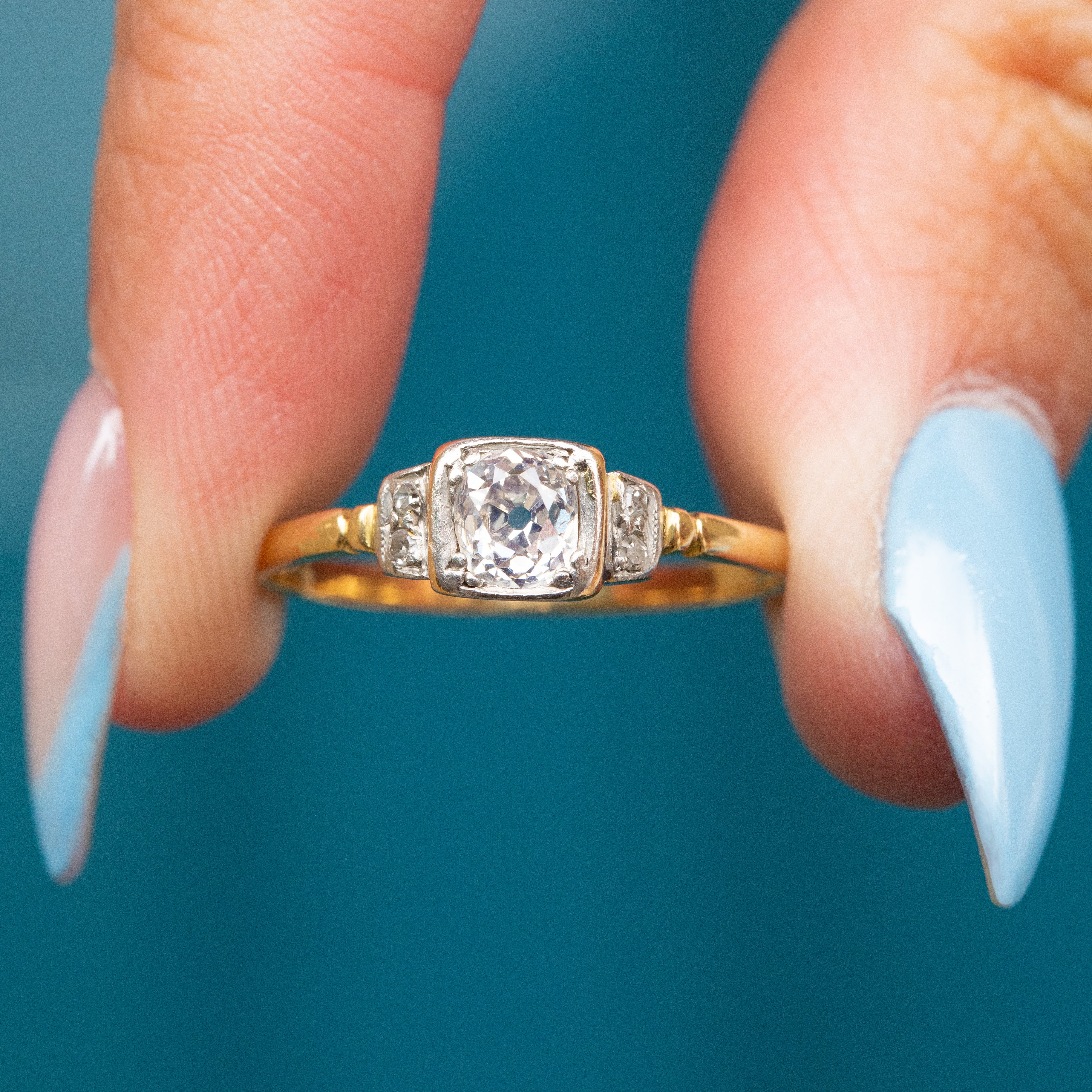 Art Deco 18ct Gold Old-Mine-Cut Diamond Engagement Ring 0.40ct