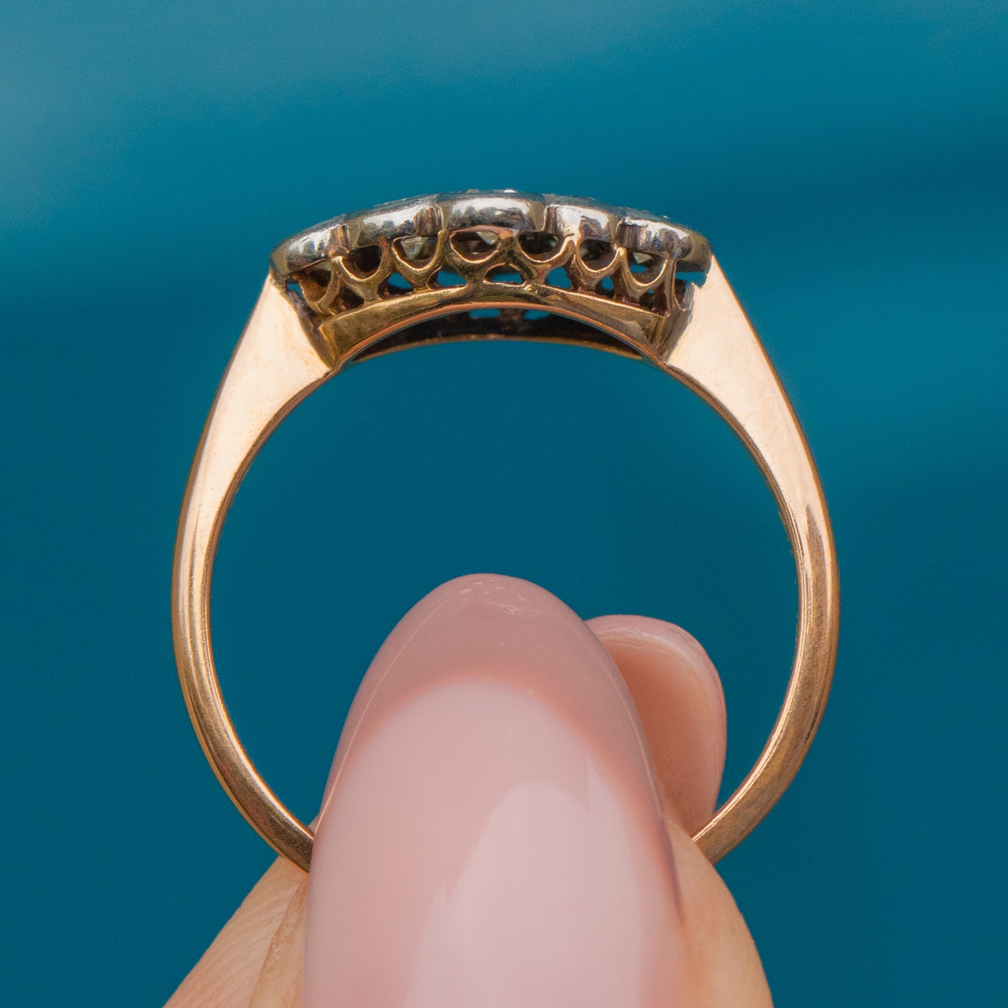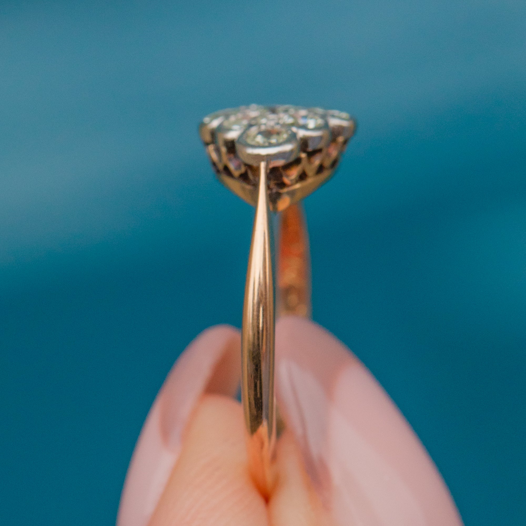 Crafted from 18ct Gold and Platinum with the Diamonds set into a low profile, this Art Deco ring is perfect for everyday wear and would be a wonderful choice for a unique engagement ring!