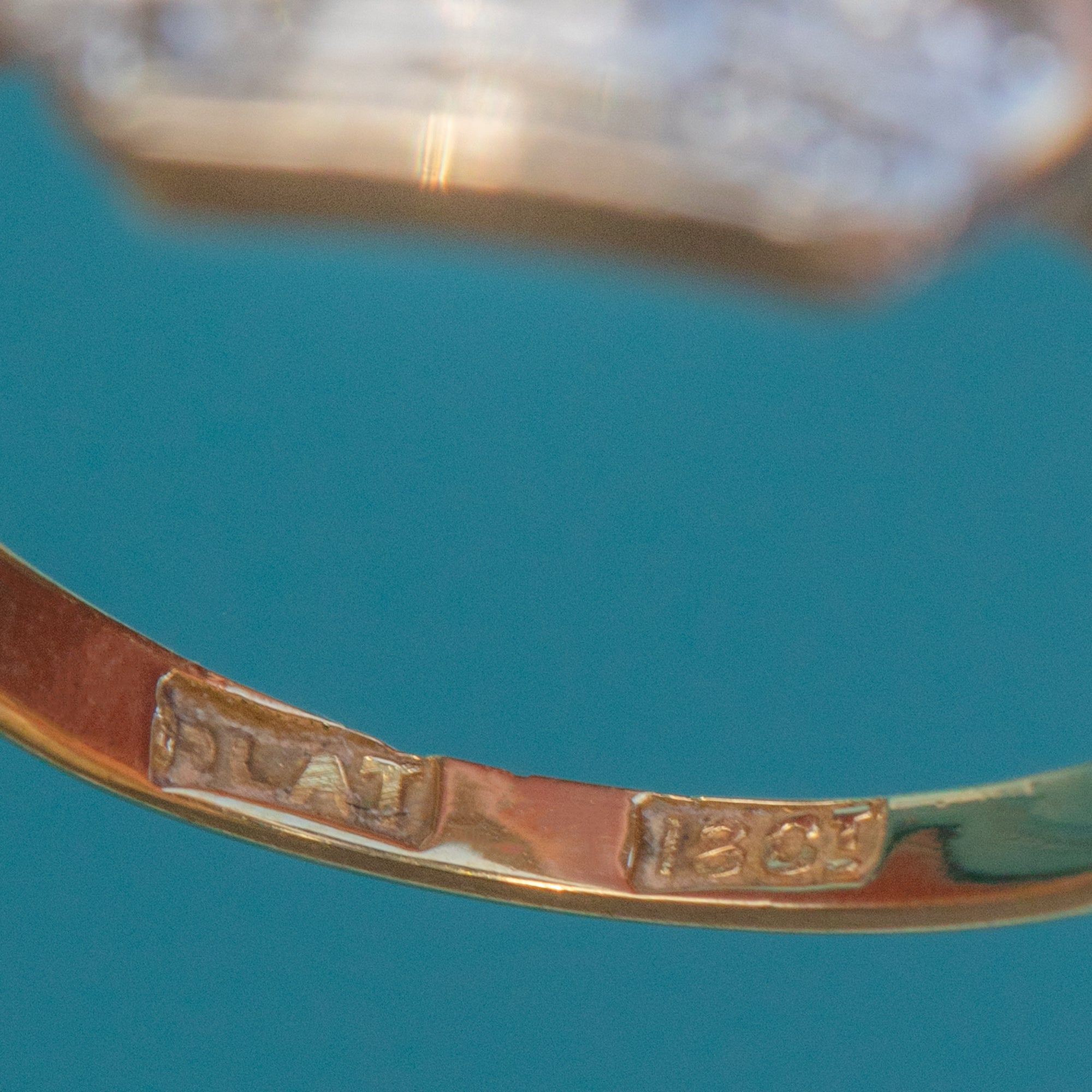 This elegant Art Deco ring showcases a refined geometric panel design, set with sparkling Diamonds in Platinum over an 18ct Gold band. The contrasting metals highlight the clean symmetry and precision craftsmanship so characteristic of the 1920s and 1930s.