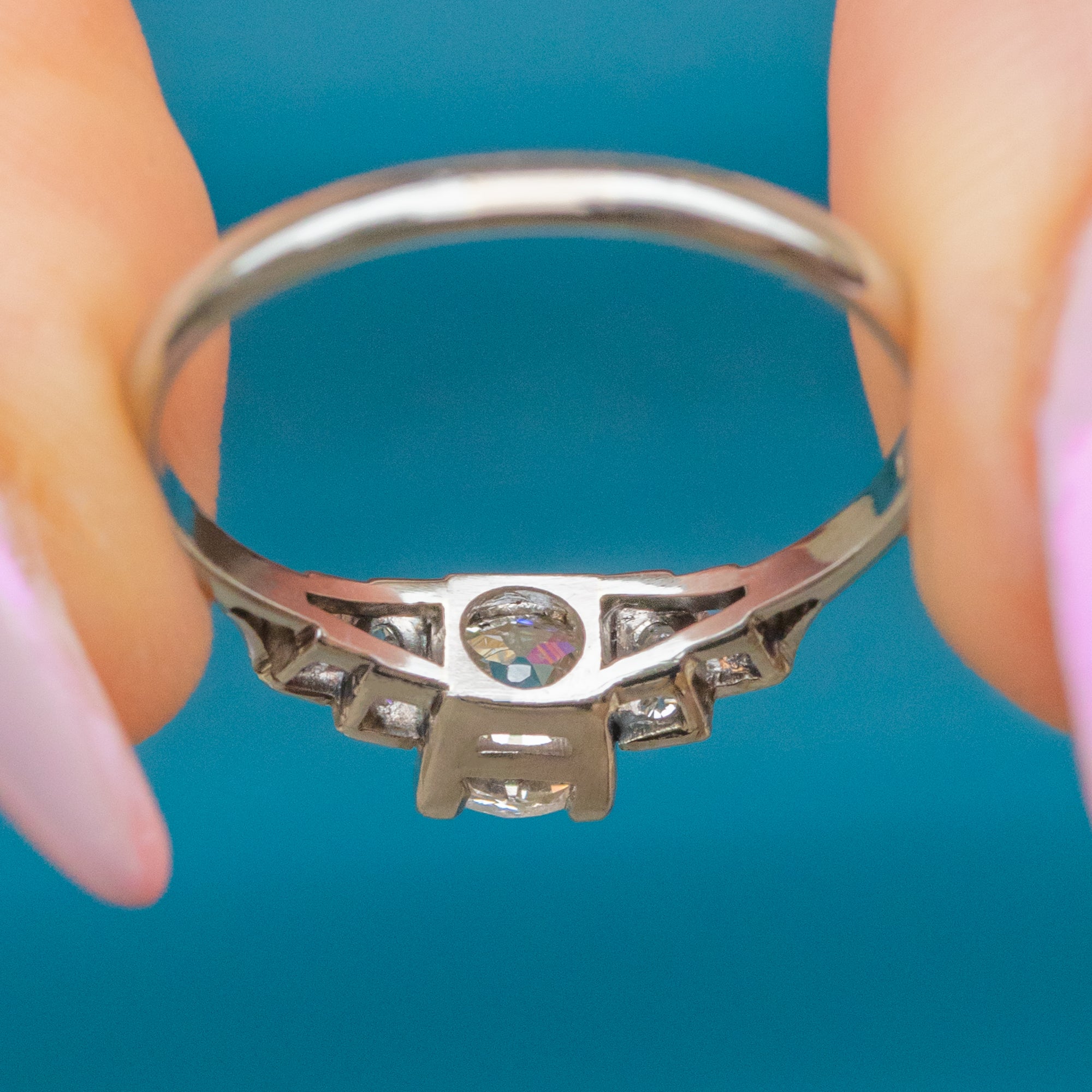 Perfectly balanced and full of sparkle, this is a timeless engagement ring that embodies the sophistication and craftsmanship of the Art Deco era and would make a gorgeous engagement ring!