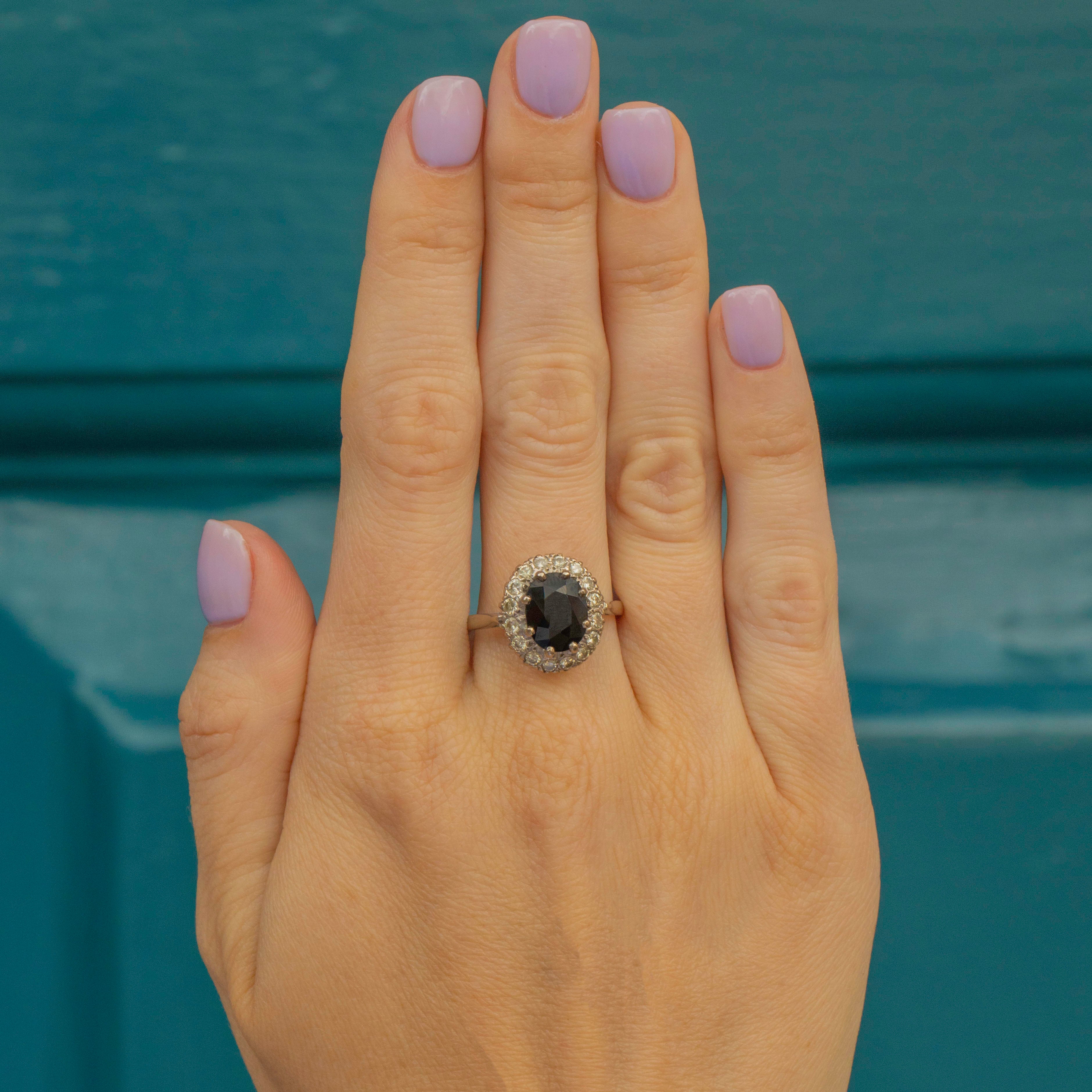 Art Deco 18ct White Gold Sapphire Diamond Cluster Ring, 1.30ct Sapphire