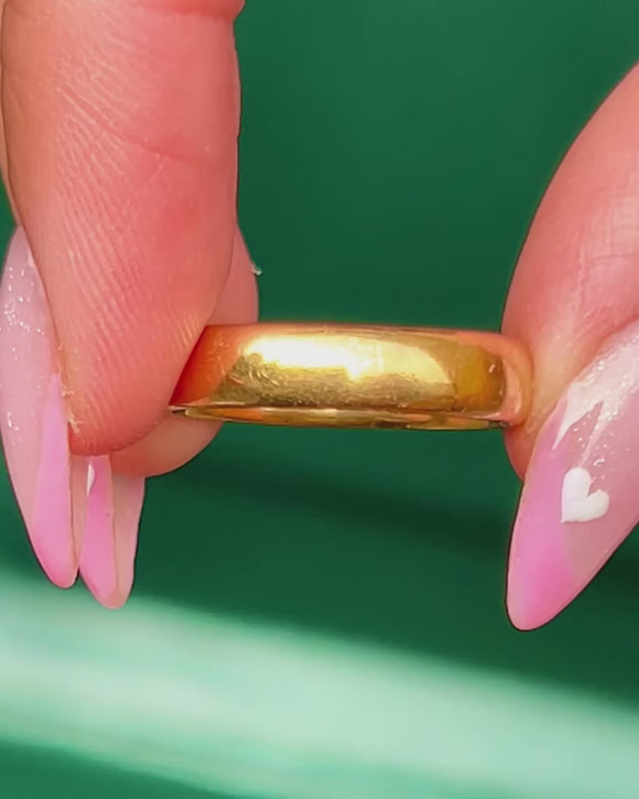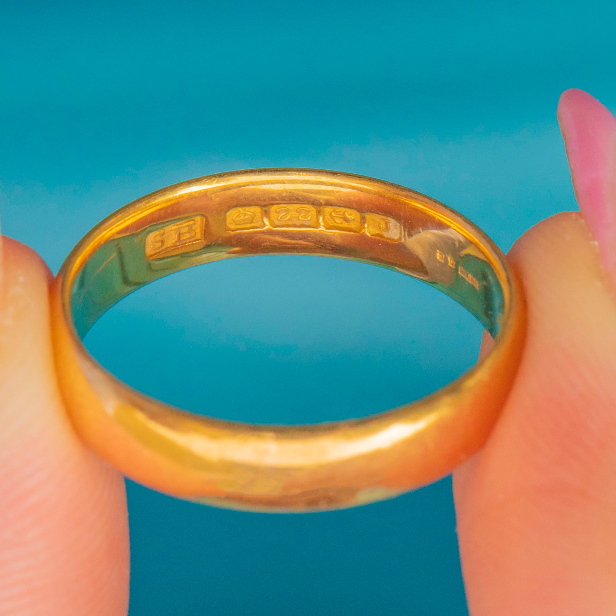 Perfectly proportioned with a 4.5mm width, this piece carries a full set of clear English hallmarks, ensuring authenticity and adding extra charm for antique collectors and romantics alike.