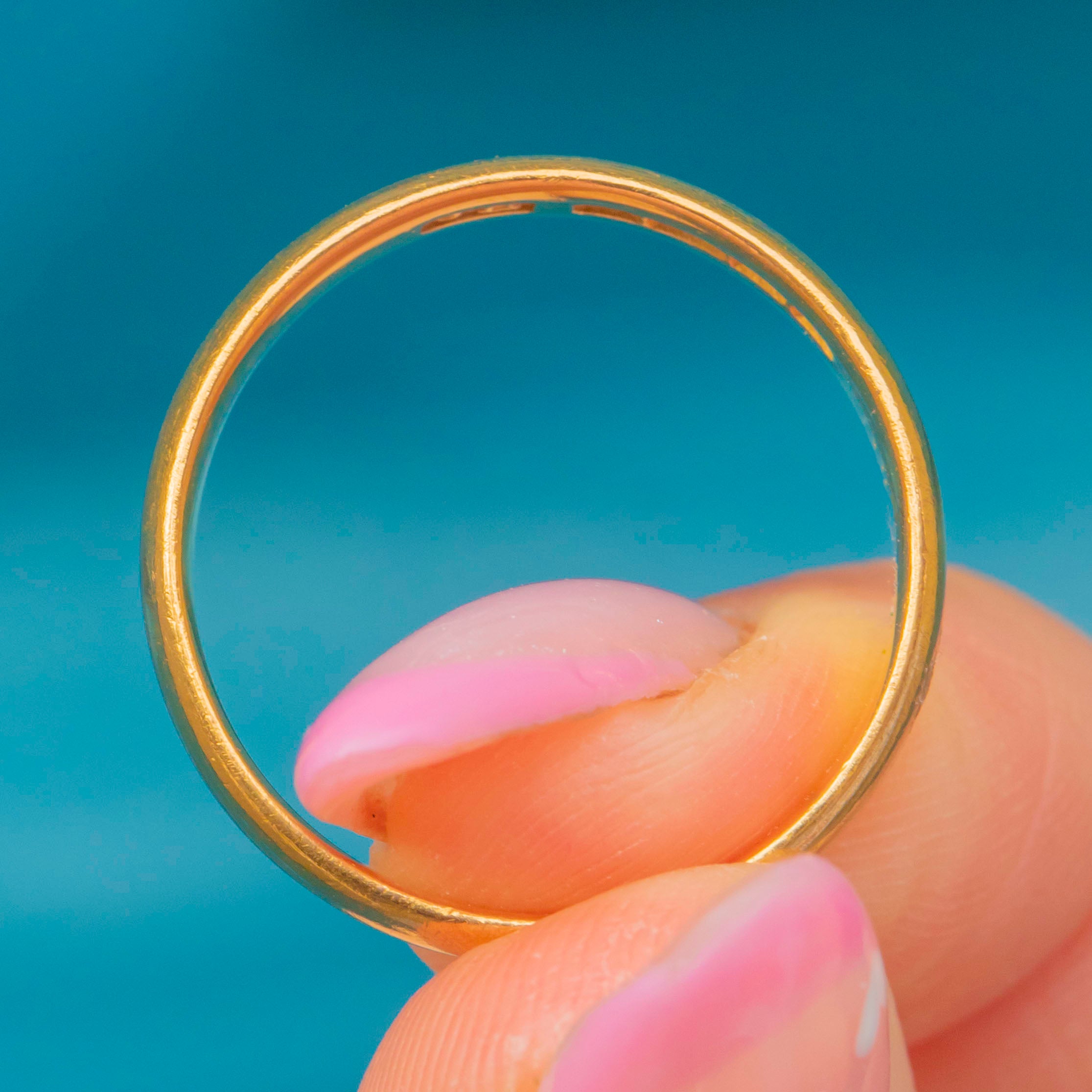 This elegant Art Deco wedding band is crafted in luxurious 22ct Gold, the traditional choice for its rich hue and enduring quality. Dating to 1933, it’s a classic example of the era’s refined simplicity, timeless, smooth, and beautifully made for a lifetime of wear.