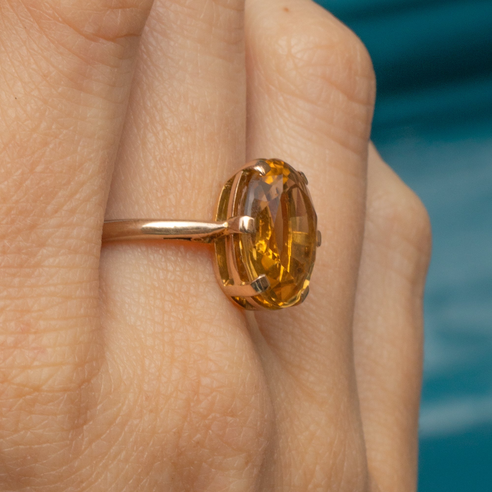 Art Deco 9ct Gold Citrine Cocktail Ring, 3.40ct