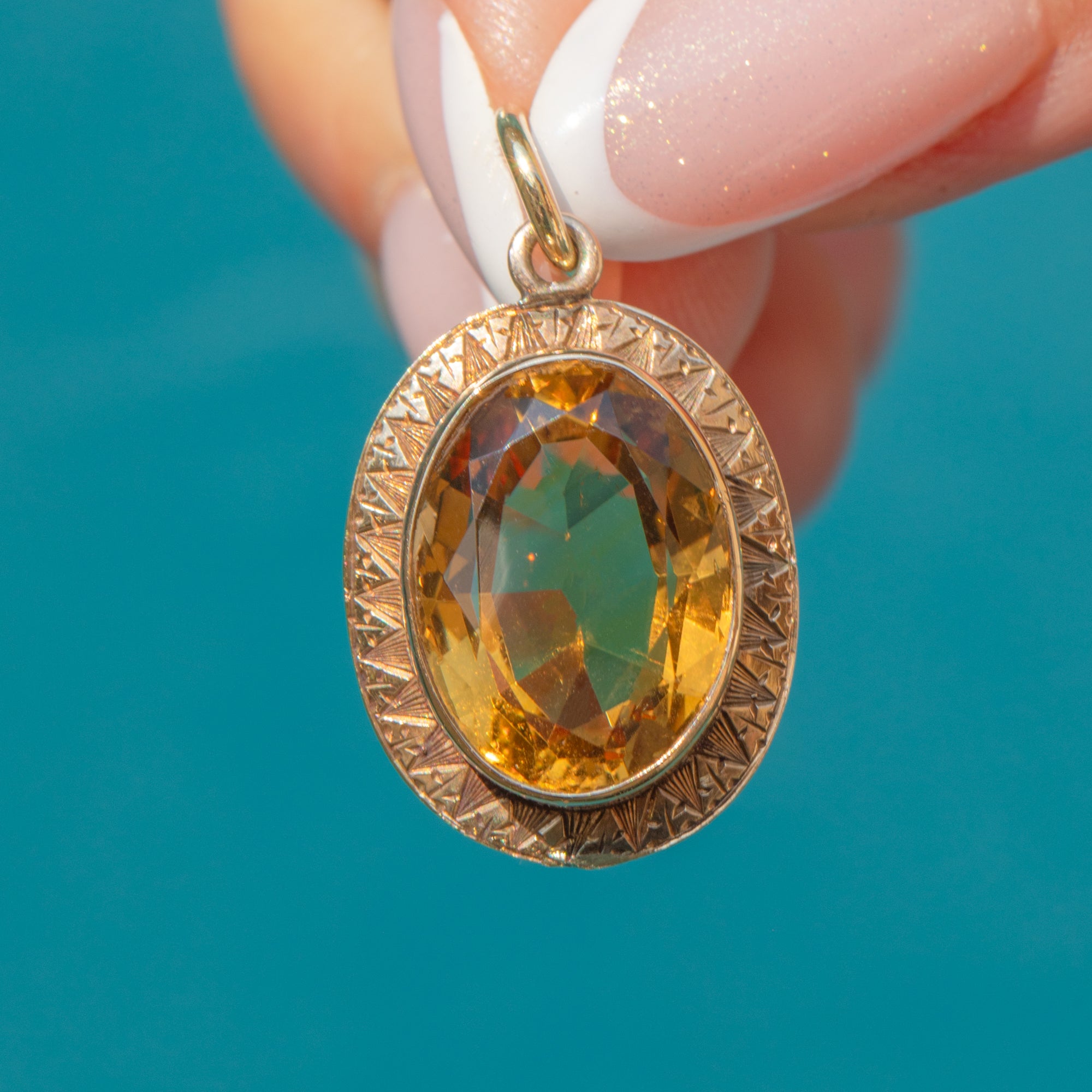 Art Deco 9ct Gold Citrine Pendant, 4.15ct
