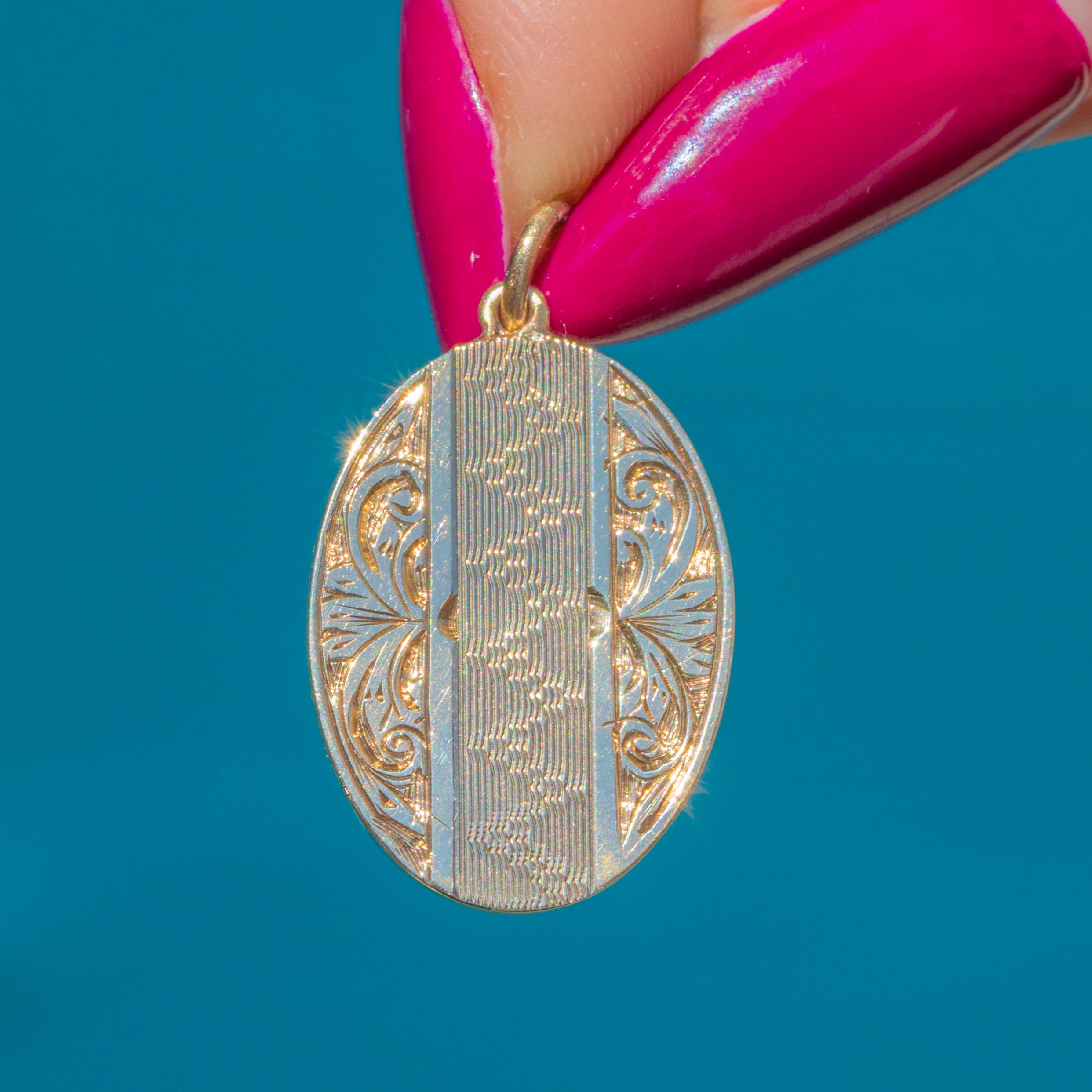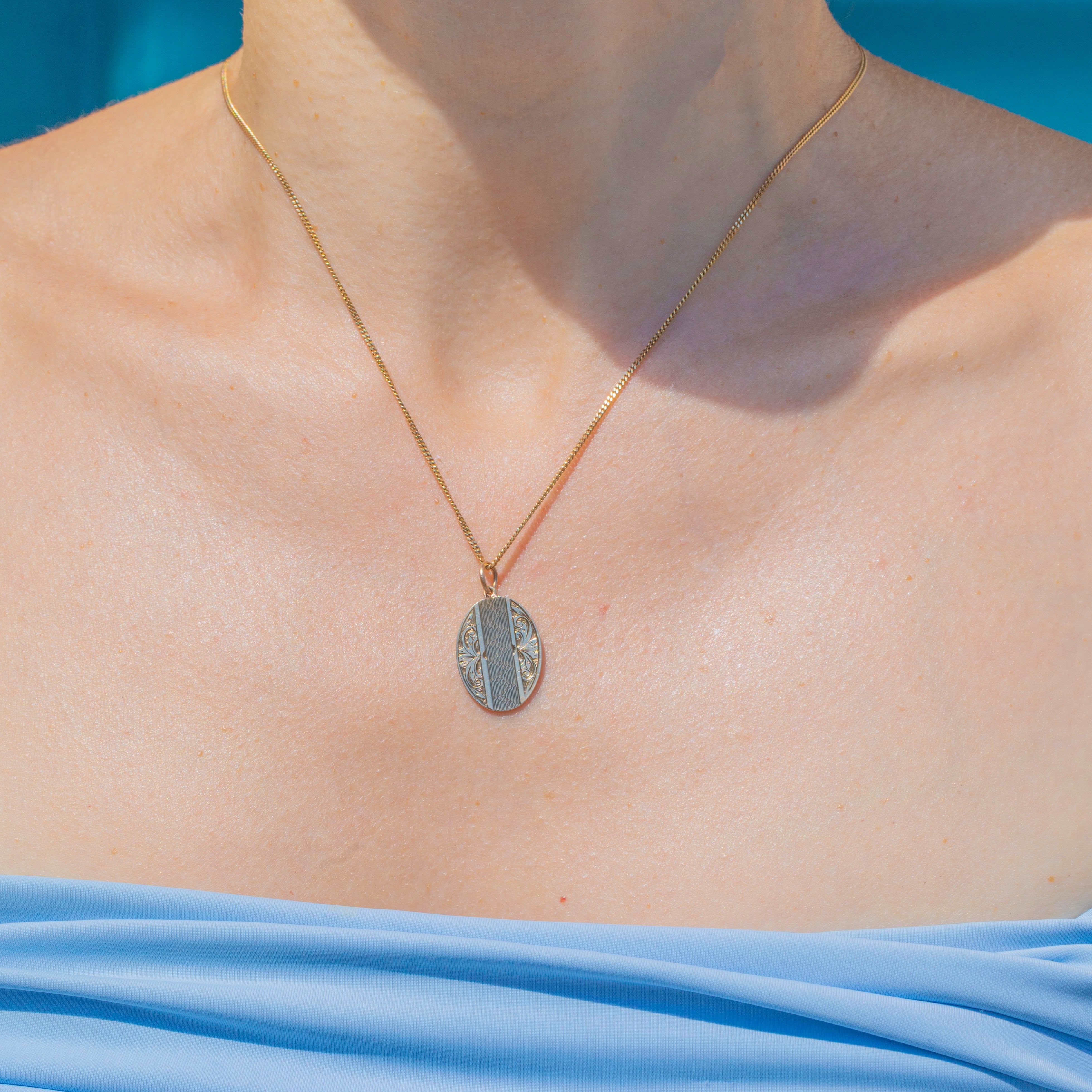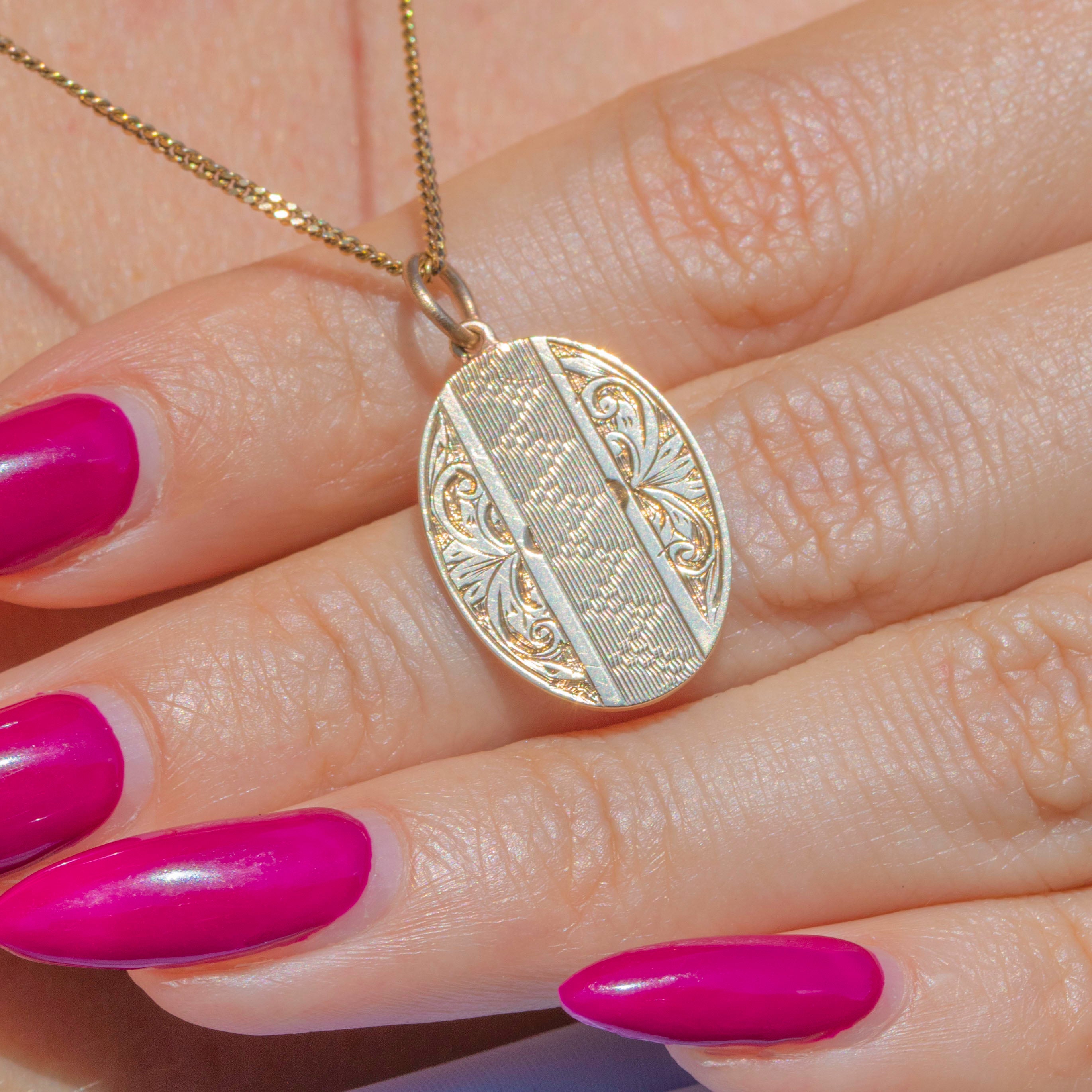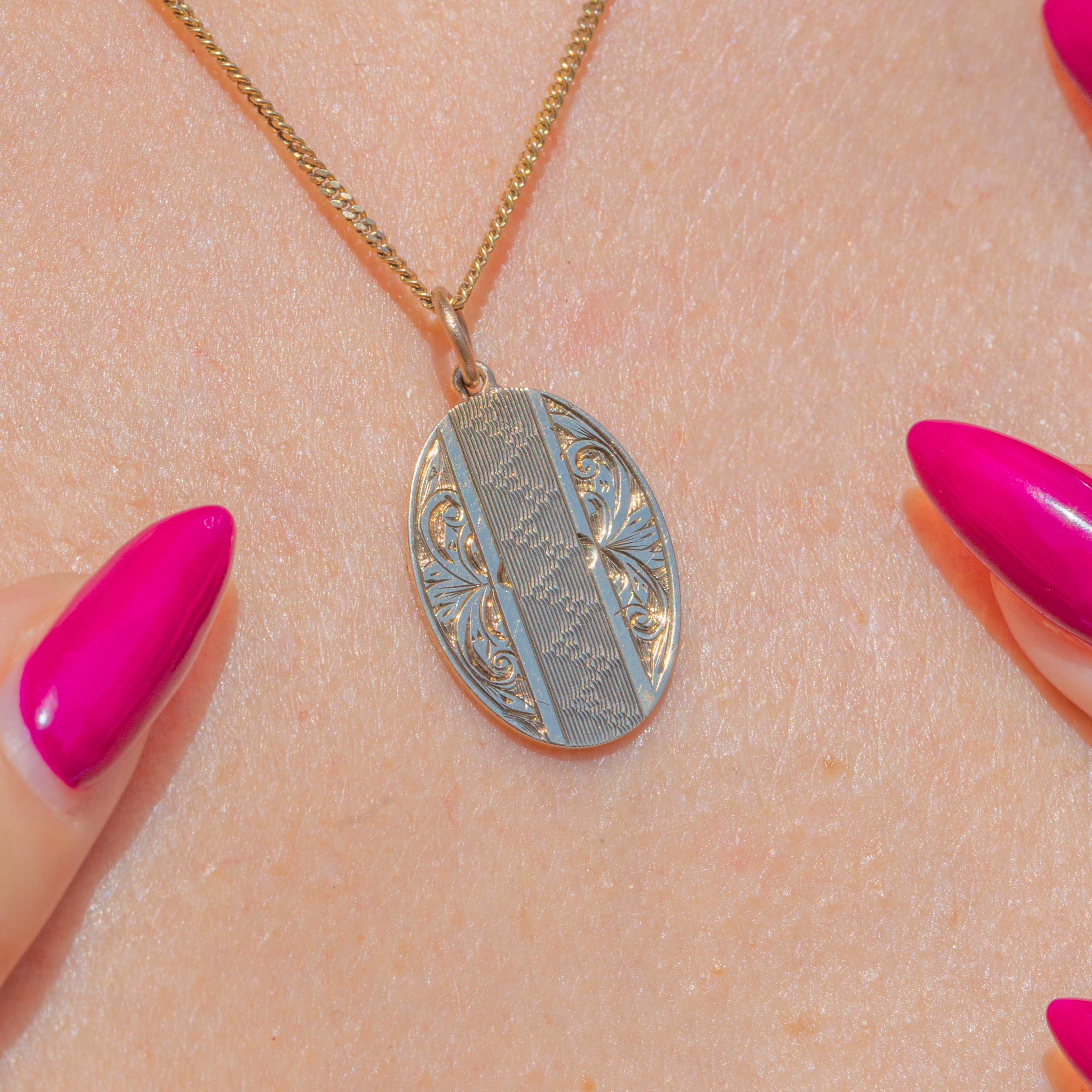 Art Deco 9ct Gold Oval Engraved Pendant