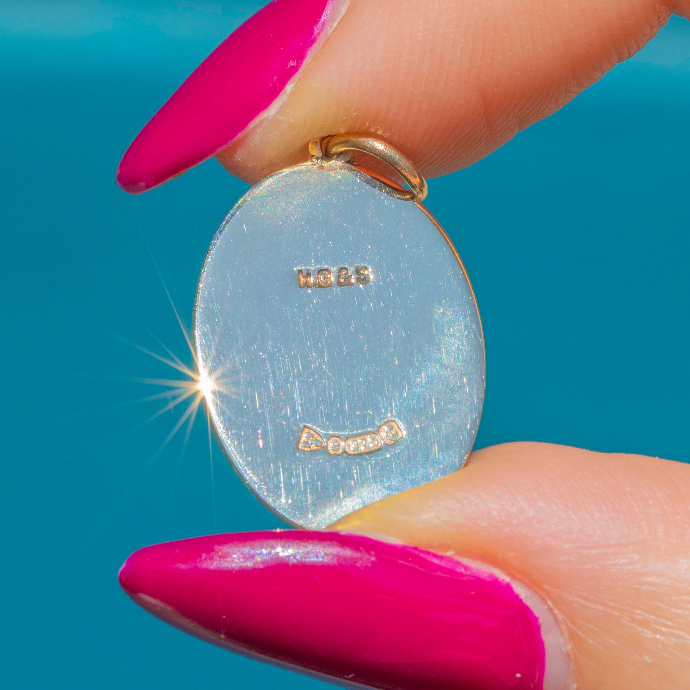 The pendant comes with a full set of English hallmarks, including the rare Chester Assay, dating to 1928, and is perfect for adding a sumptuous, solid slab of Gold to your attire!