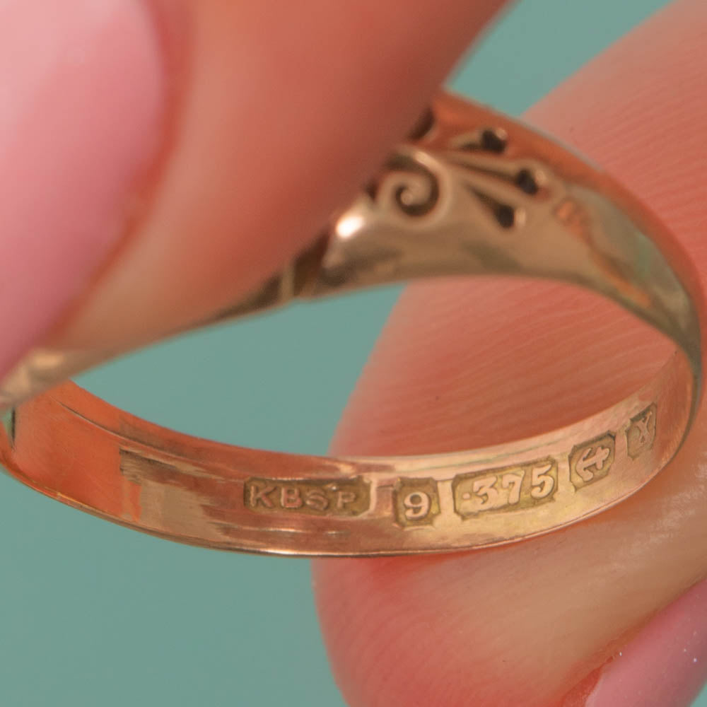 HALLMARKS: KBSP Maker's mark, 9, .375, Birmingham Anchor, Date letter X for the year 1922.