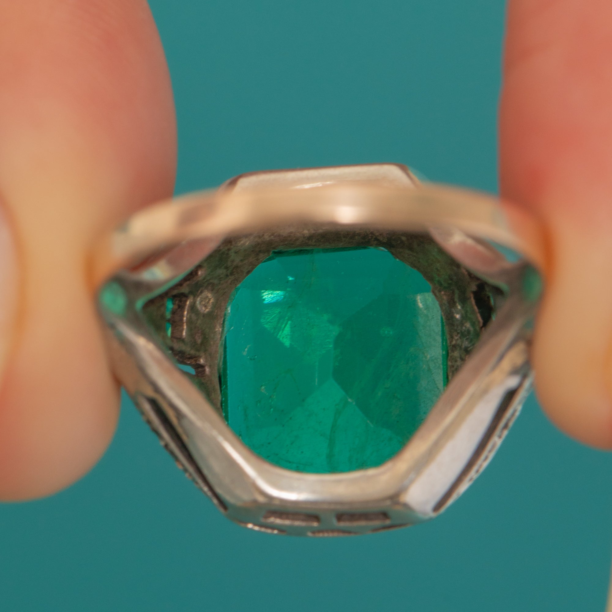 Art Deco 9ct Gold & Silver Green Paste Cocktail Ring
