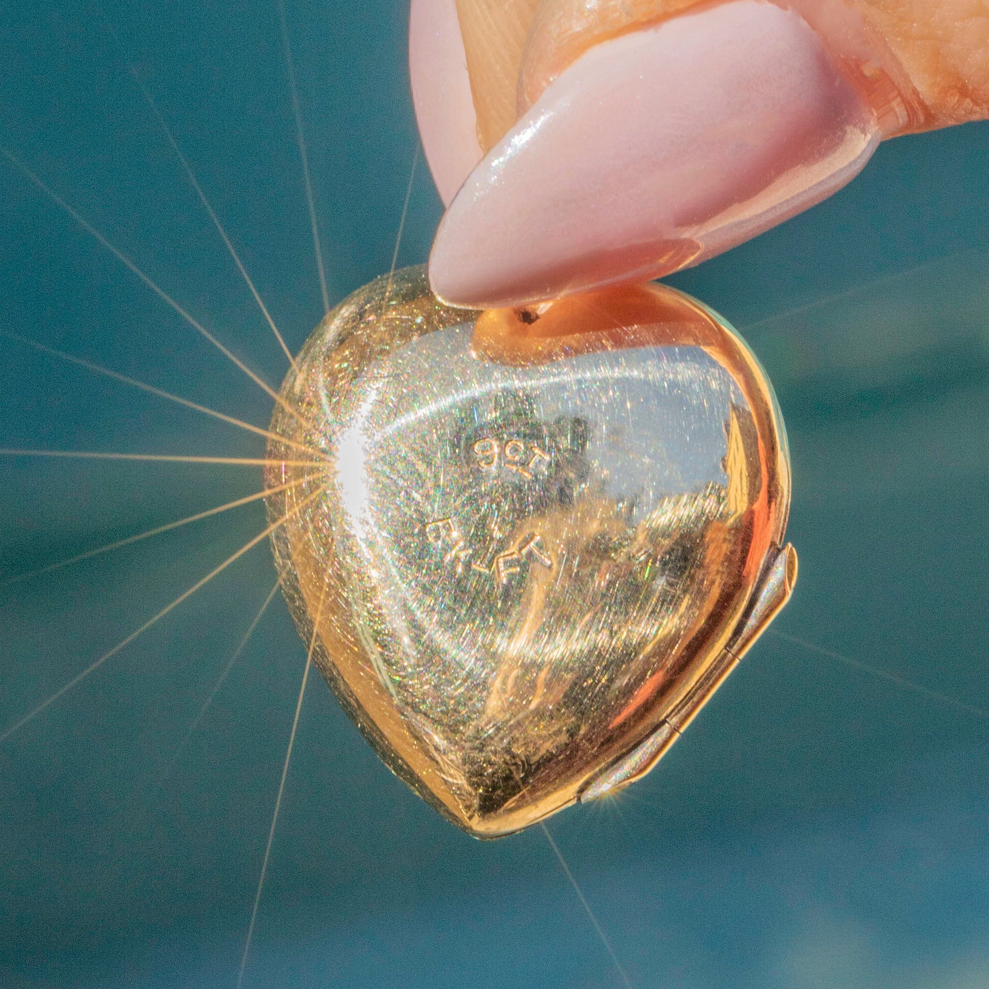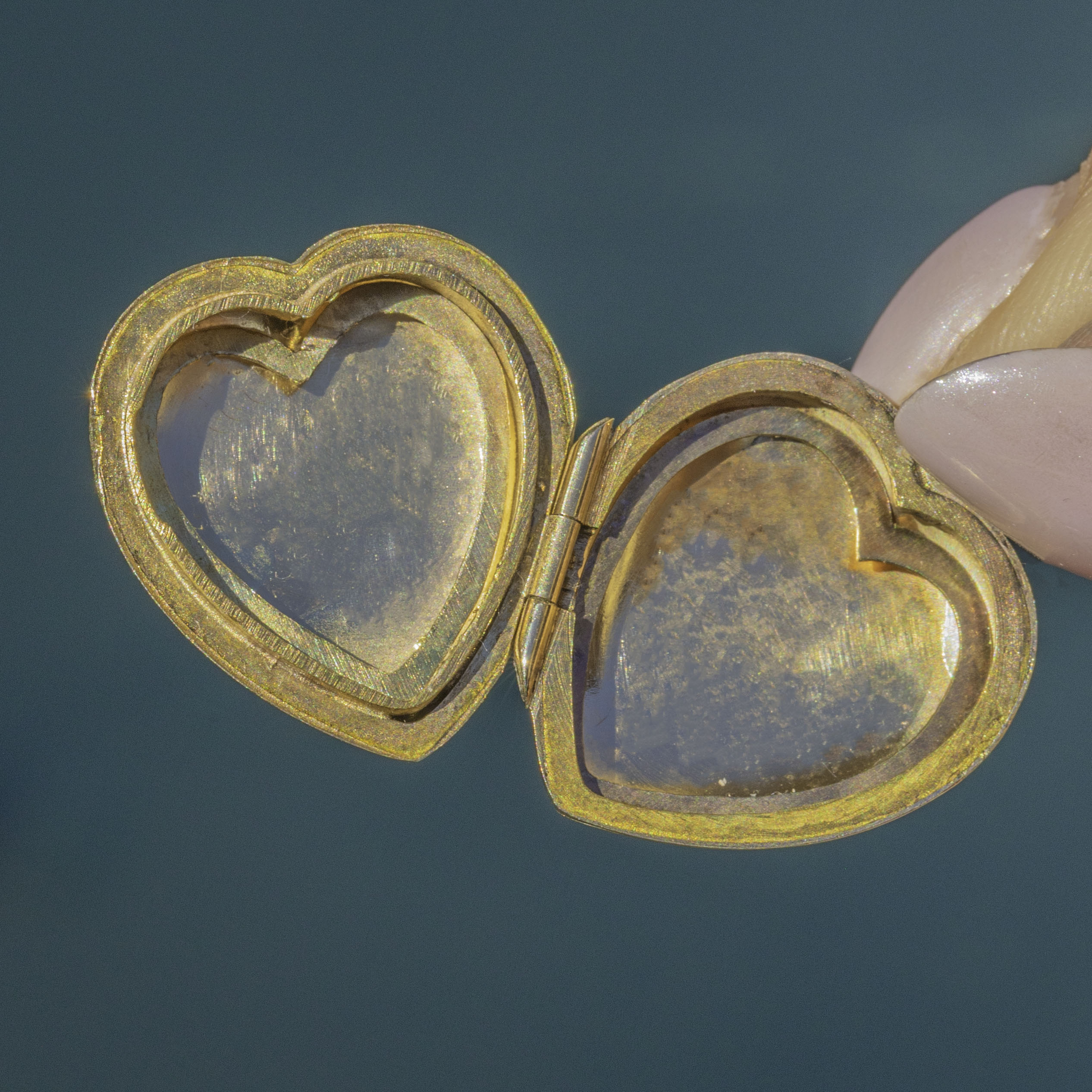 This antique heart locket opens to reveal two spaces for cherished photos to be placed inside, making it both a stylish and sentimental piece.