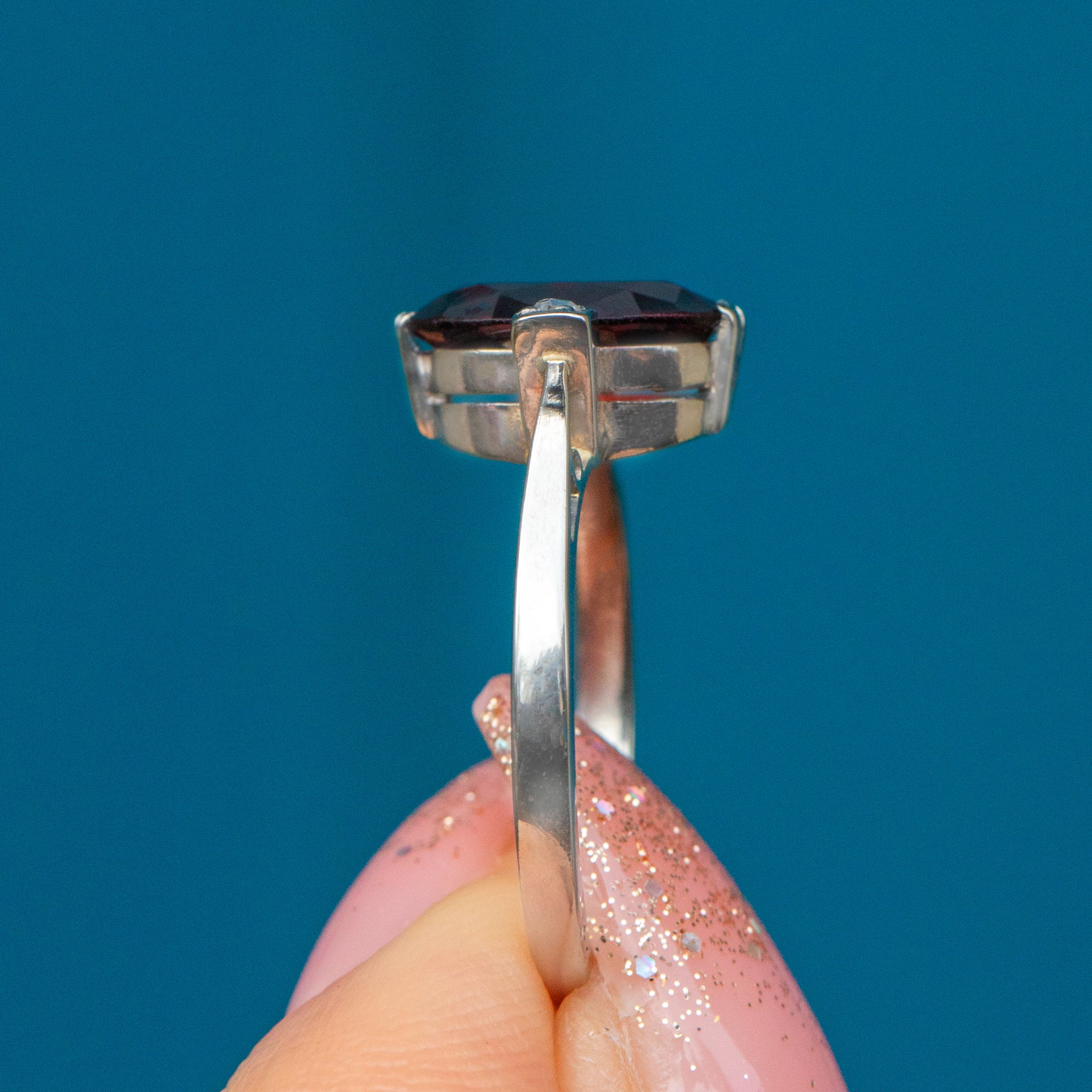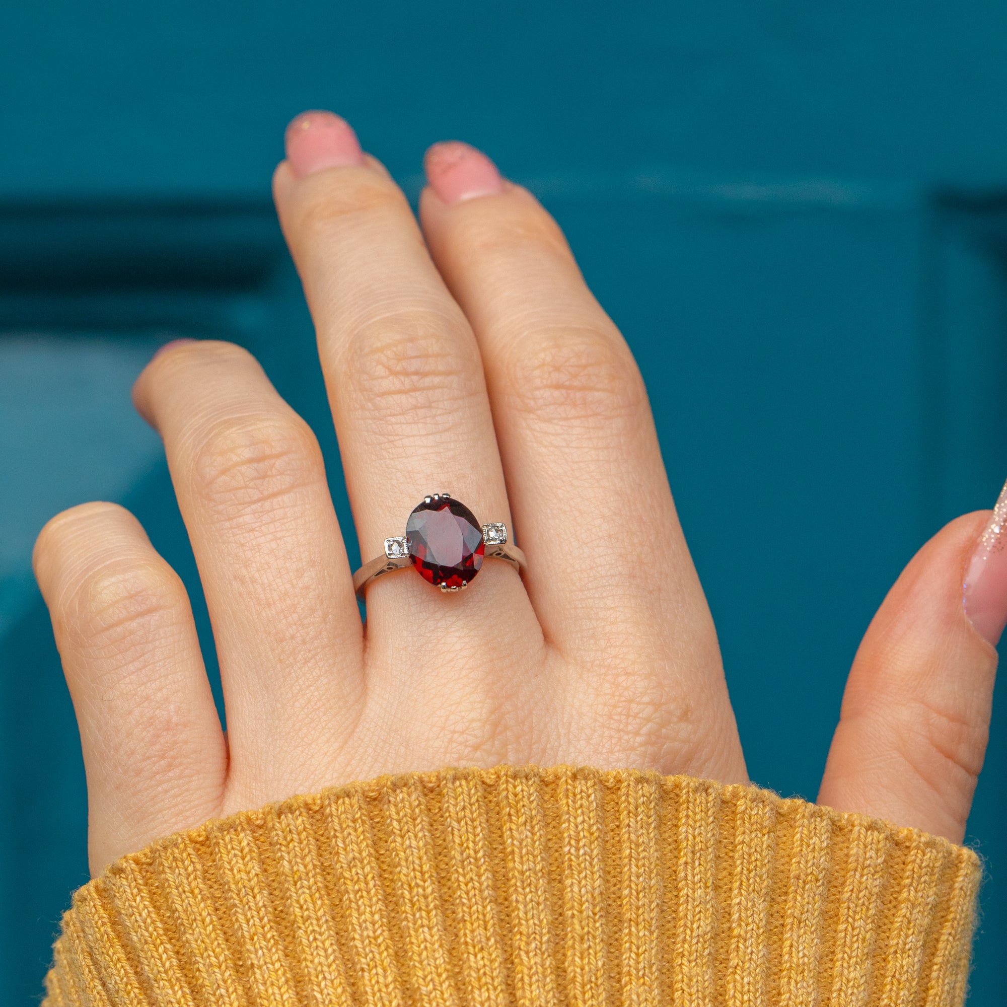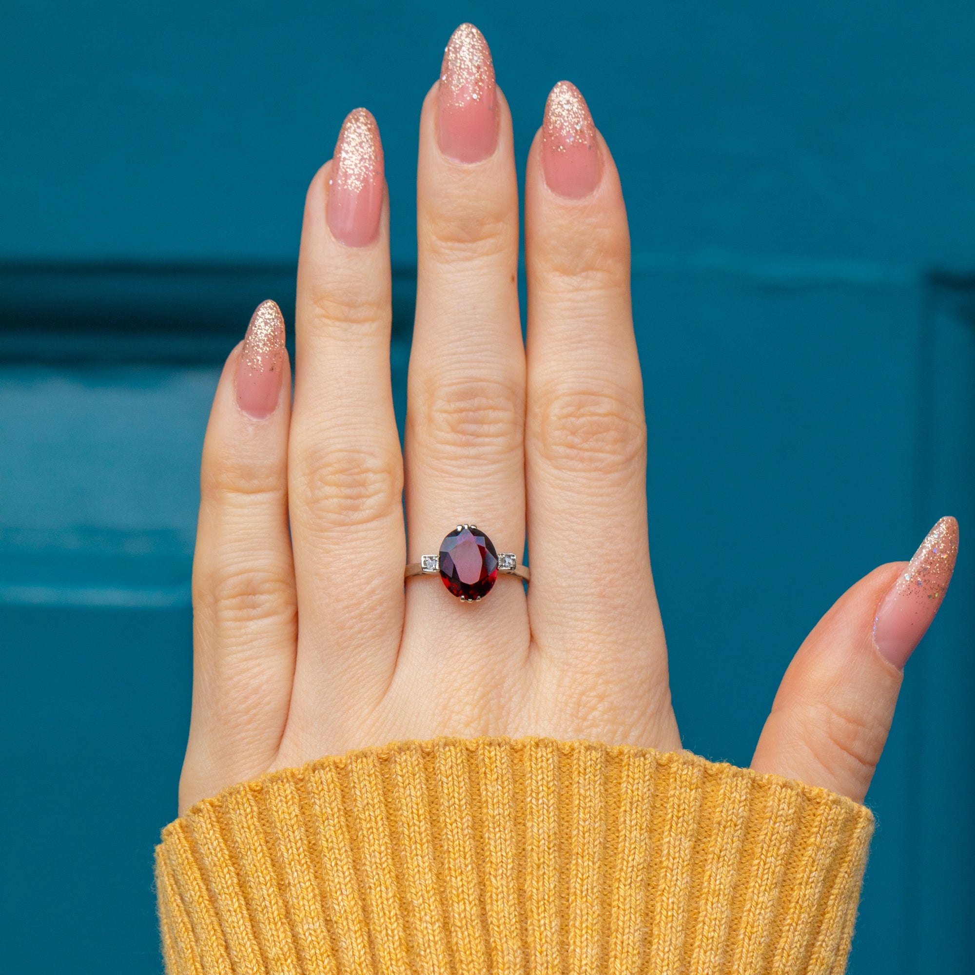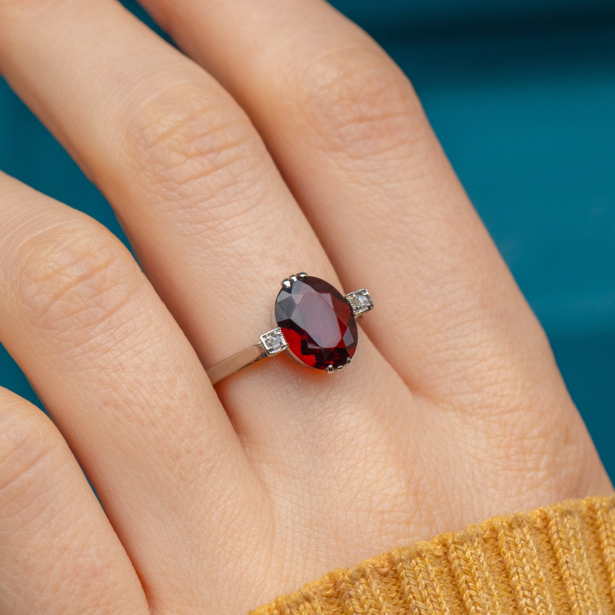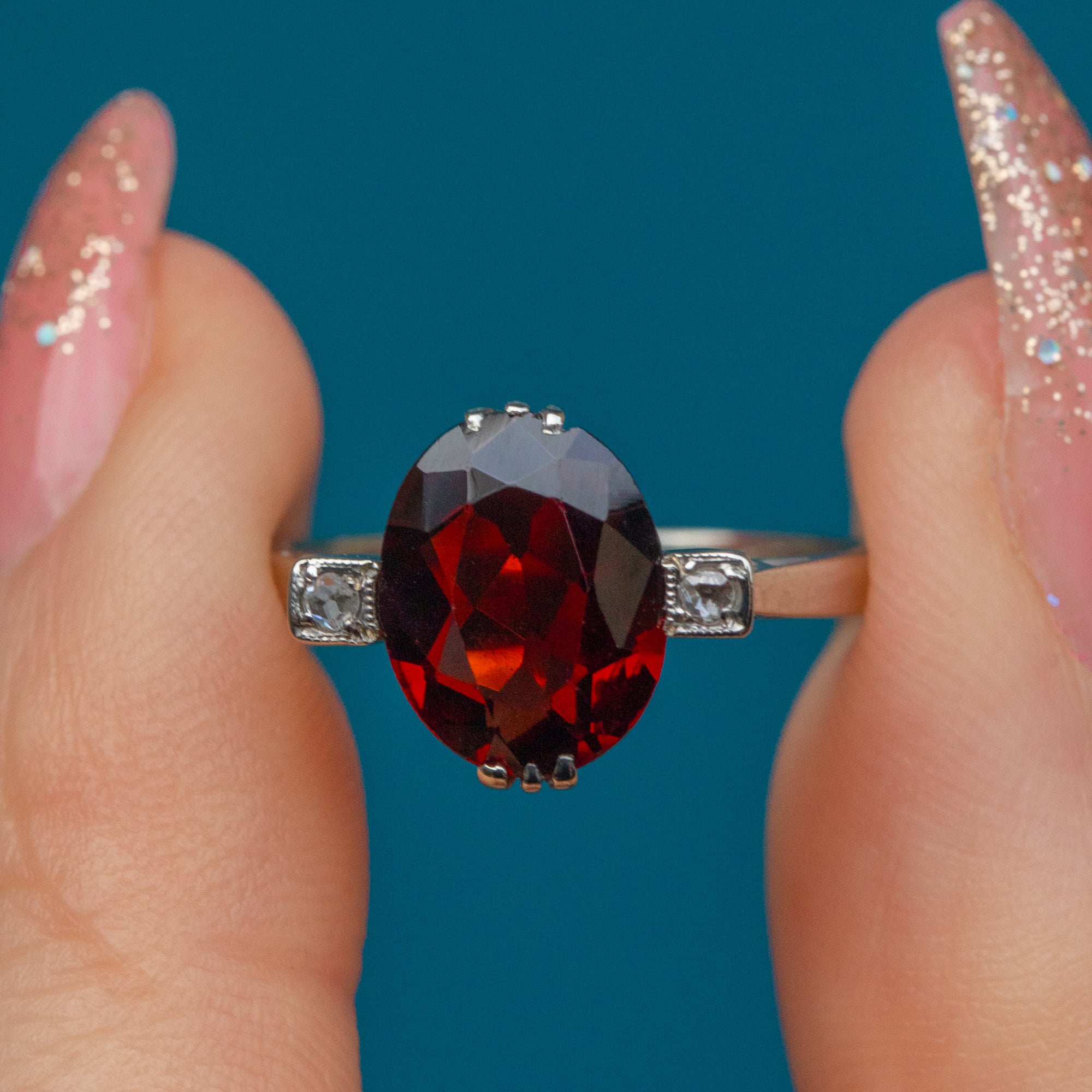 Ready for a statement? This Art Deco 9ct White Gold Garnet & Diamond Ring is absolutely sensational. Inlaid with a whopping berry red natural Garnet, this is a superb ring to add to your jewellery collection.