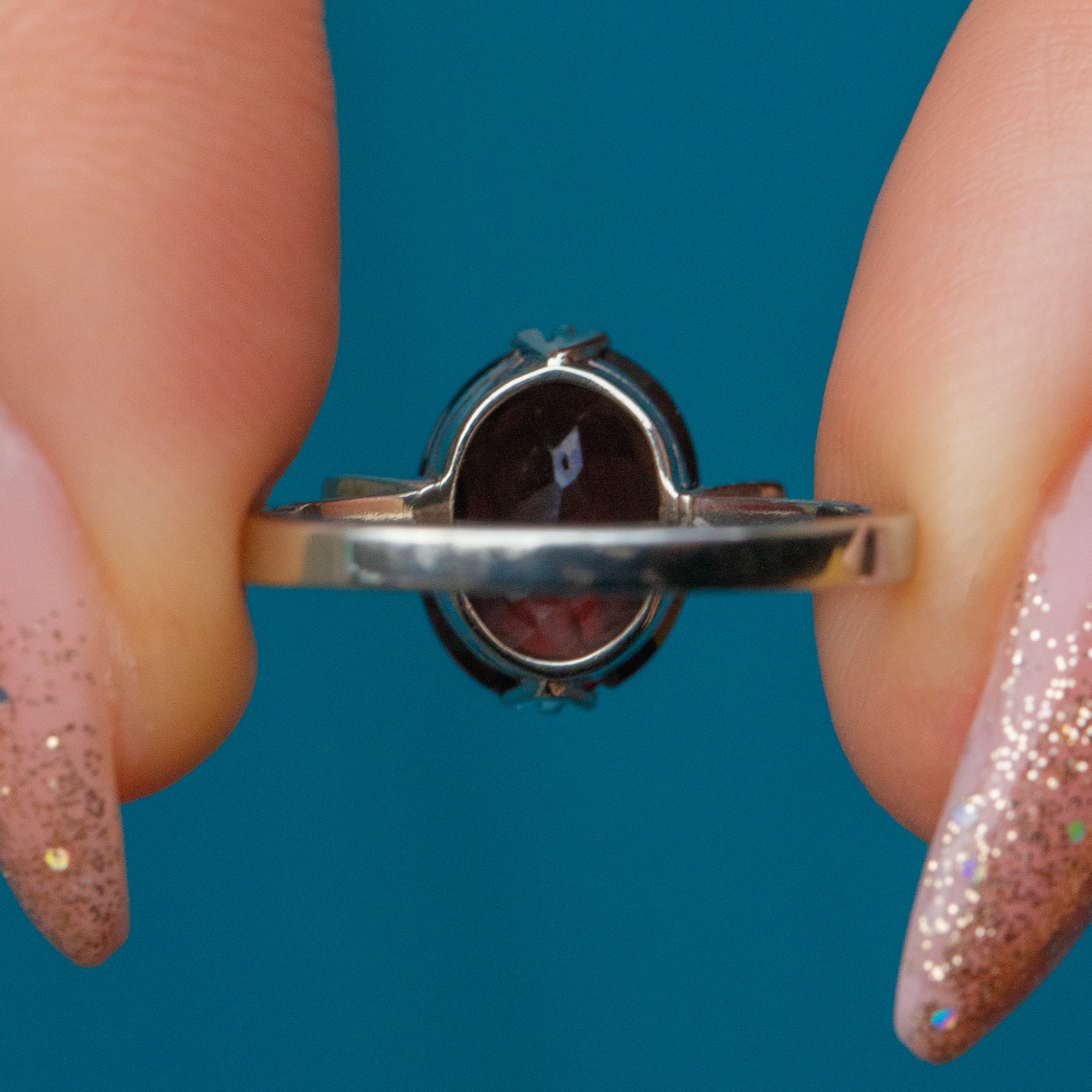 MEASUREMENTS: Garnet is 10.5mm long x 7.5mm wide (approx. 2.20ct).