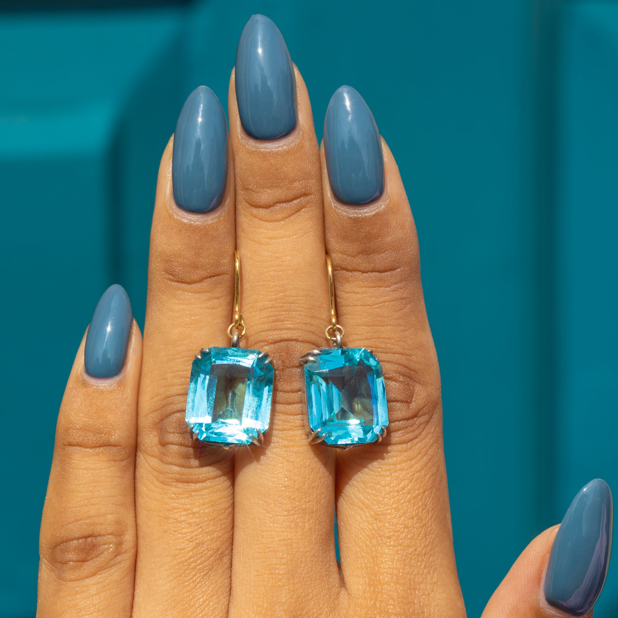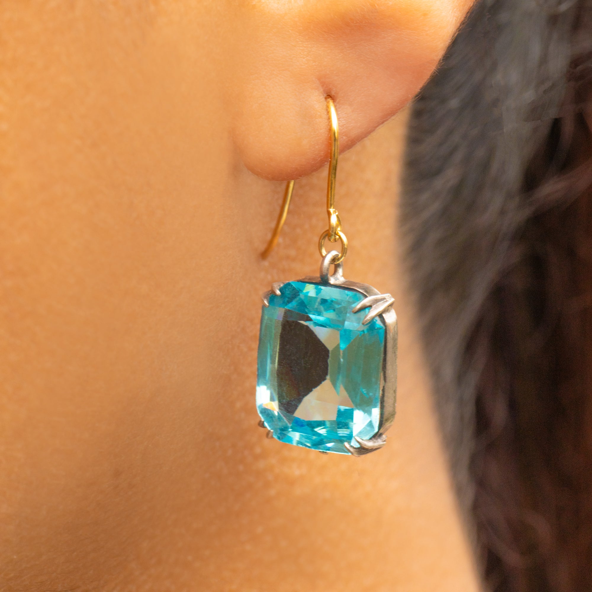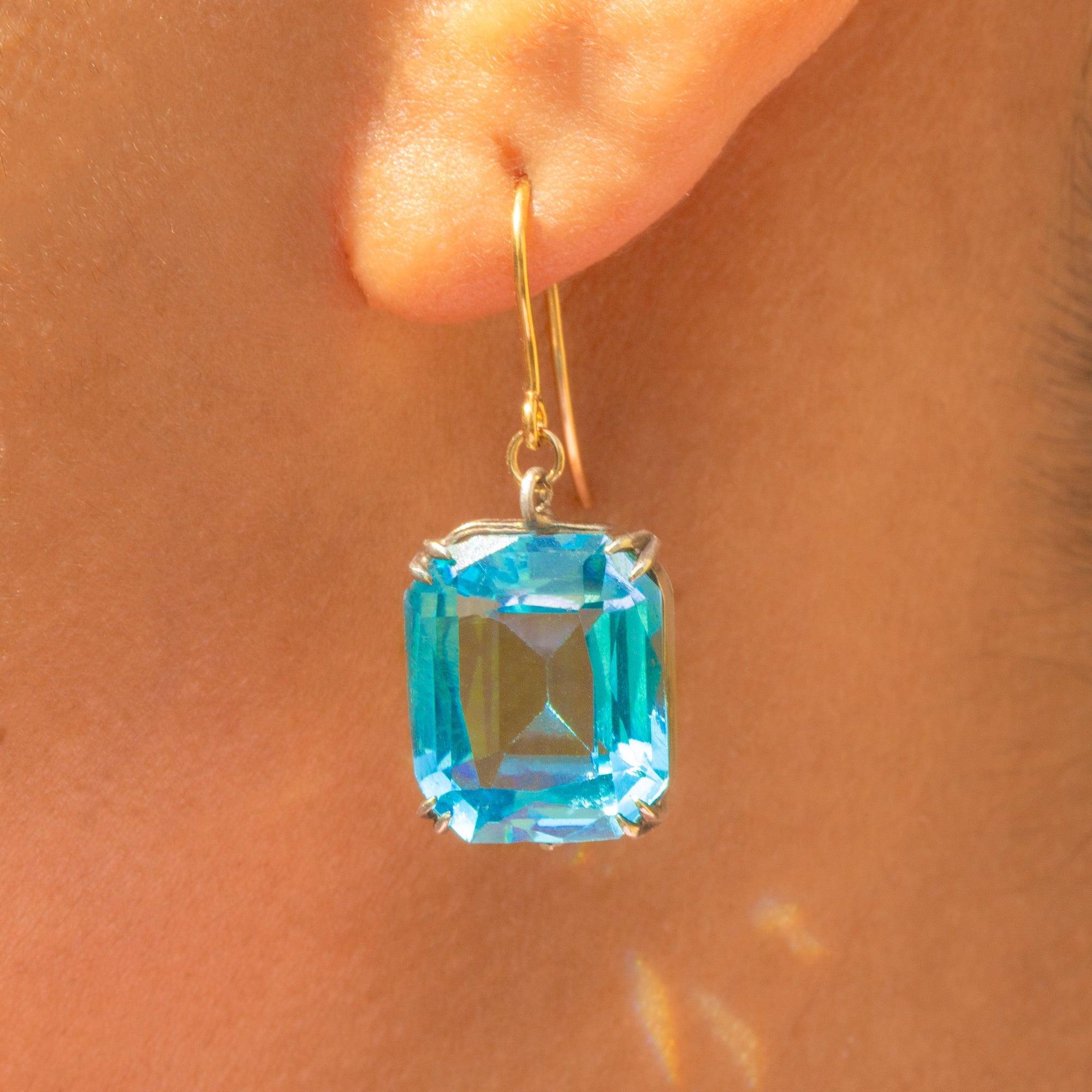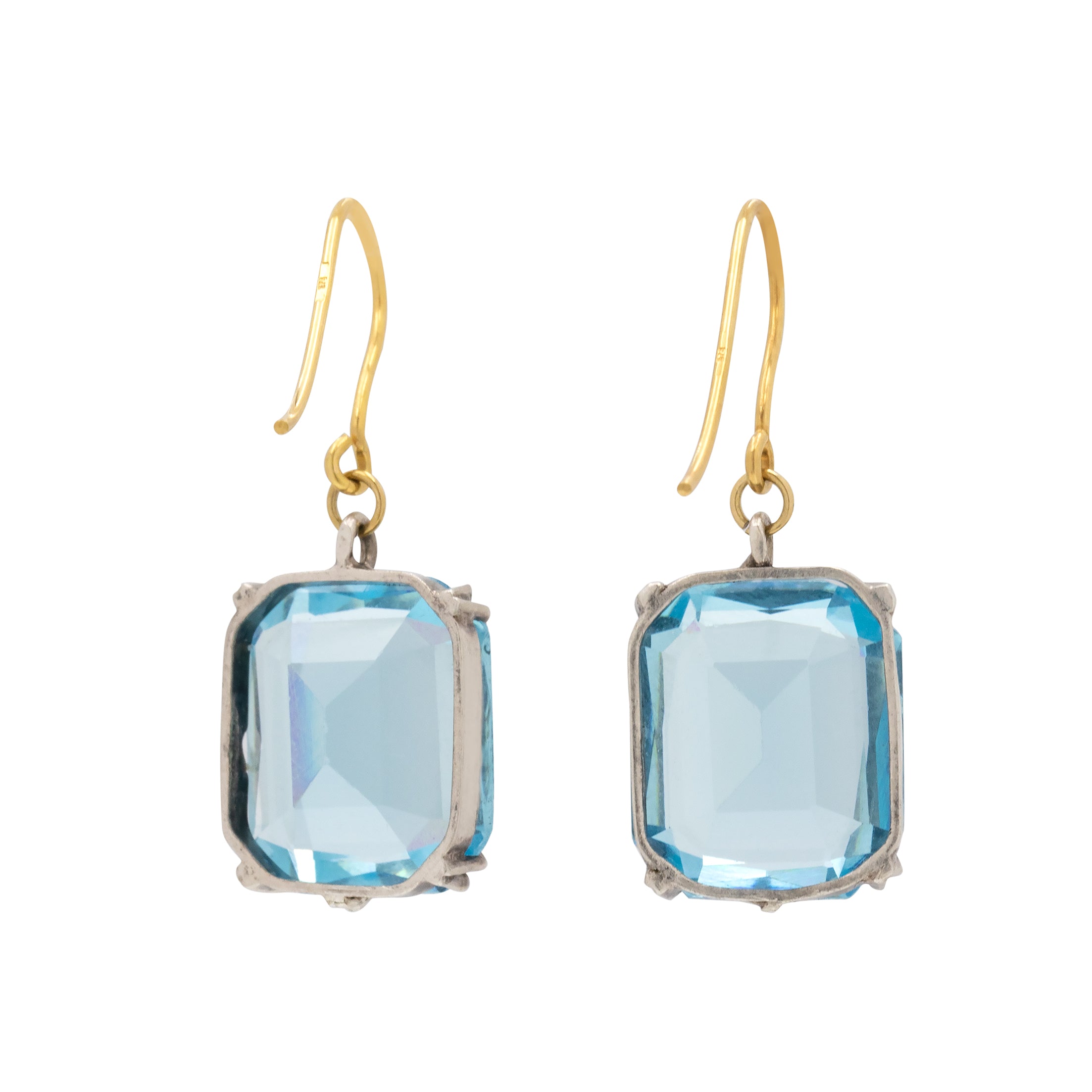 Lose yourself in the rich cerulean blue hue of these Art Deco blue Paste earrings! This sumptuous pair boasts crisp Paste set into Sterling Silver and are complete with 9ct Gold hooks for a luxurious finish.