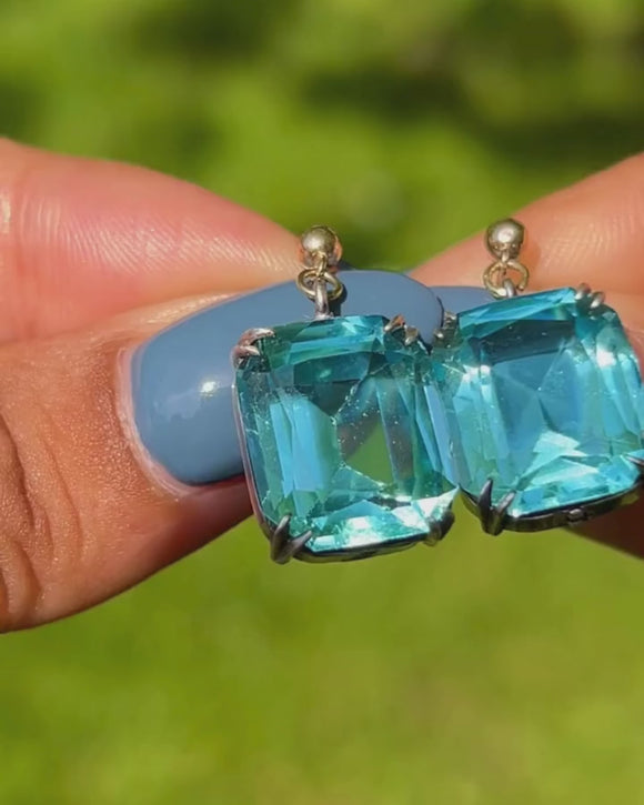 These antique earrings give the illusion of authentic blue Topaz gemstones, little will anyone know they are a high-quality Paste gem! Complete with 9ct Gold posts that slot into the ear beautifully, these Art Deco earrings will add a welcome pop of colour to your lobes!