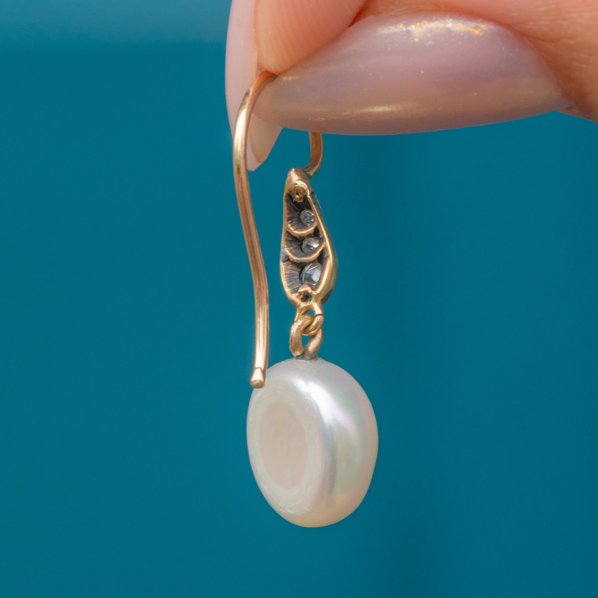 Art Deco Pearl Diamond Earrings 9ct Gold French Hooks