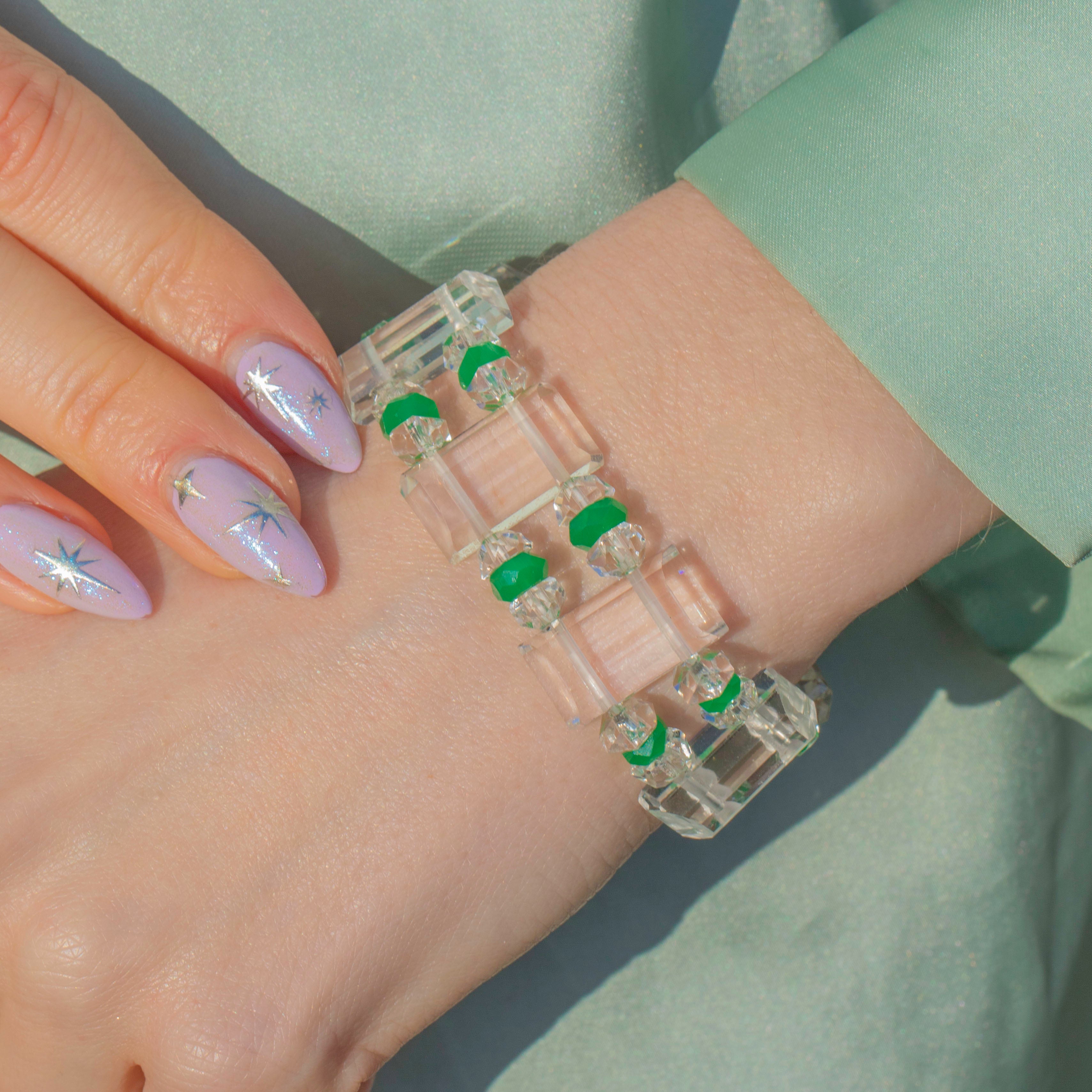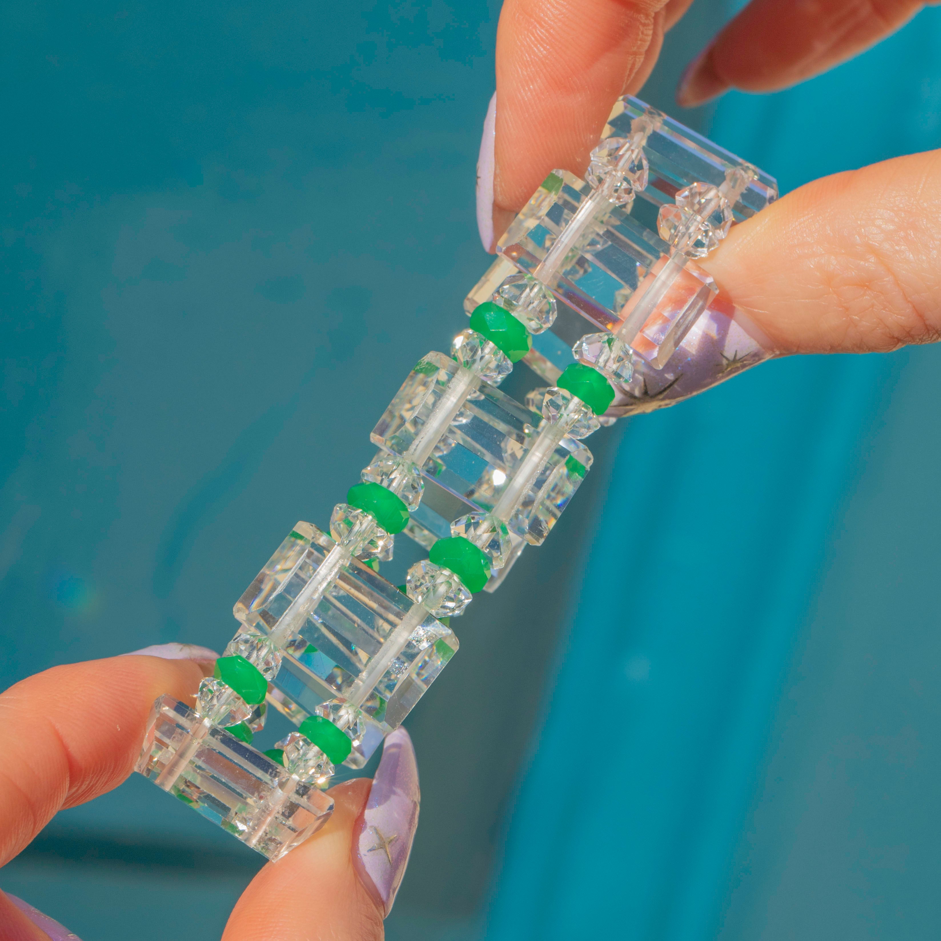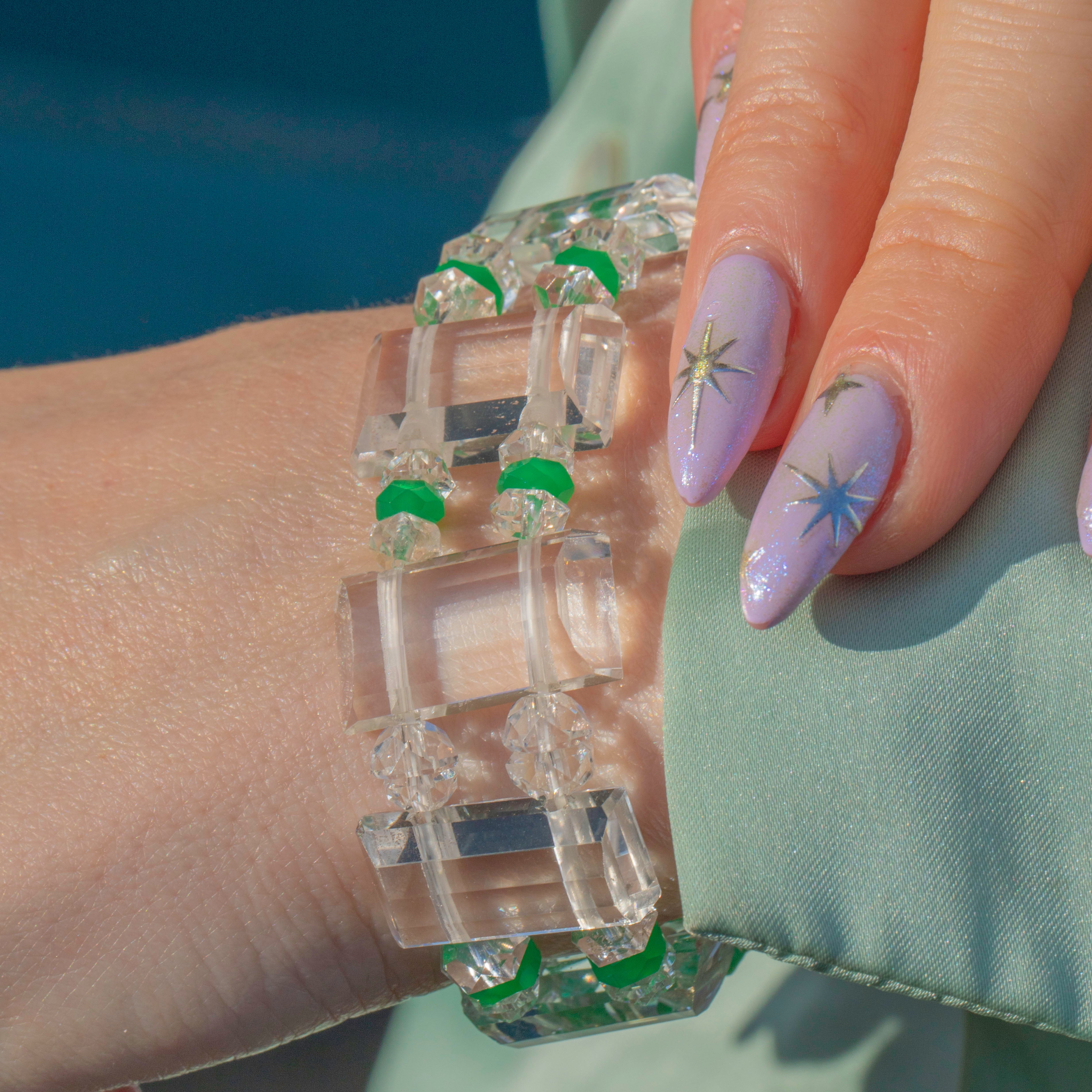 This Art Deco Rock Crystal and Chrysoprase bracelet is a glamorous piece!