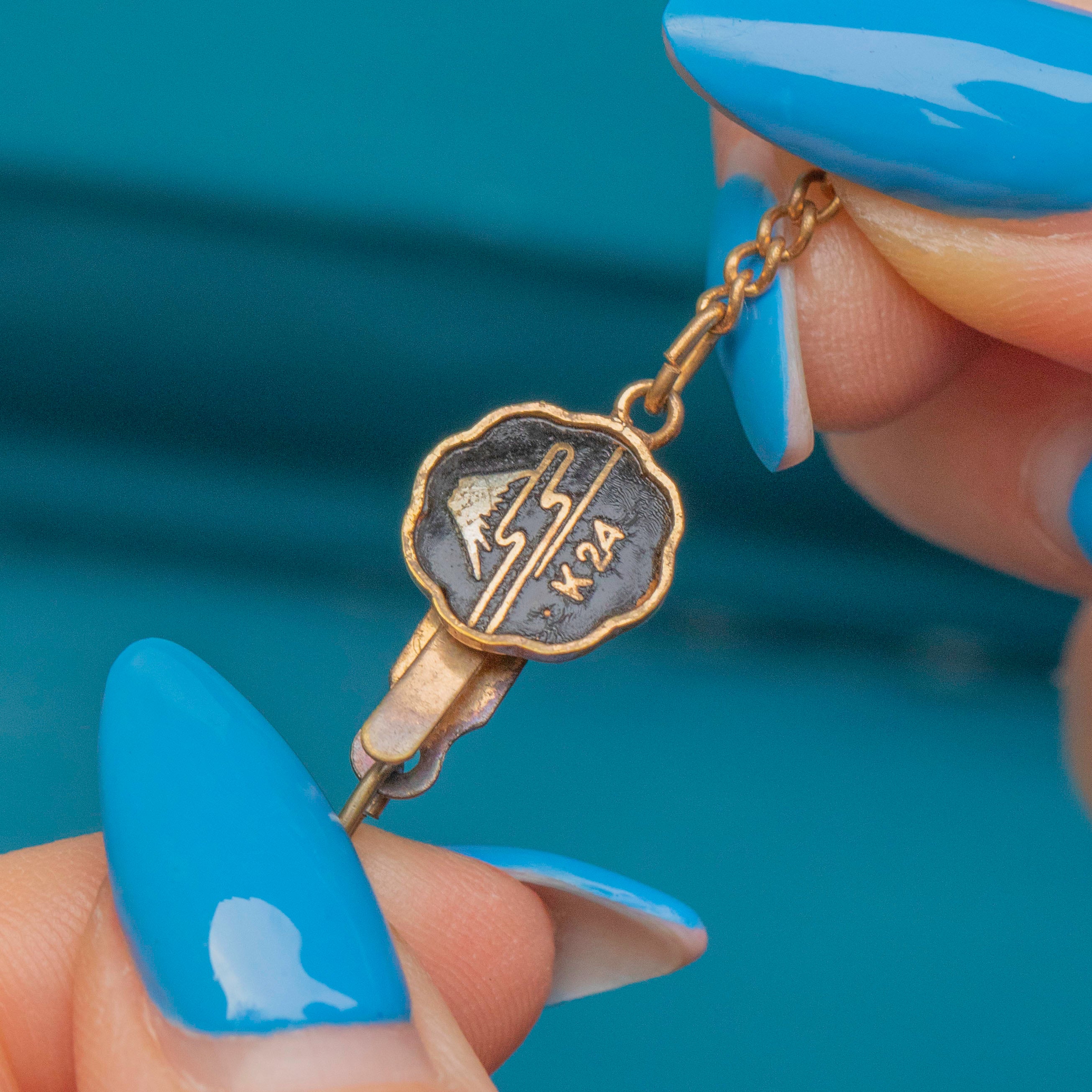 Wonderfully crafted, she embodies the timeless elegance of the Art Deco period and the intricate craftsmanship of Shakudo damascene artistry. The pendant features a delicate butterfly motif, meticulously inlaid with gold and silver accents against a dark backdrop.